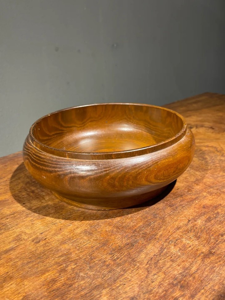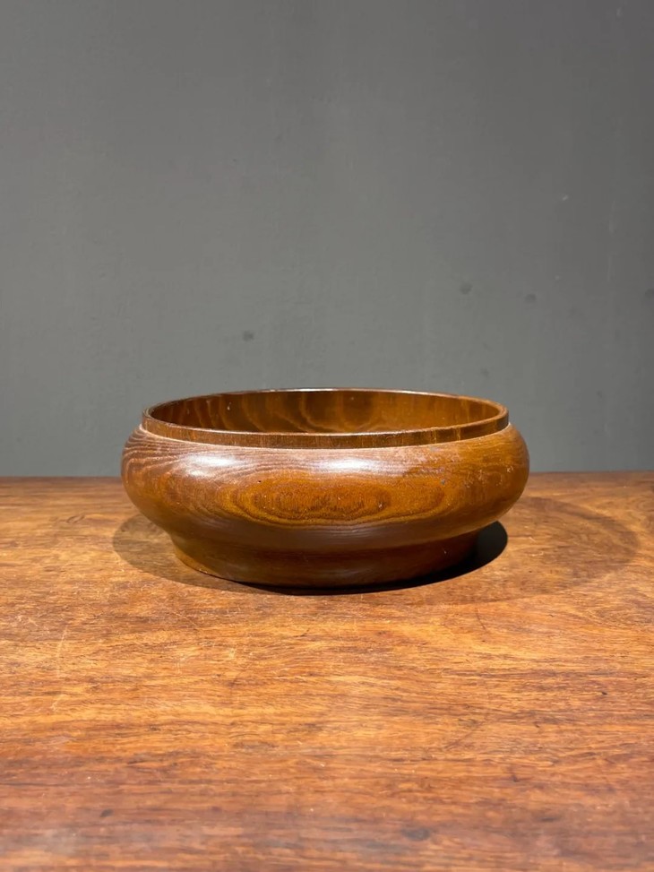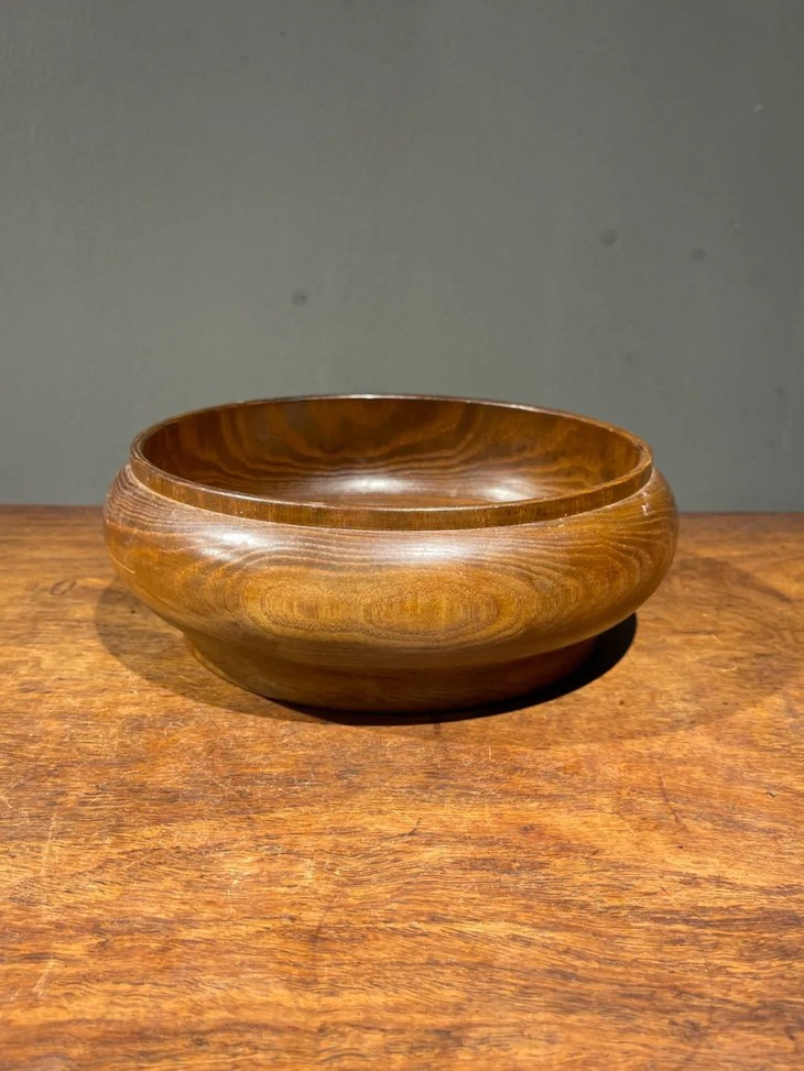 这是一只以整块榆木掏空雕琢而成的寺庙或是茶席盛水的薄胎净水钵,优雅扁圆佛钵造型,一木整挖器壁薄,保留原木纹理,整体形式典雅贵气,表面保留优美老榆木天然纹理与温润的硬木皮壳,雕琢细腻,制作严谨,简约大气,是难得一见的高雅佛前供品钵或是茶席净水钵。