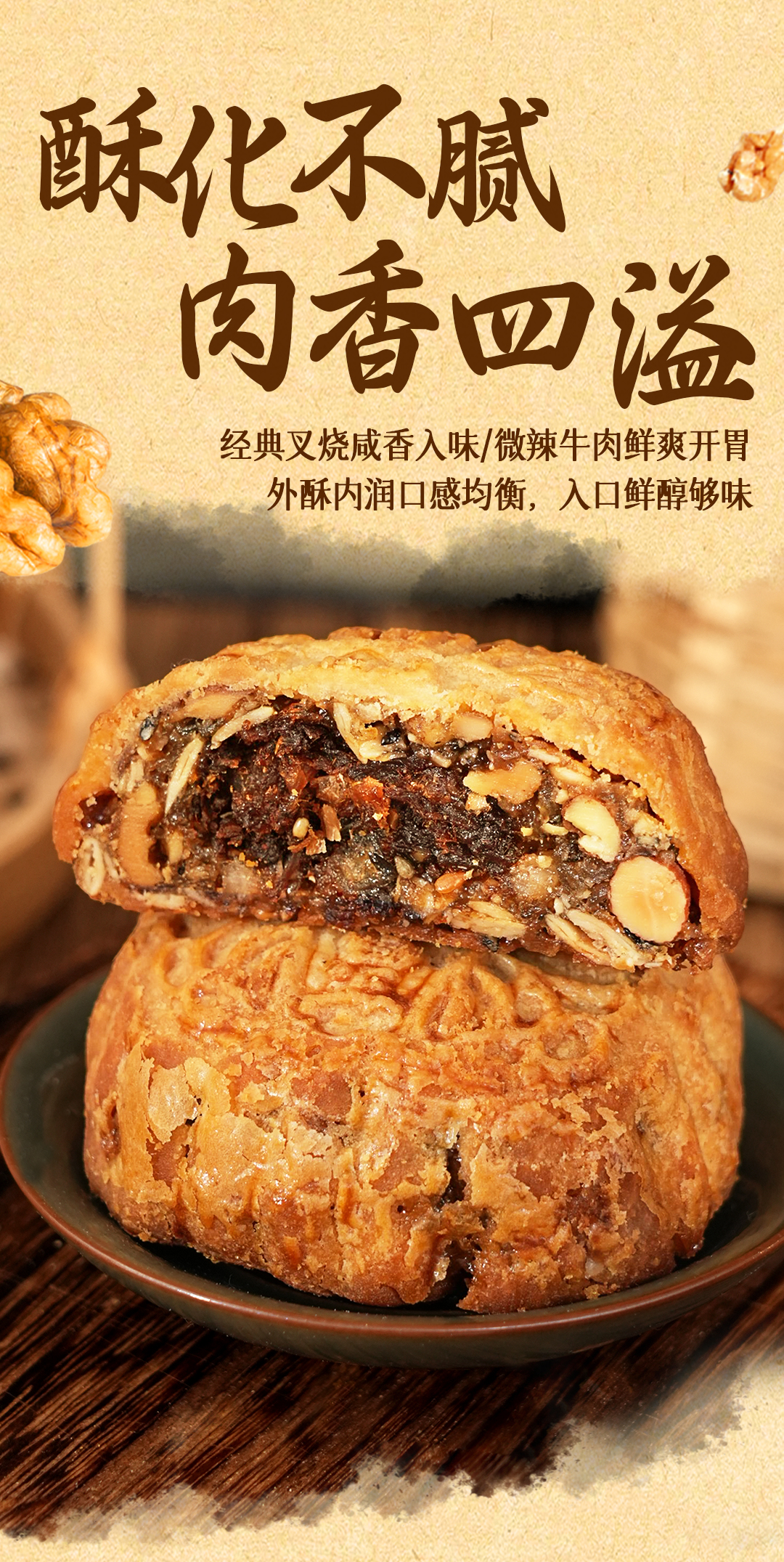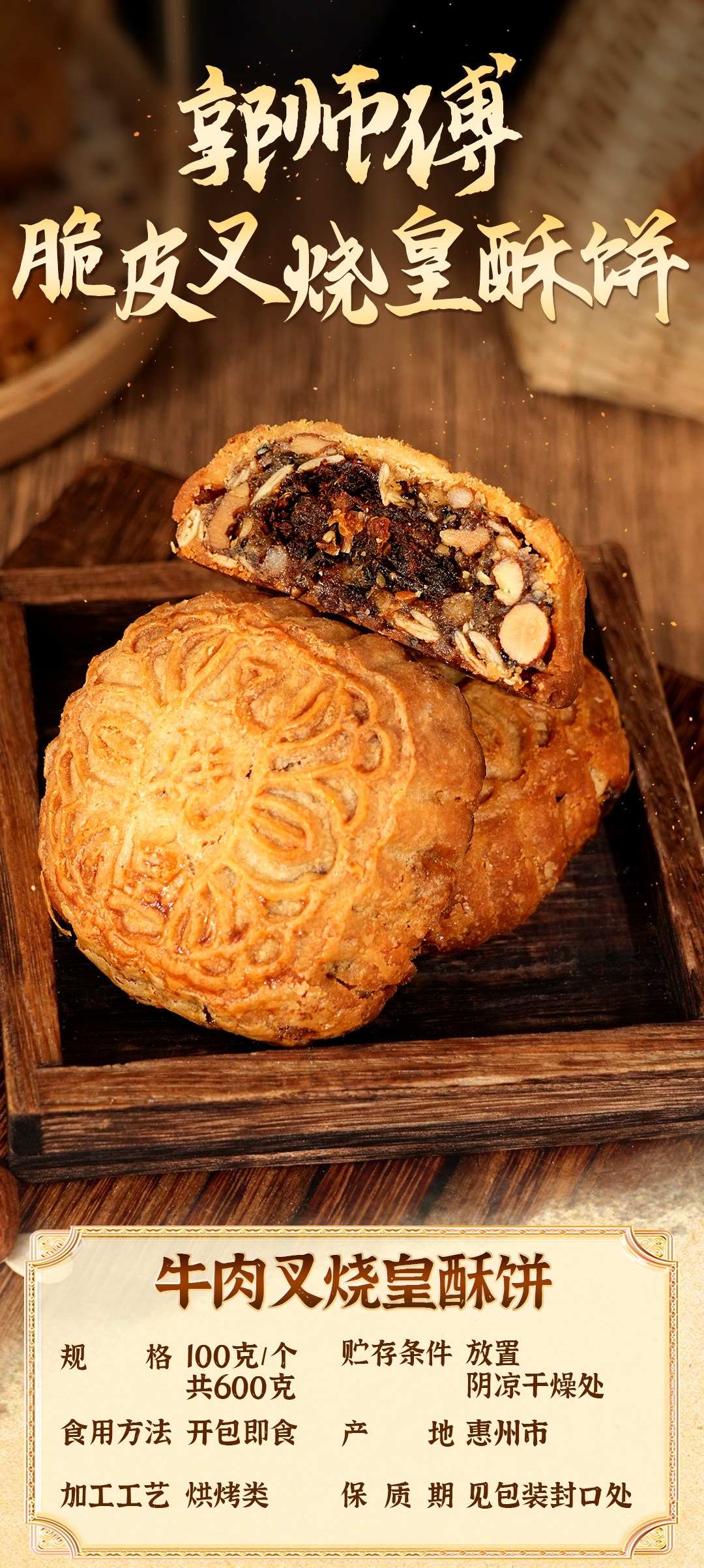 郭师傅麻辣脆皮牛肉叉烧皇酥饼6个装600g