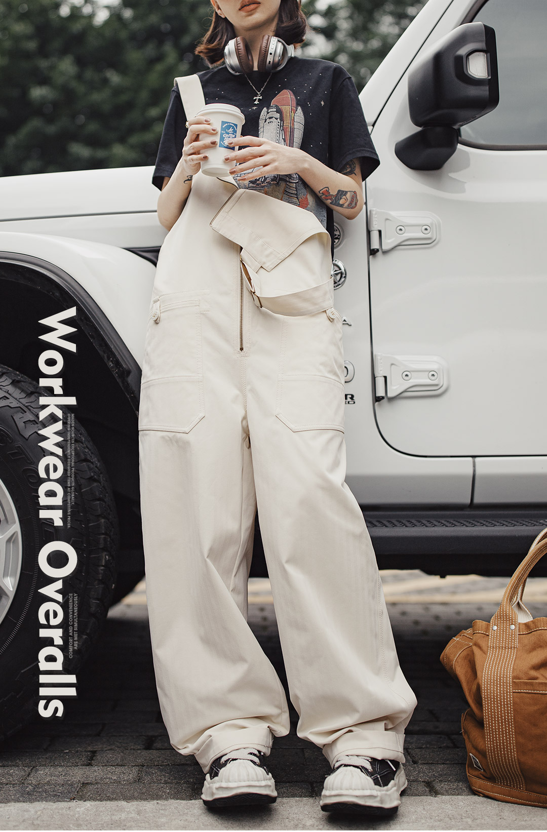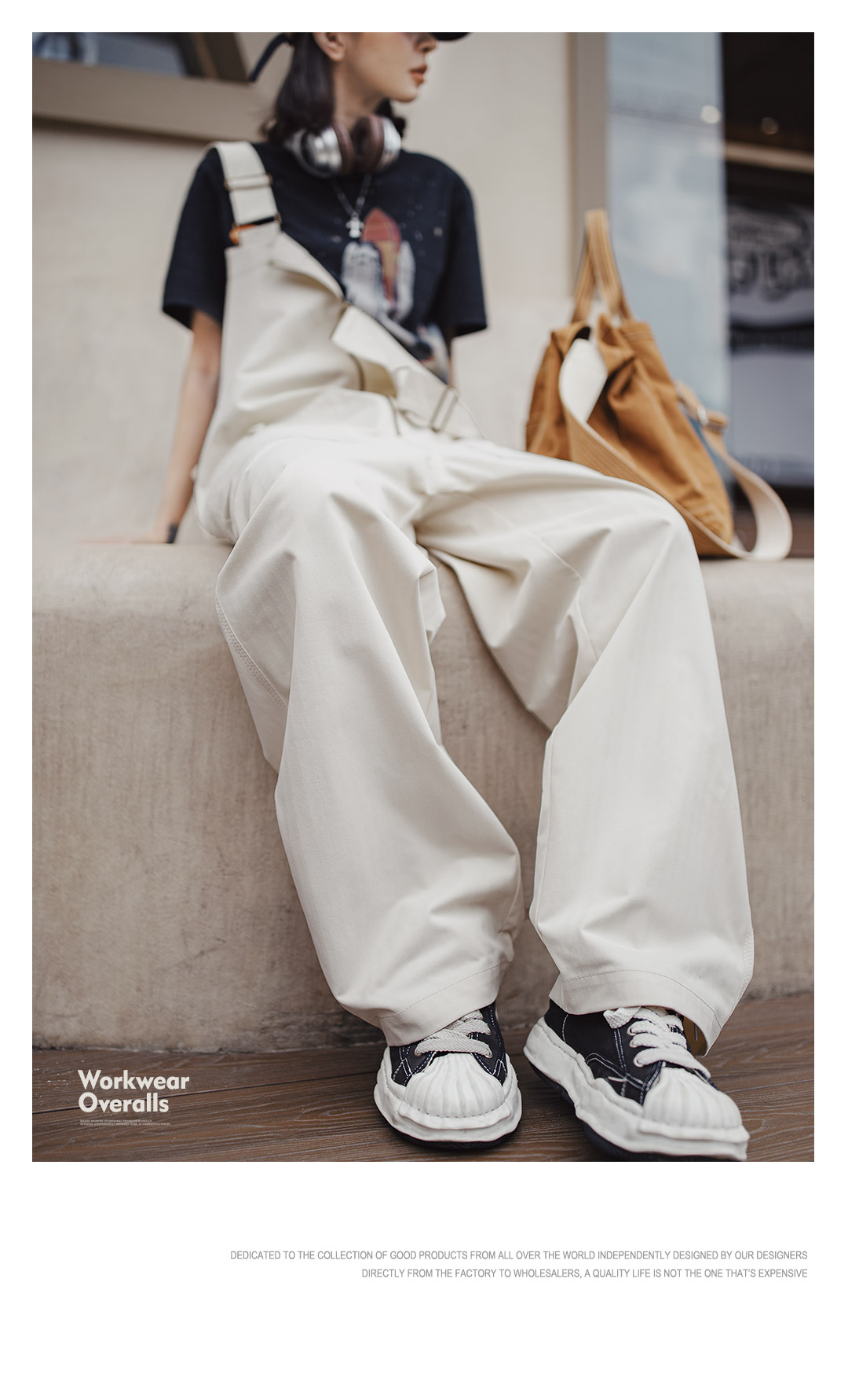 马登2025新款白色日杂宽松休闲时尚工装背带裤显瘦连体裤子女士秋