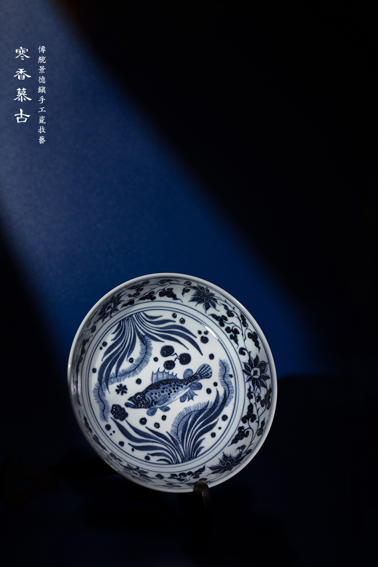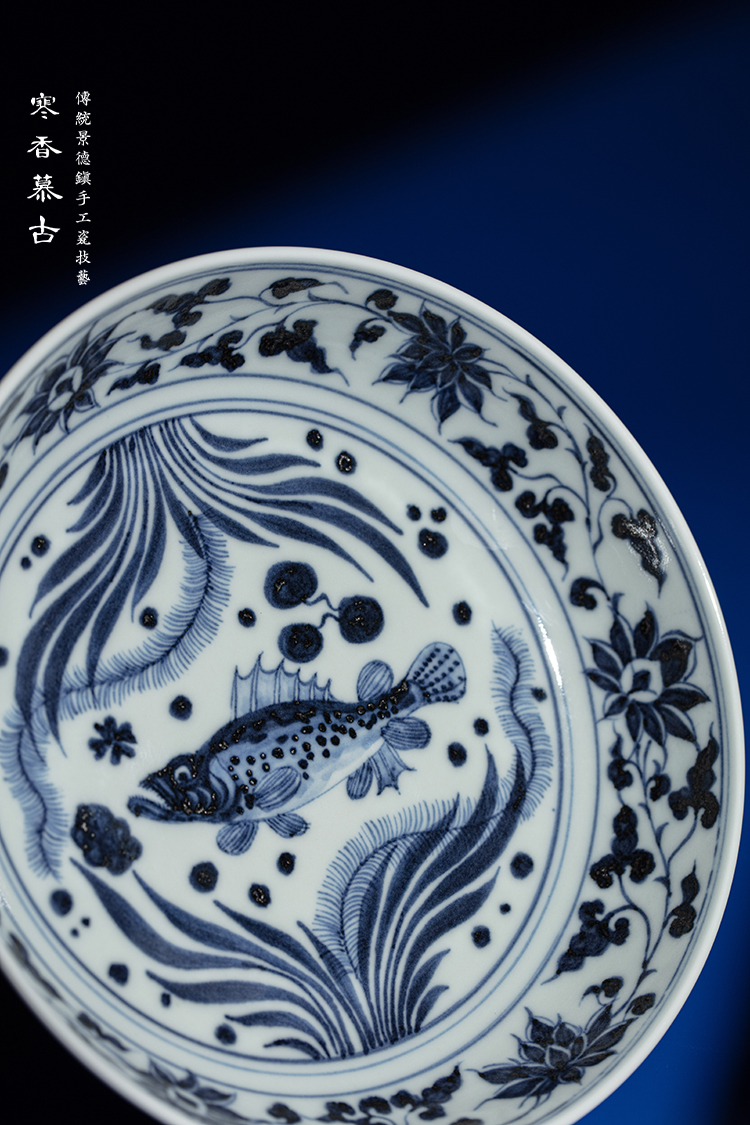 寒香慕古元青花缠枝鱼藻纹壶承