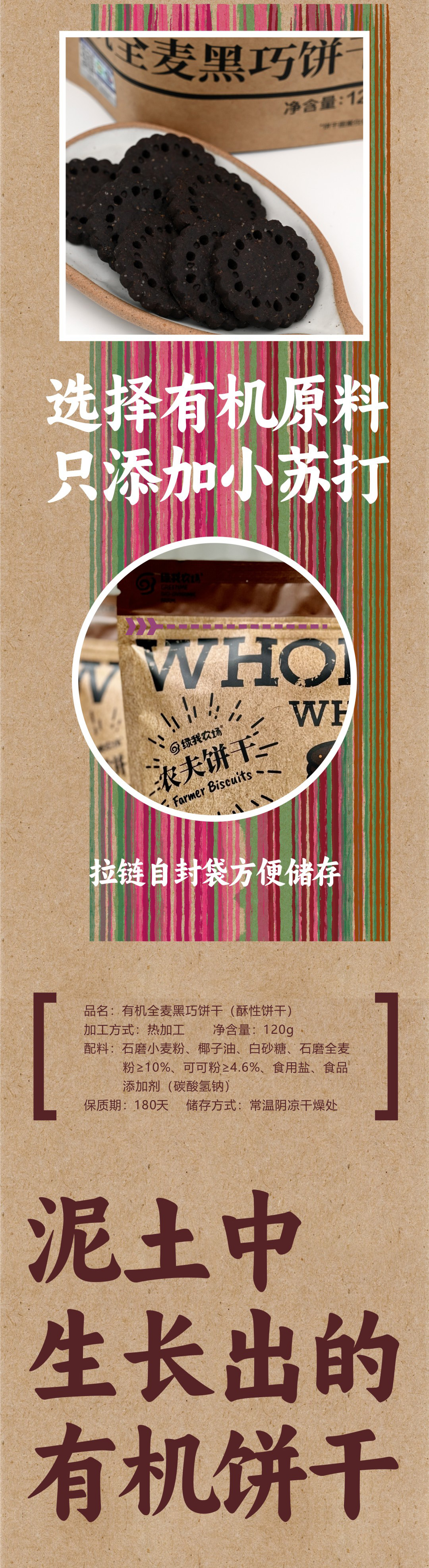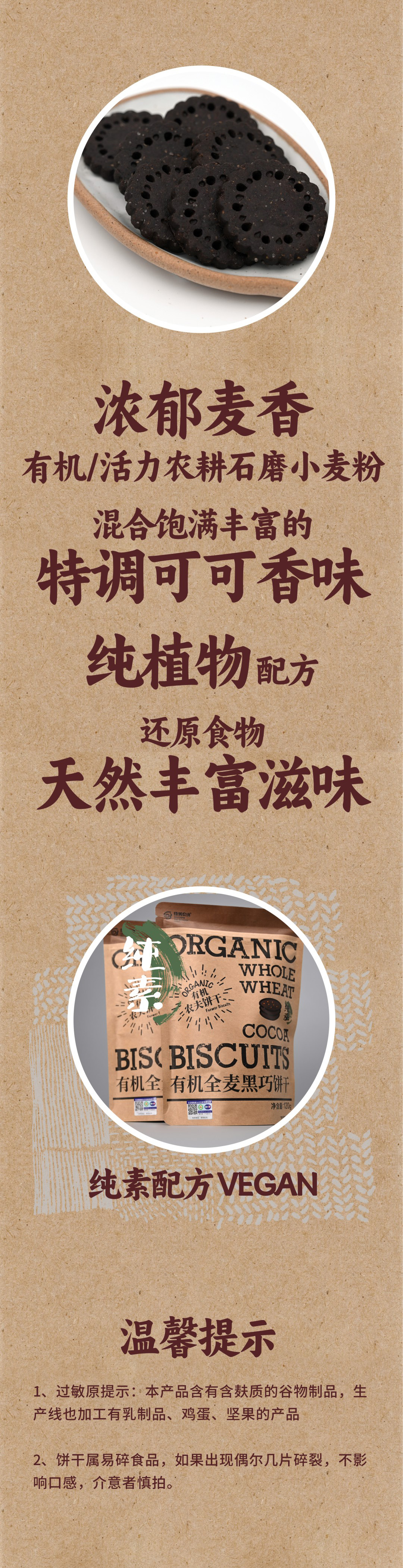 有机饼干120g/袋|全麦黑巧酥脆小饼干零食下午茶