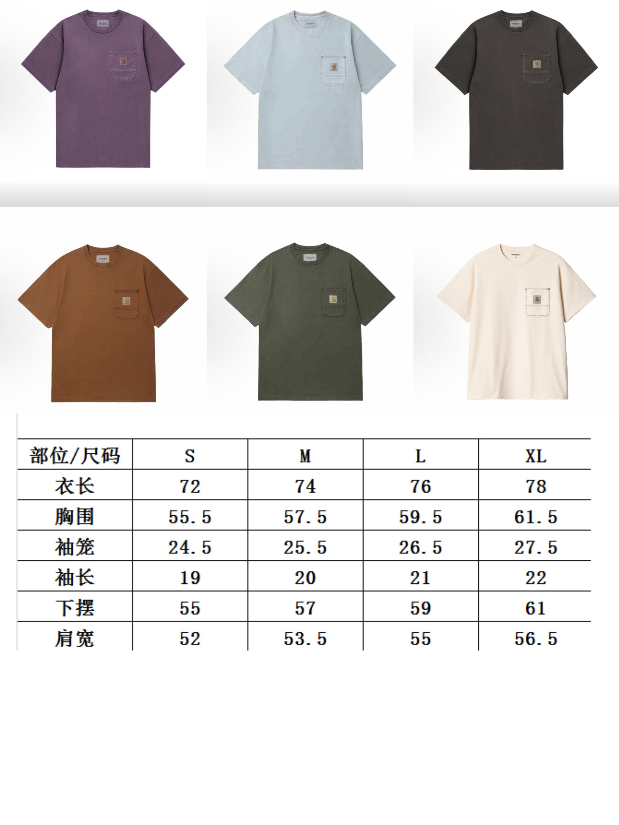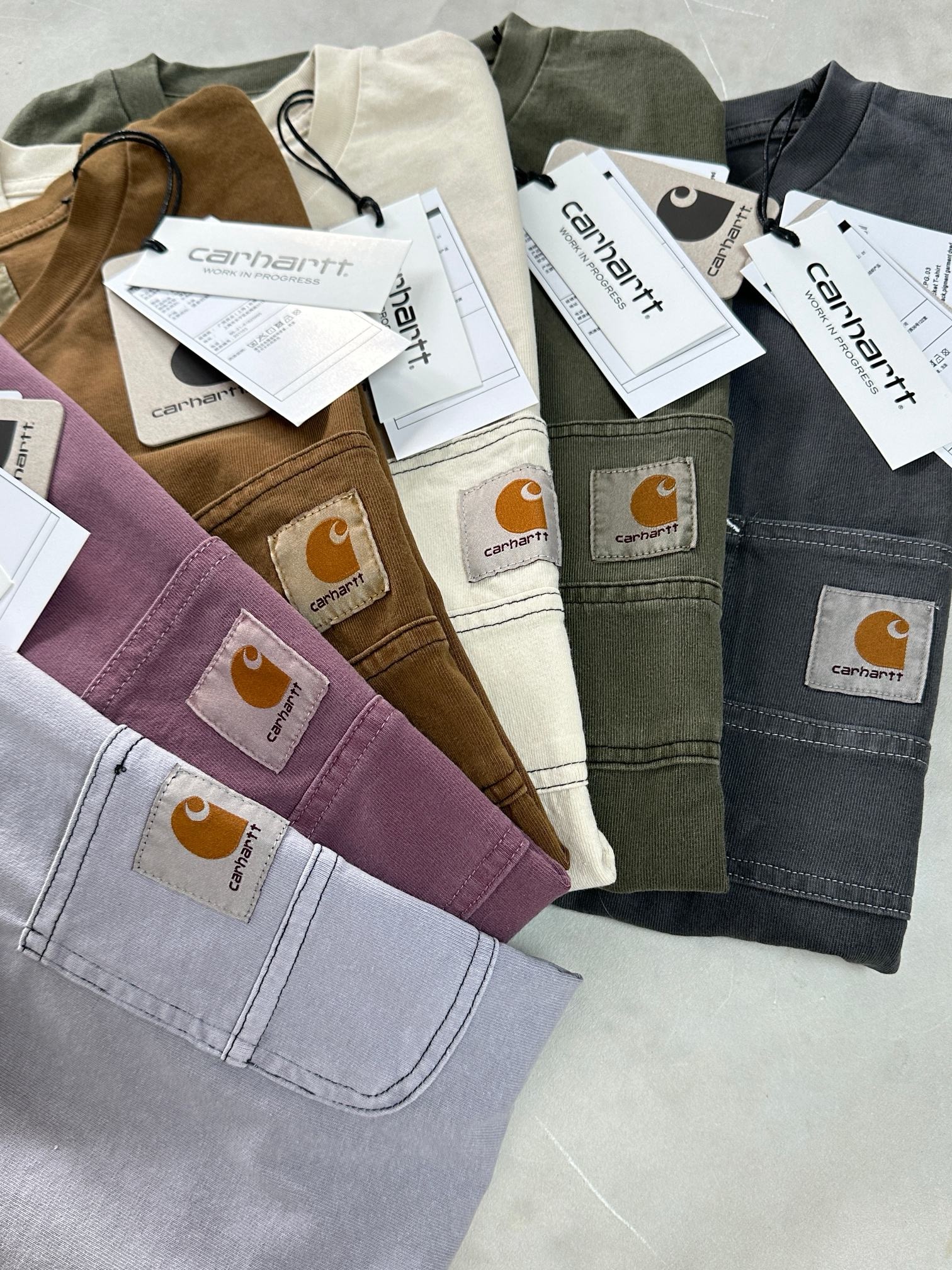 春款上新 经典基础款 Carhartt WIP LOGO标签车缝线口袋特染短袖T恤 280G全棉面料