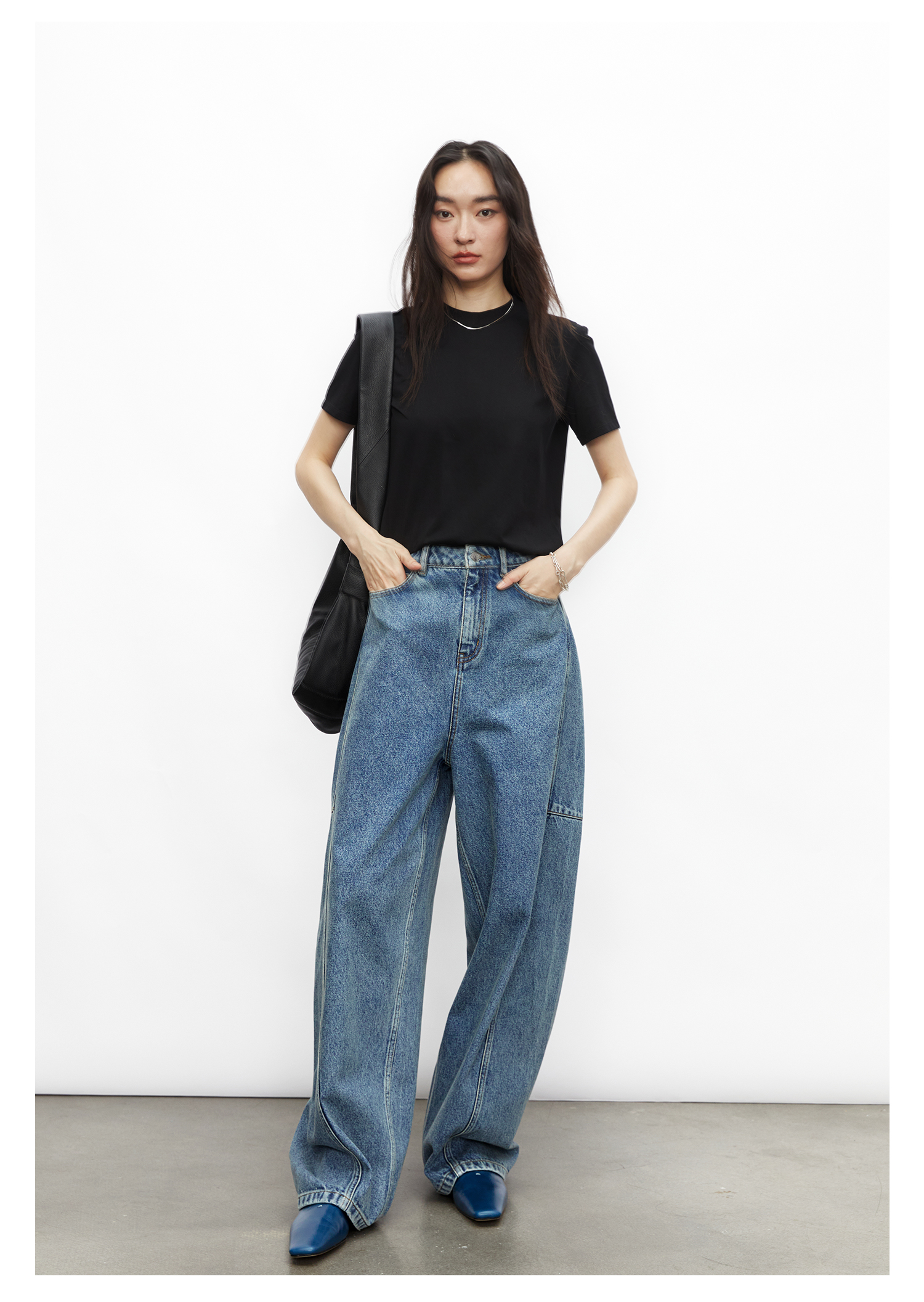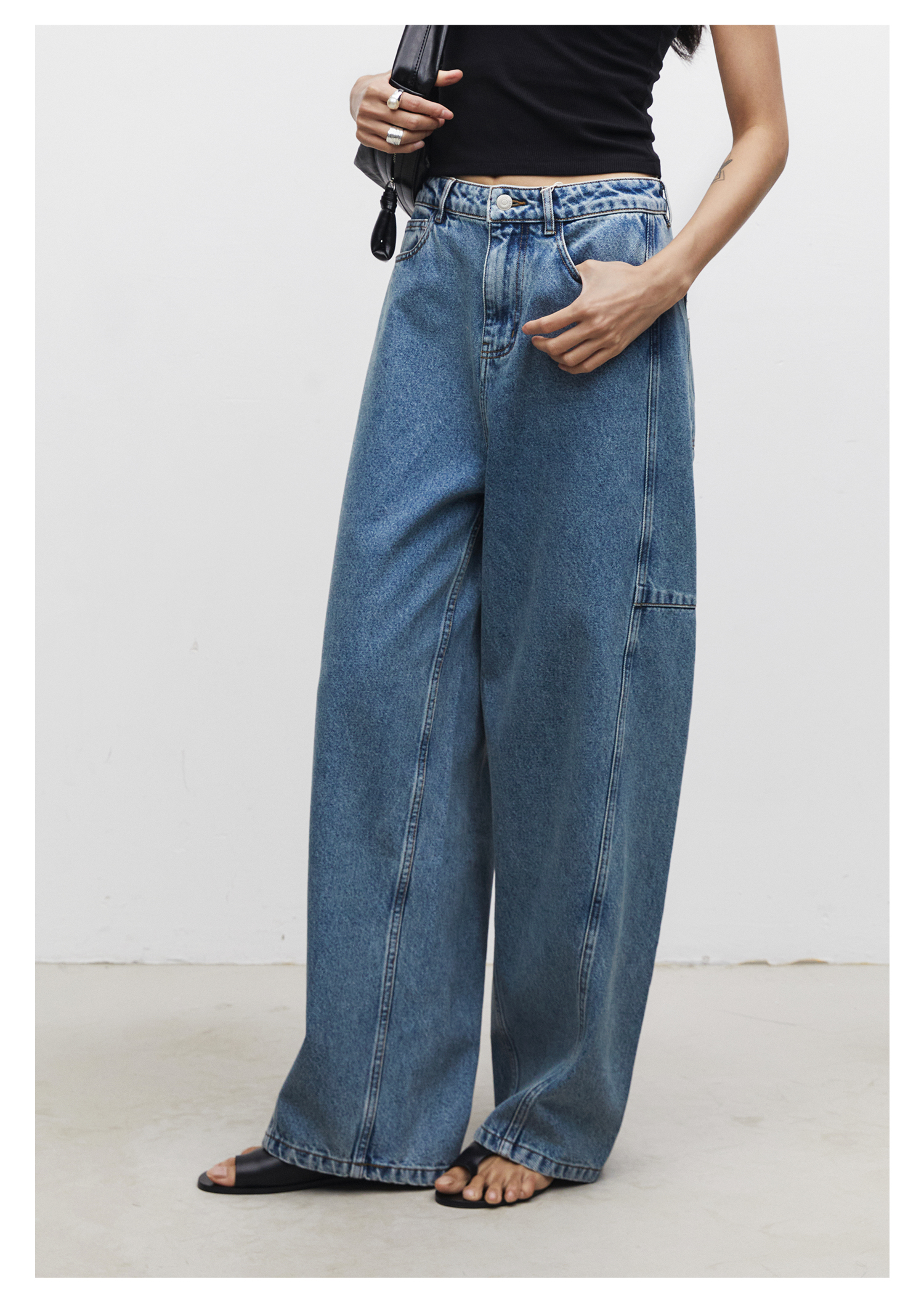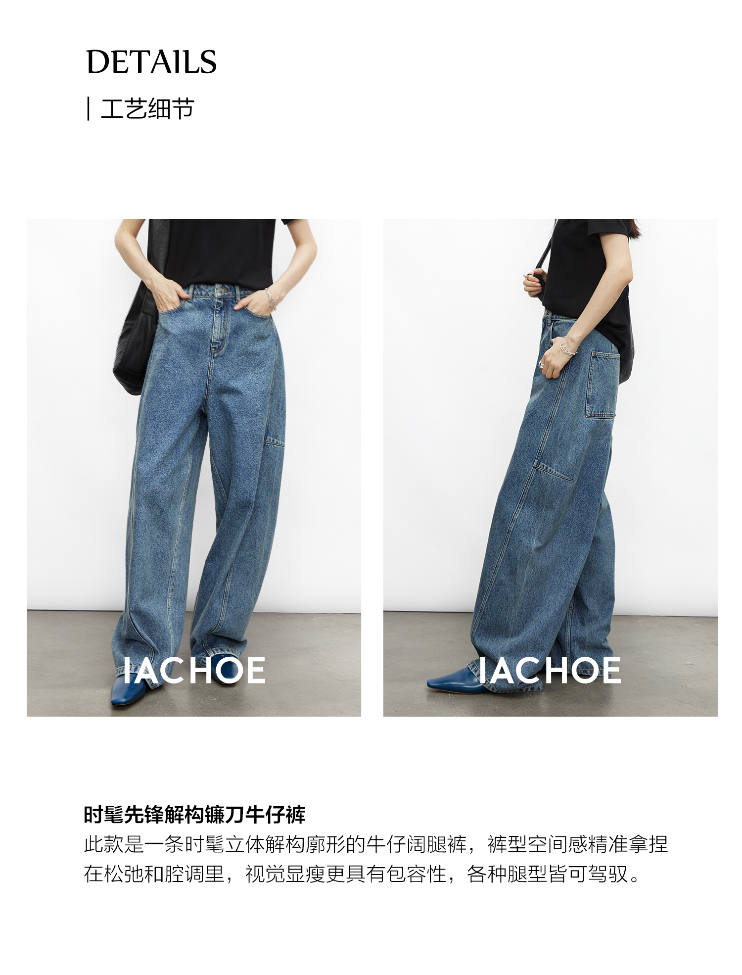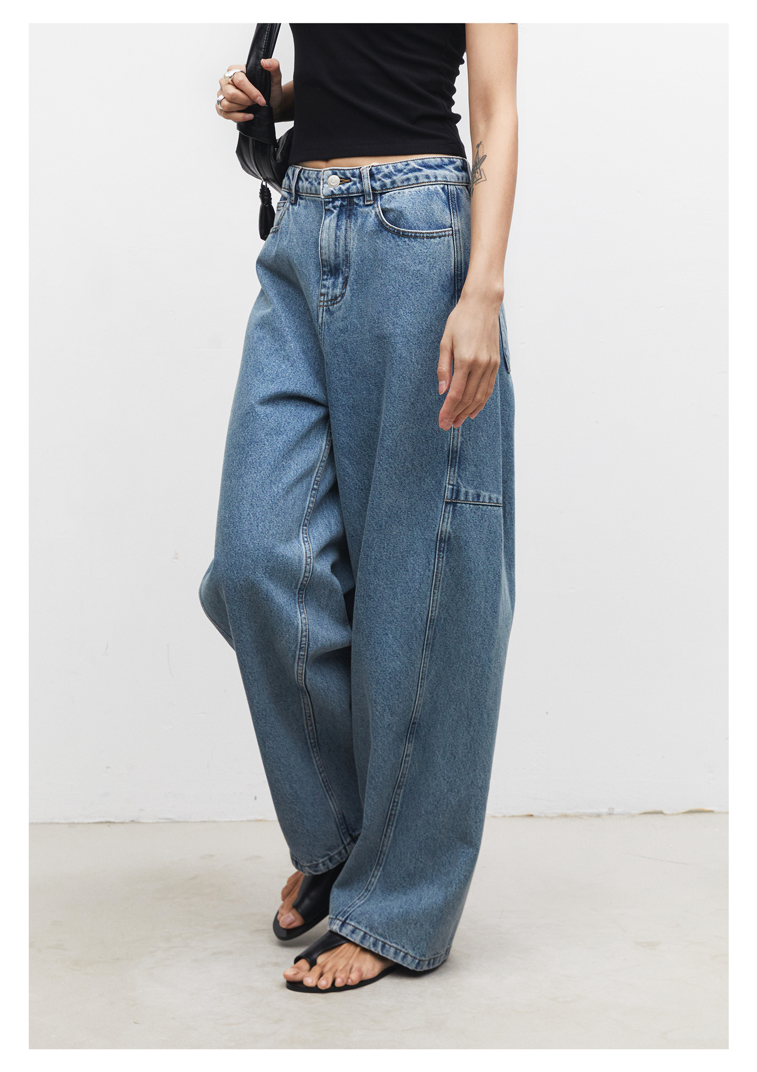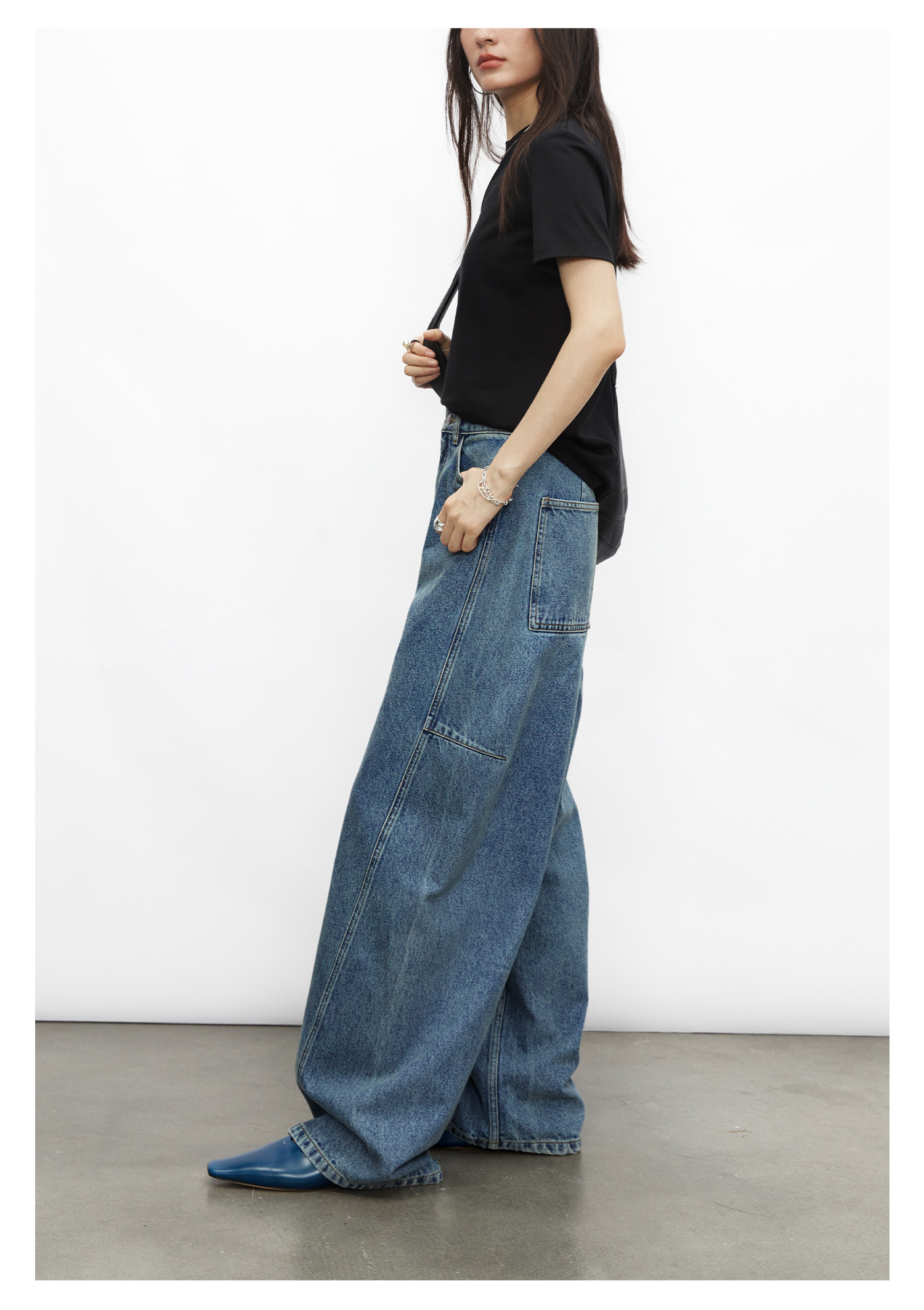 棉仓3531519007-秋季分割切线重设计感气球裤牛仔裤 显瘦宽松阔腿裤女(