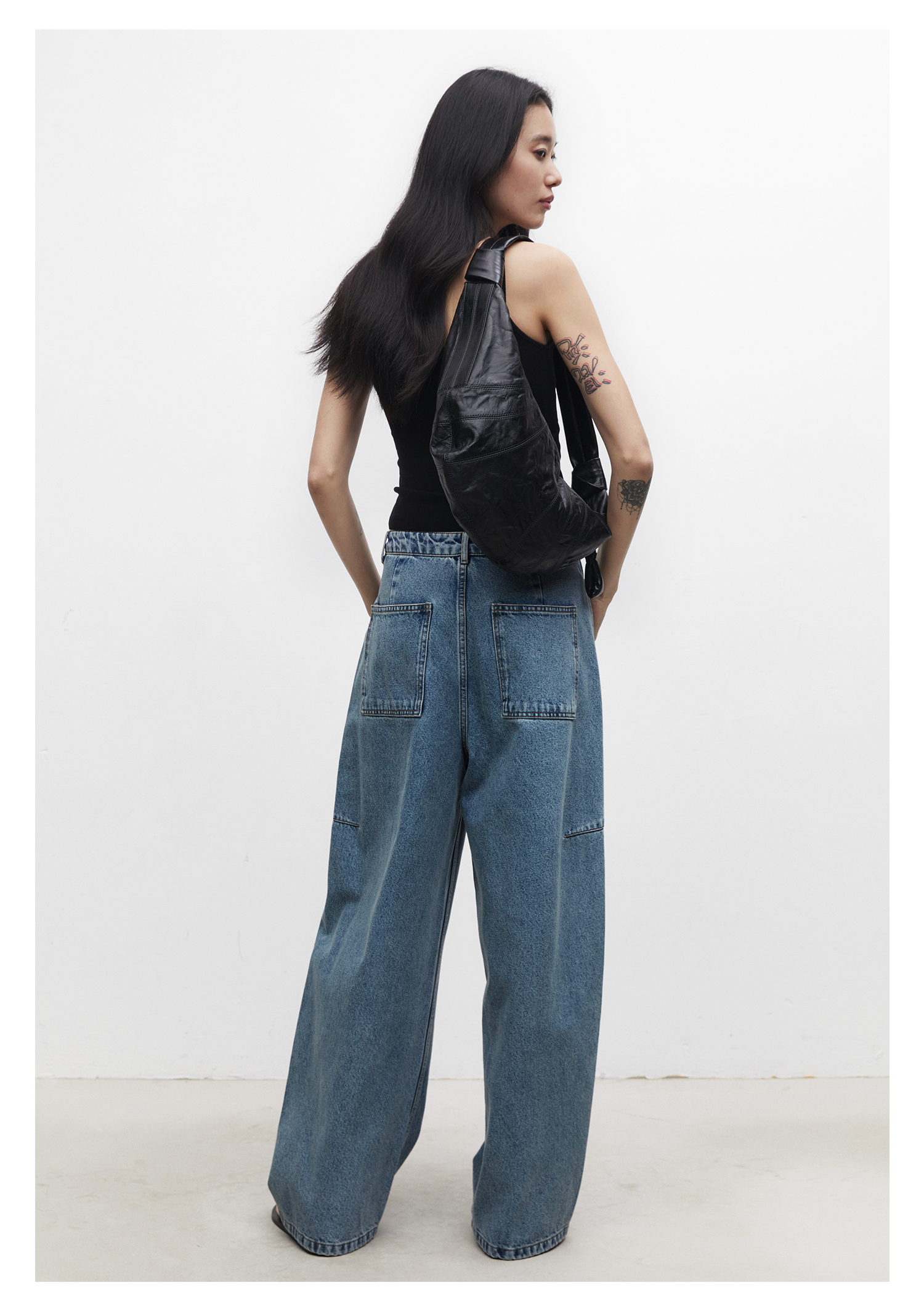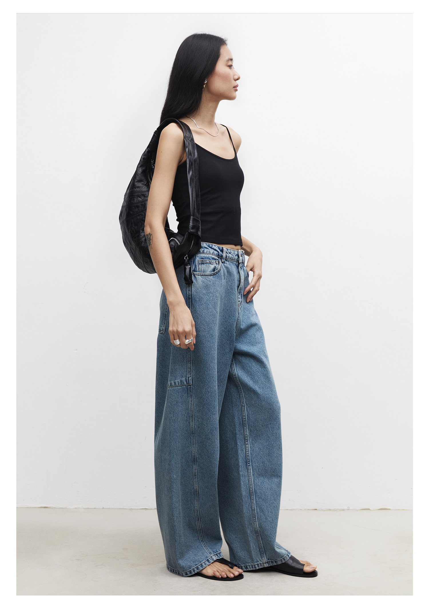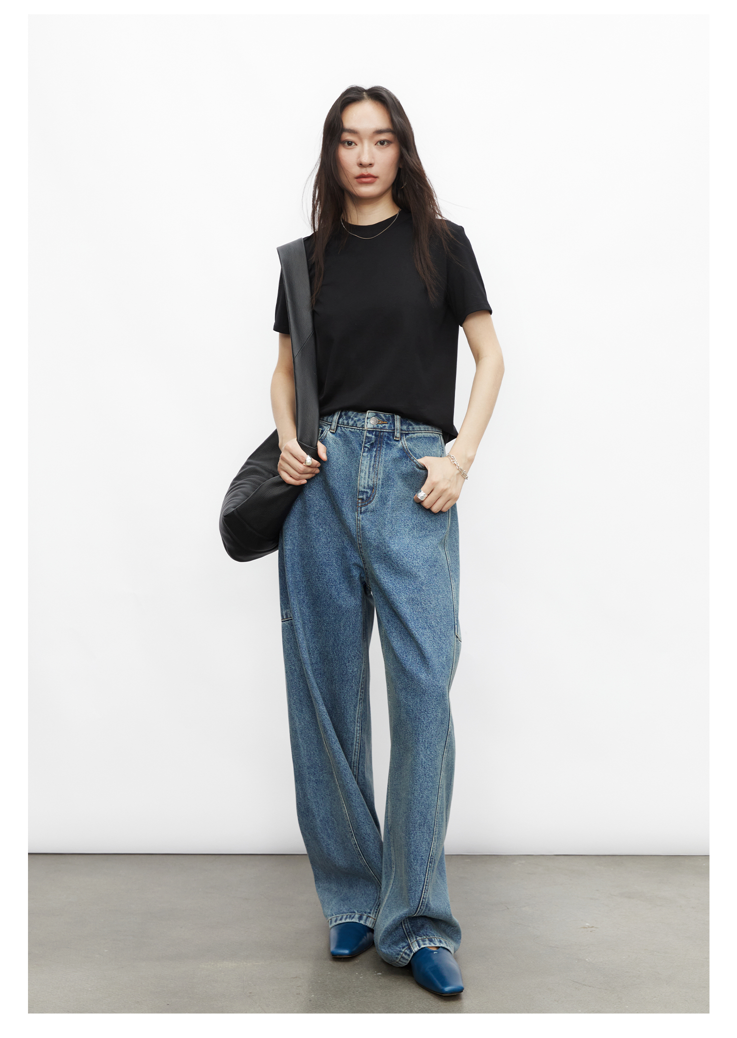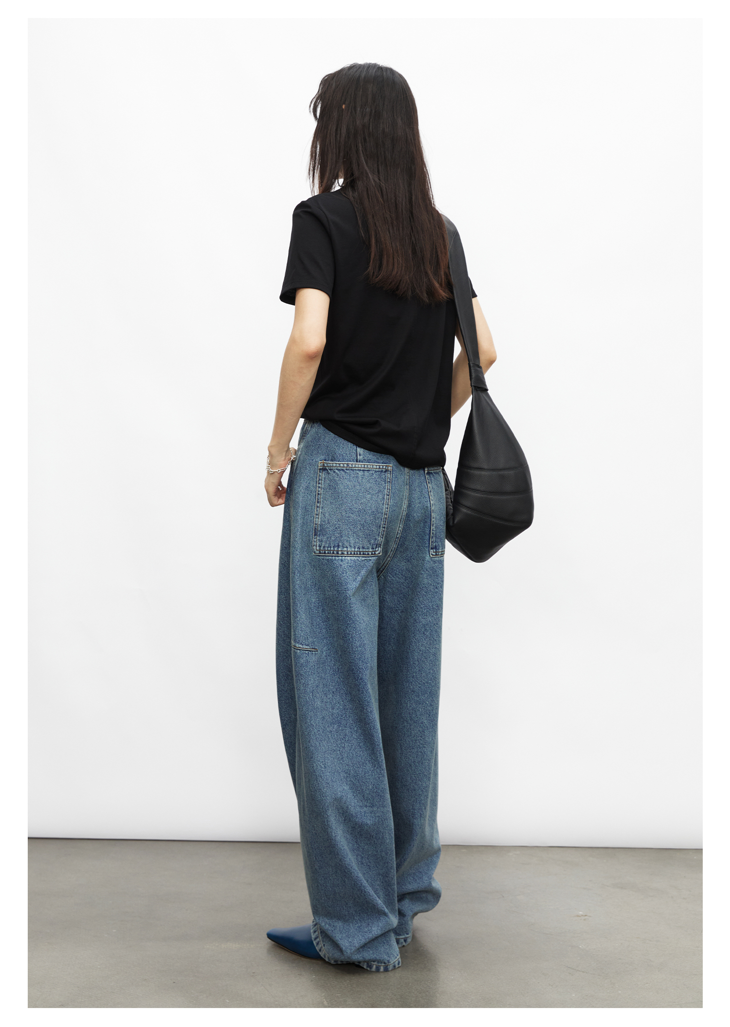 棉仓3531519007-秋季分割切线重设计感气球裤牛仔裤 显瘦宽松阔腿裤女(