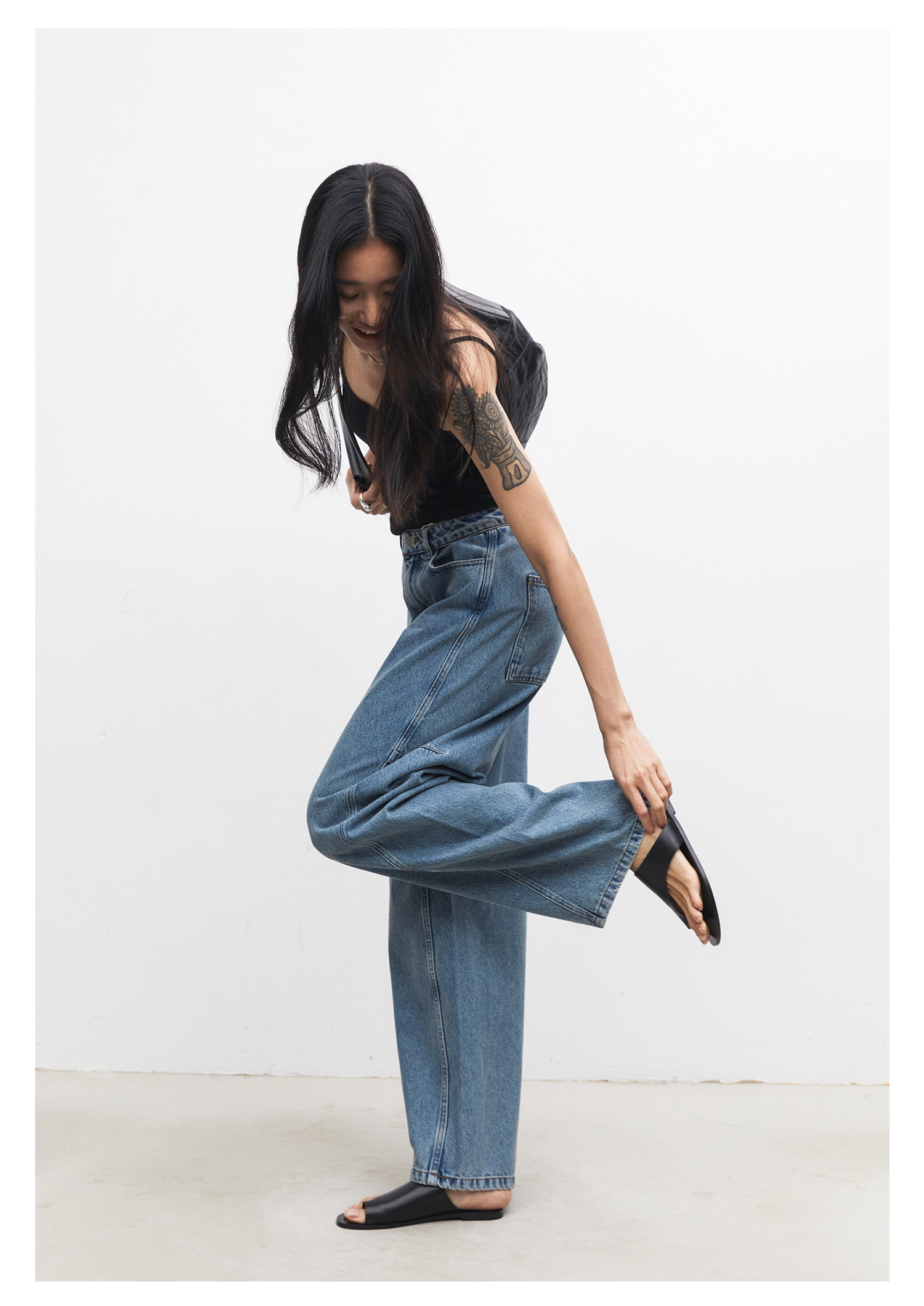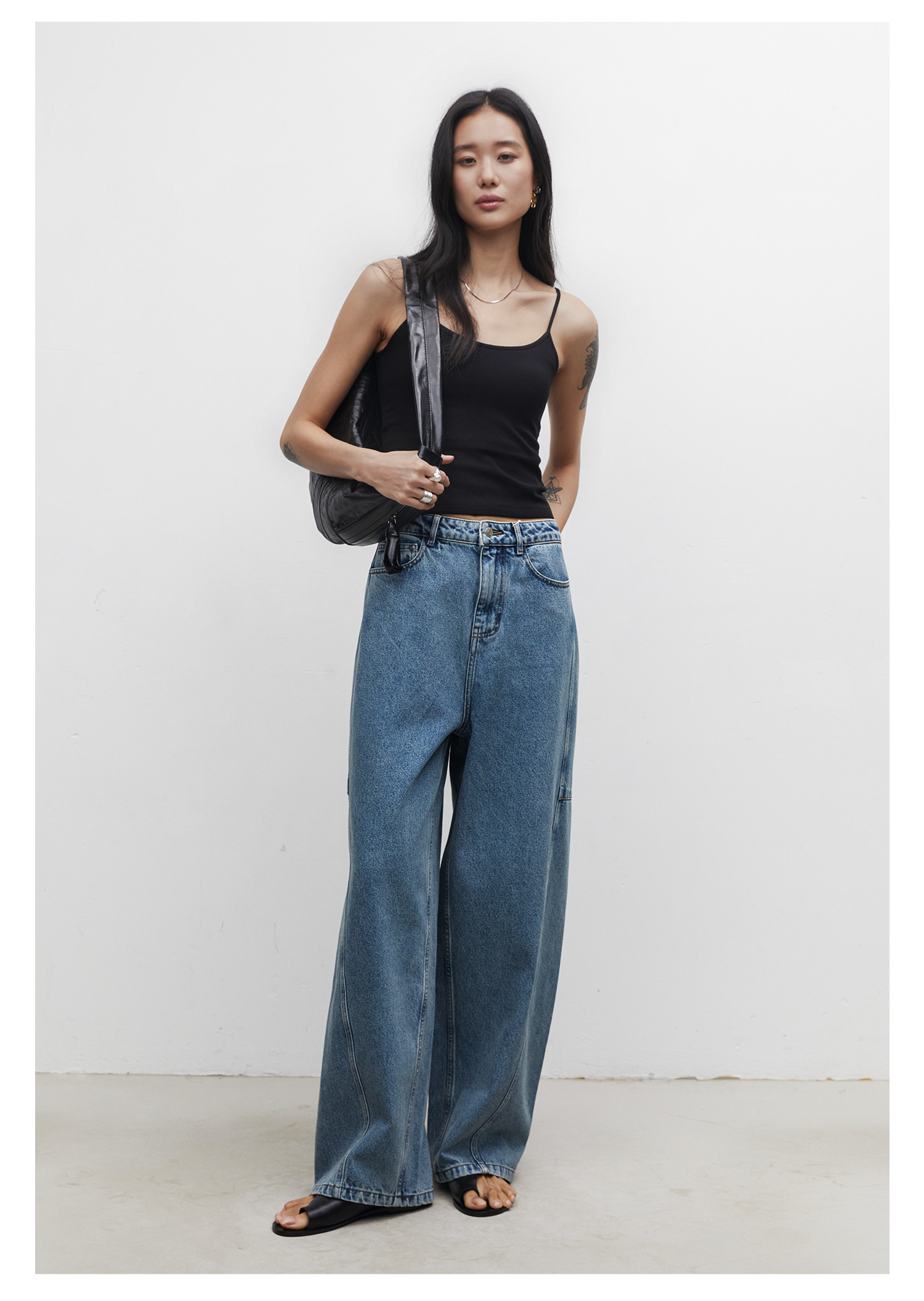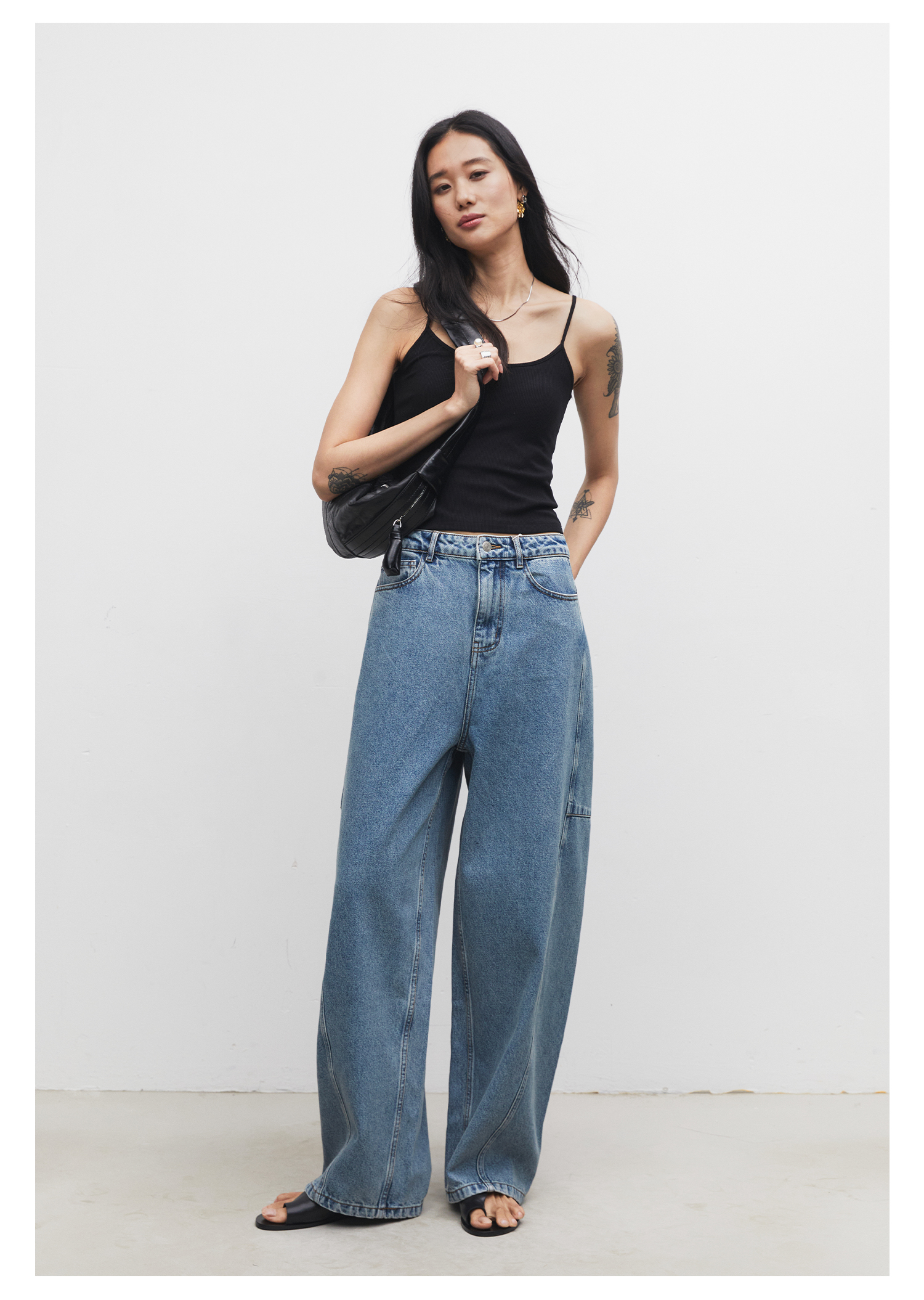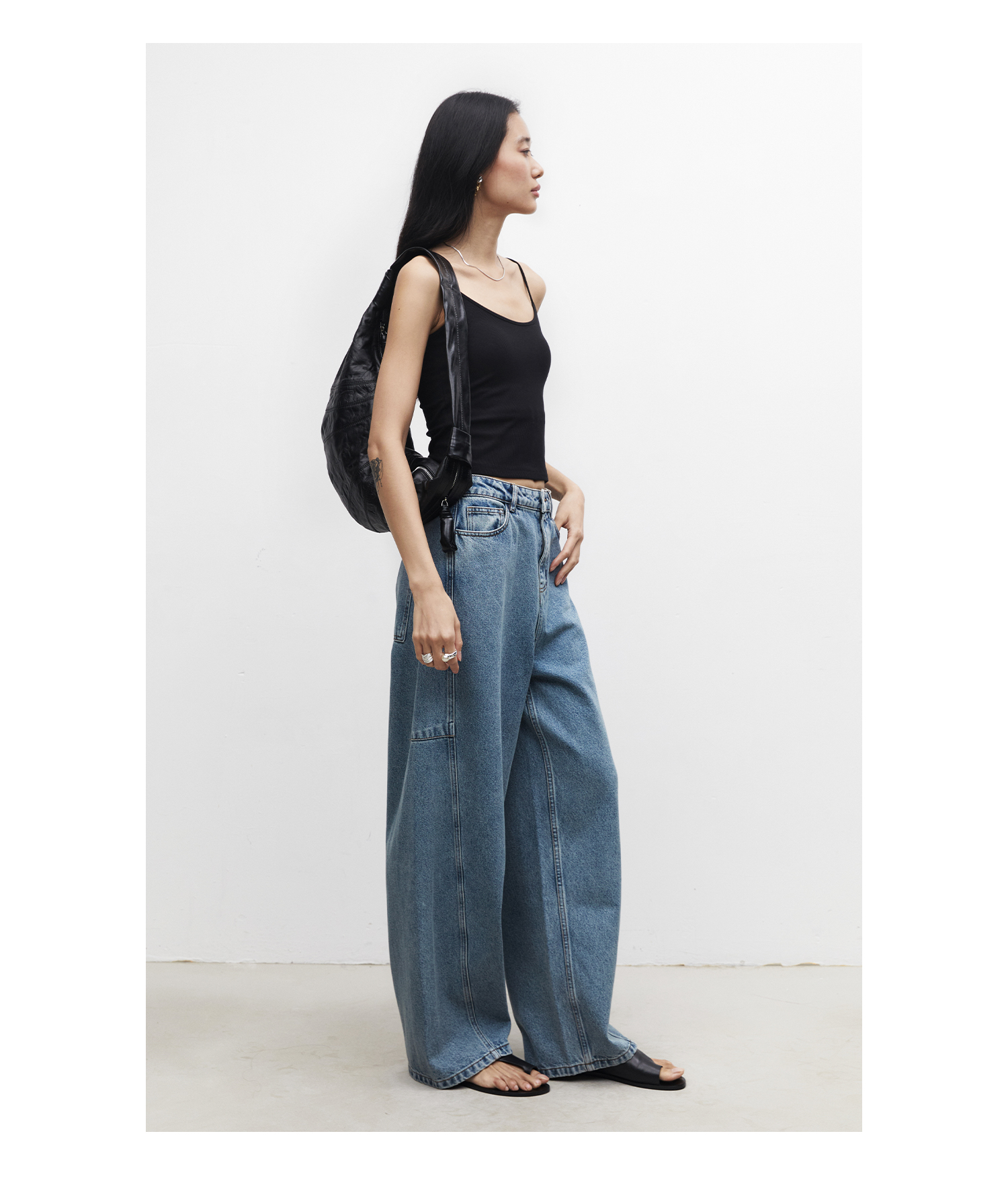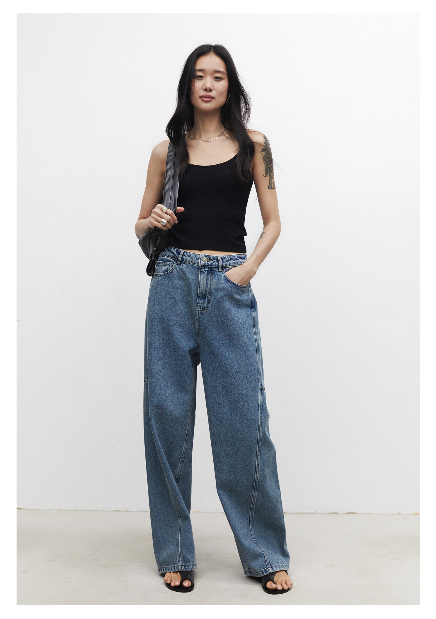 棉仓3531519007-秋季分割切线重设计感气球裤牛仔裤 显瘦宽松阔腿裤女(