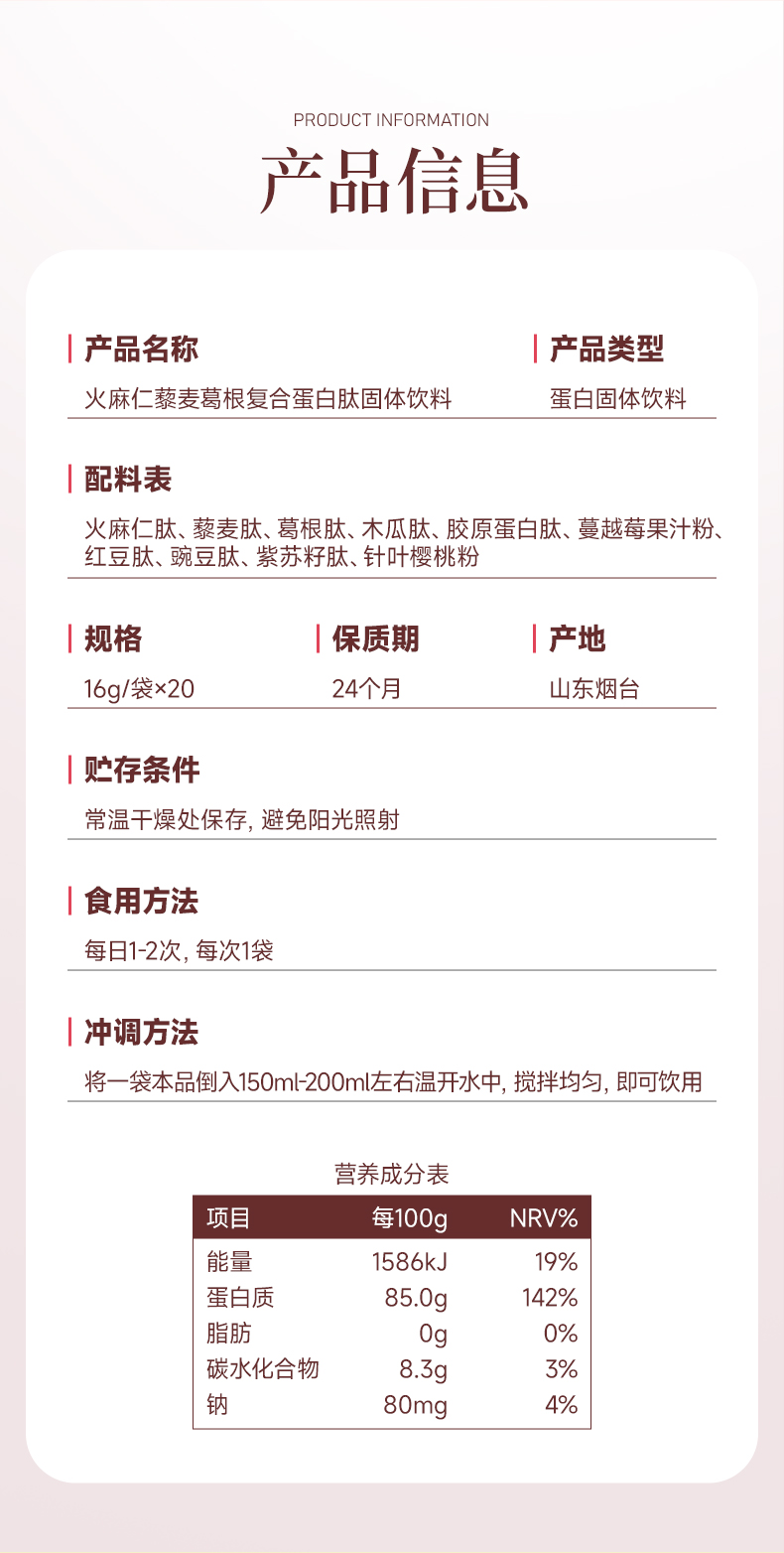 妆食记 火麻仁藜麦葛根复合蛋白肽固体饮料