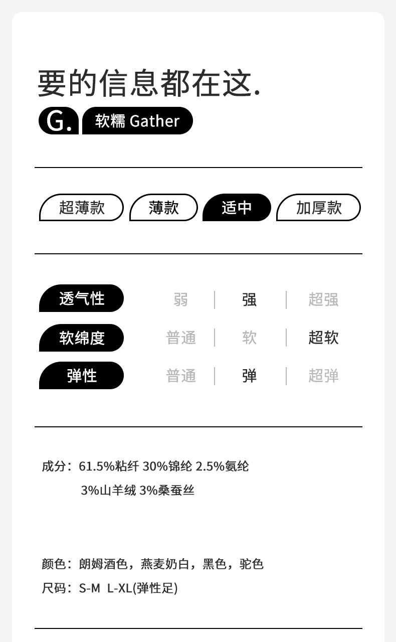 💡这条打底裤的最大亮点在于其面料配比——3%山羊绒+3%桑蚕丝