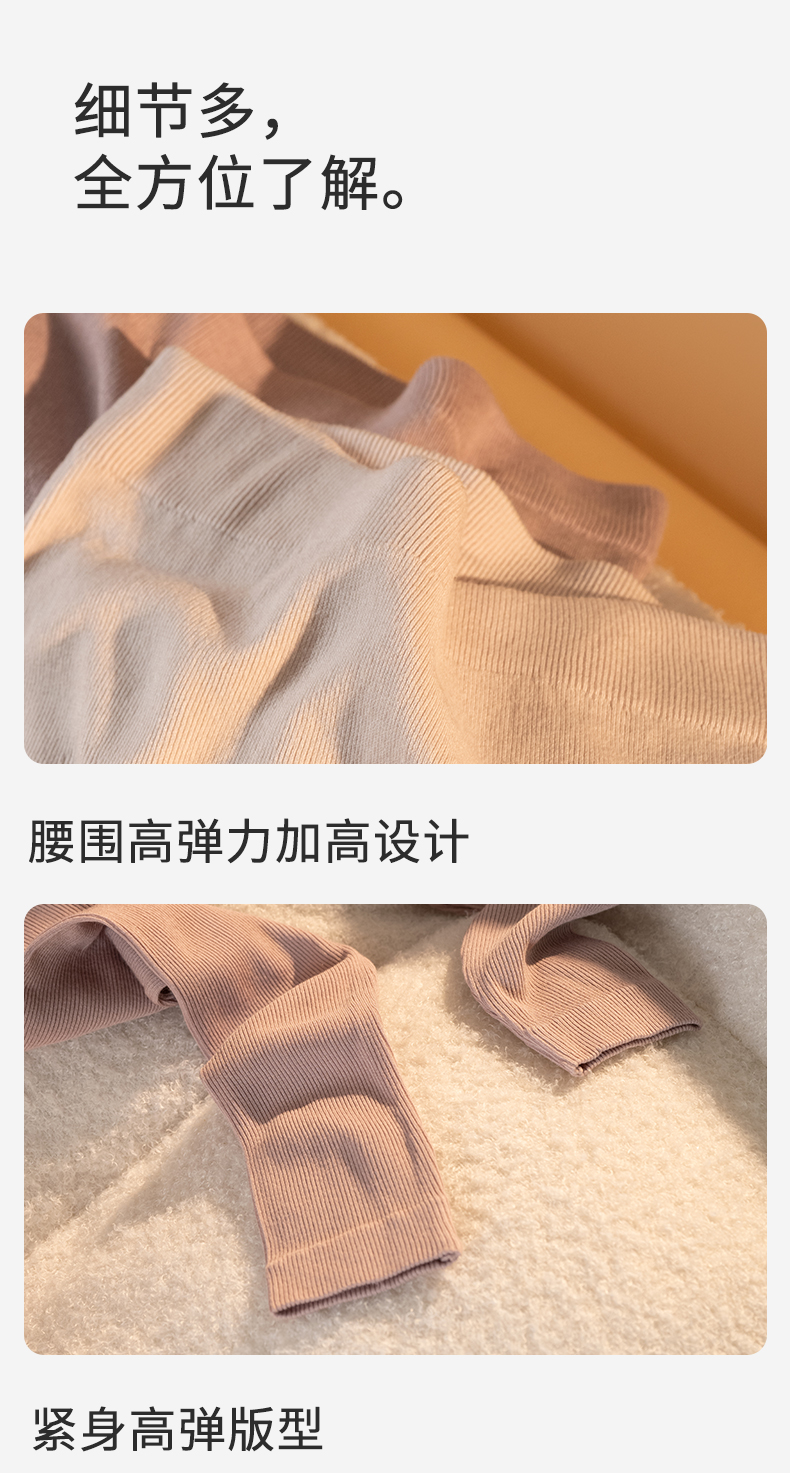 腰腹部是女性冬季最容易受寒的部位。这款打底裤的腰围采用高弹力加高设计,既温暖腹部,又不会产生紧绷感