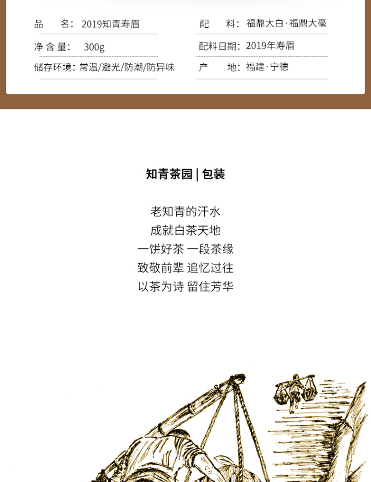 大沁白茶-2019年十三坪知青寿眉饼300g