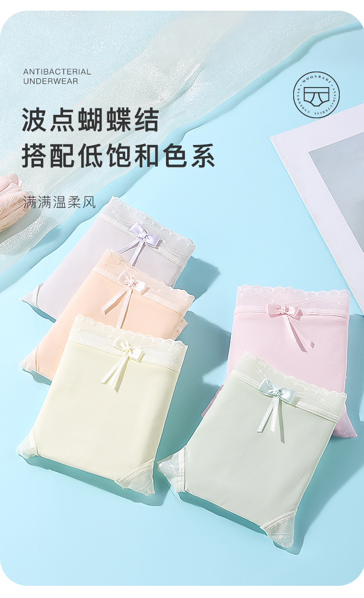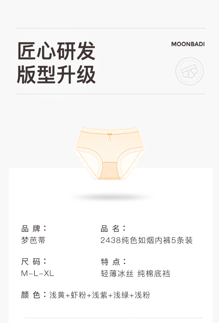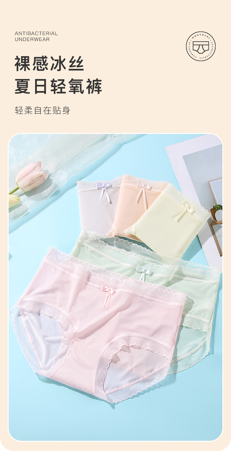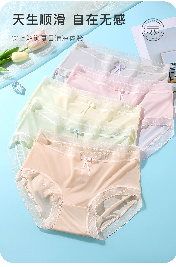 轻薄裸感冰丝面膜裤内裤女100%棉底裆高弹不夹臀纯色如烟内裤5条装