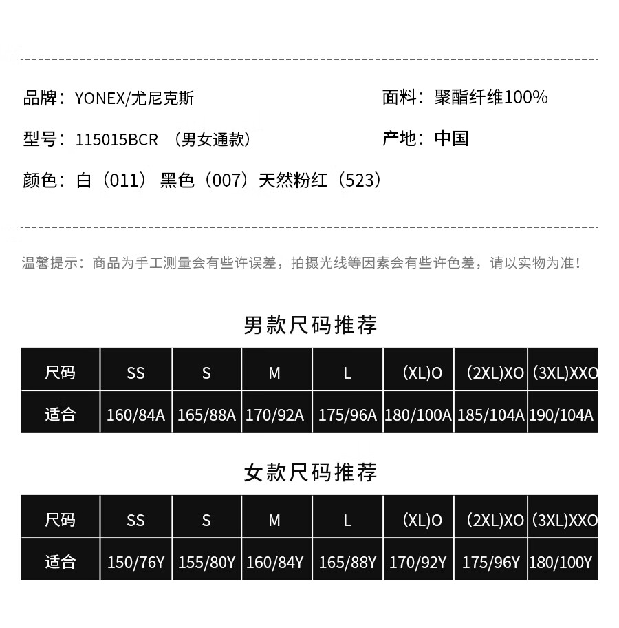 尤尼克斯 男女同款 国家队训练服 运动T恤 115015BCR/115025BCR