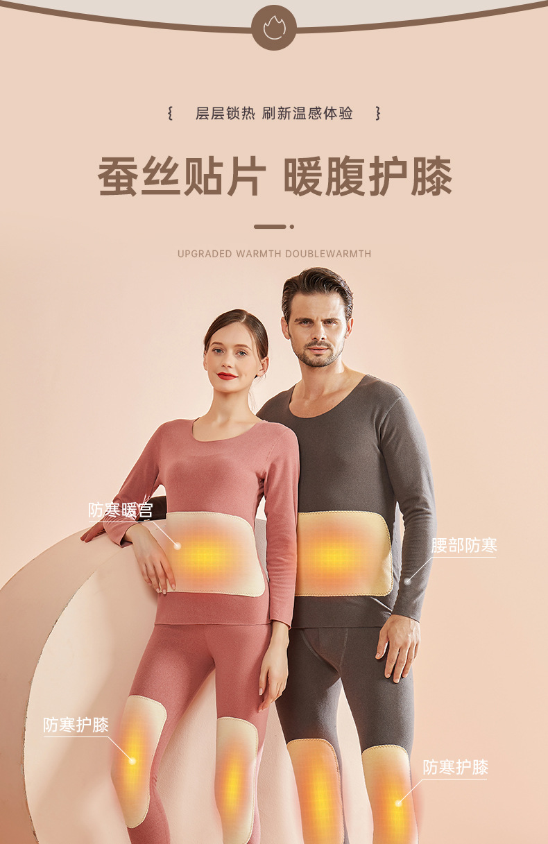 2件立减20【蚕丝养肤 双重锁温】升级第六代蚕丝贴片 黑科技双面绒秋冬保暖套装 蚕丝养肤/护宫暖胃/护膝 3倍高弹 贴身不勒