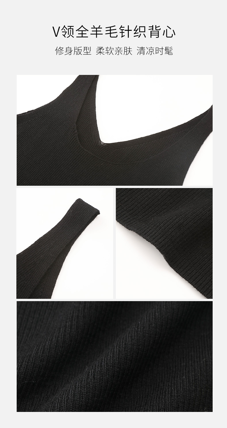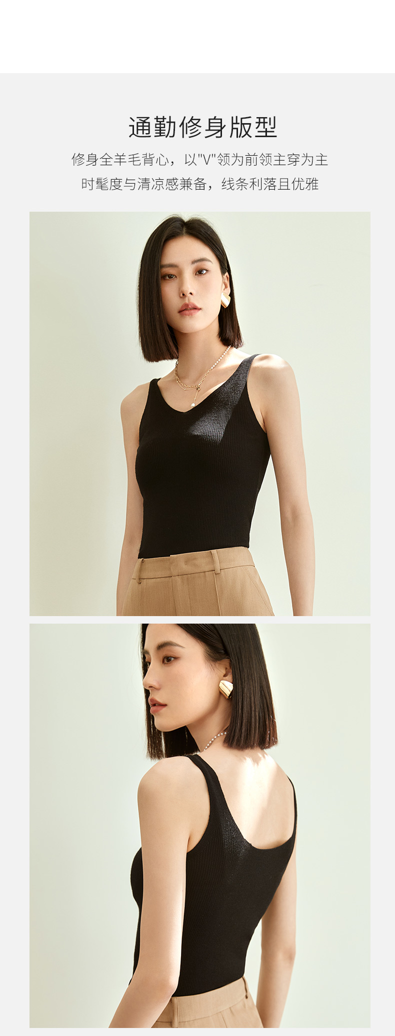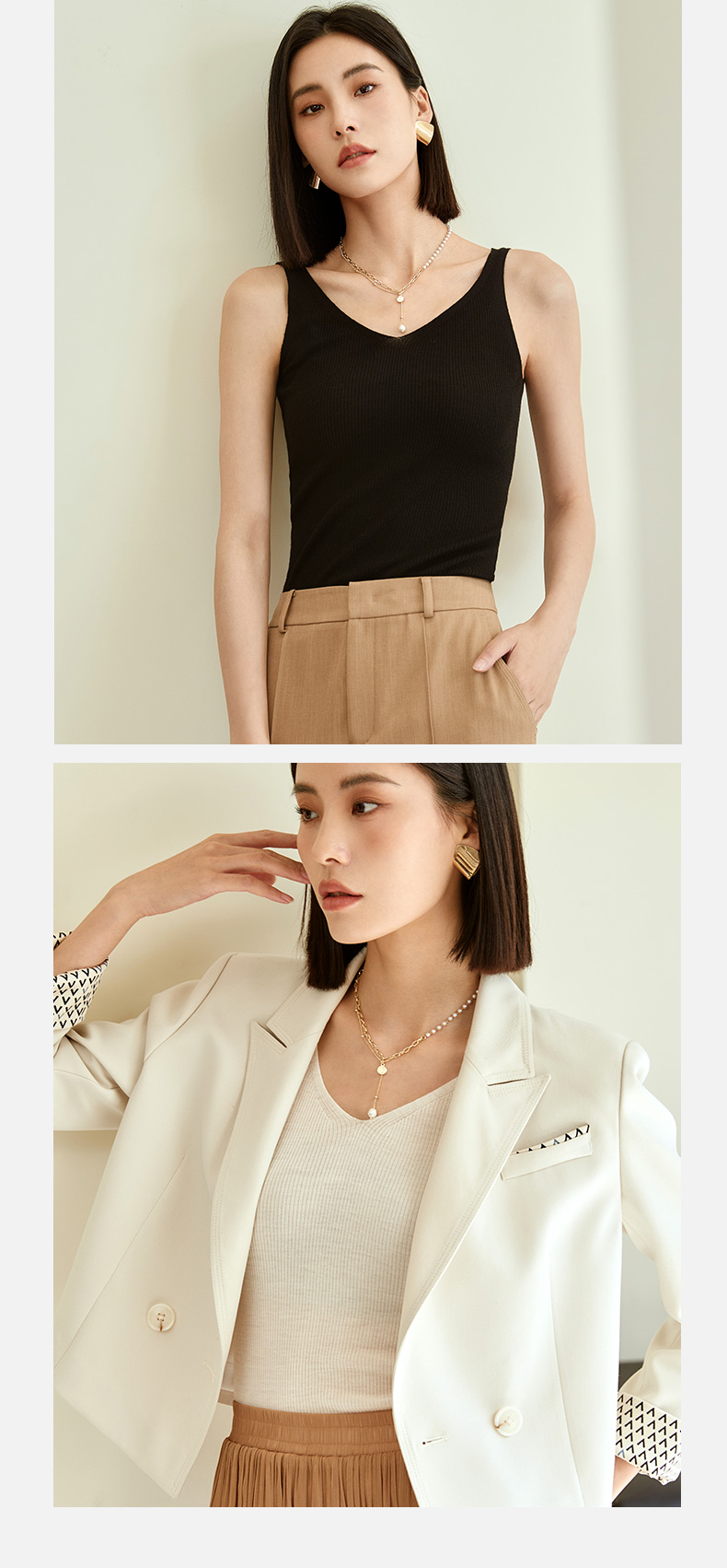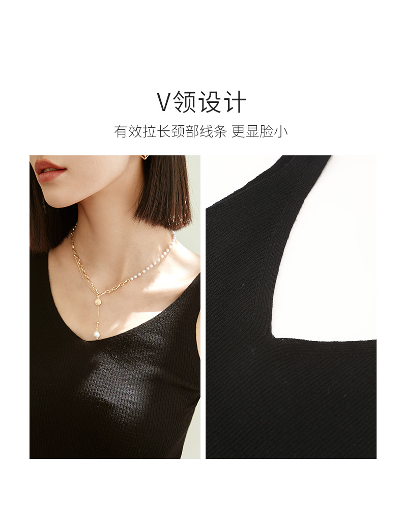 玳莎V领纯色针织背心秋季款女士时尚简约内搭修身吊带上衣 DC33001