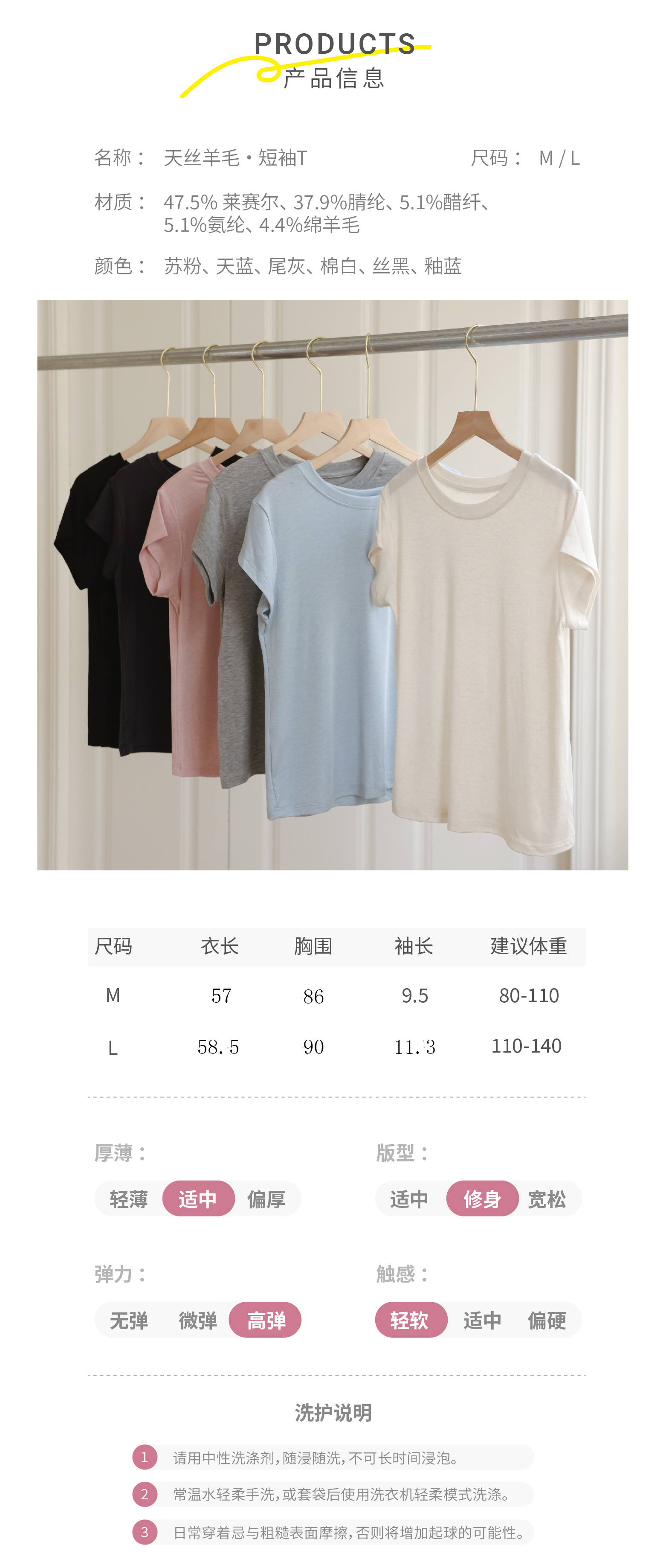 ☀通勤休闲,柔软自在【KEMU】天丝醋酸羊毛款·短袖T,百搭又好看,不挑肤色不挑人, 来自澳洲黄金产区的美丽诺羊毛+奥地利兰精天丝+伊士曼醋酸纤维