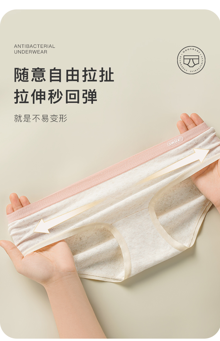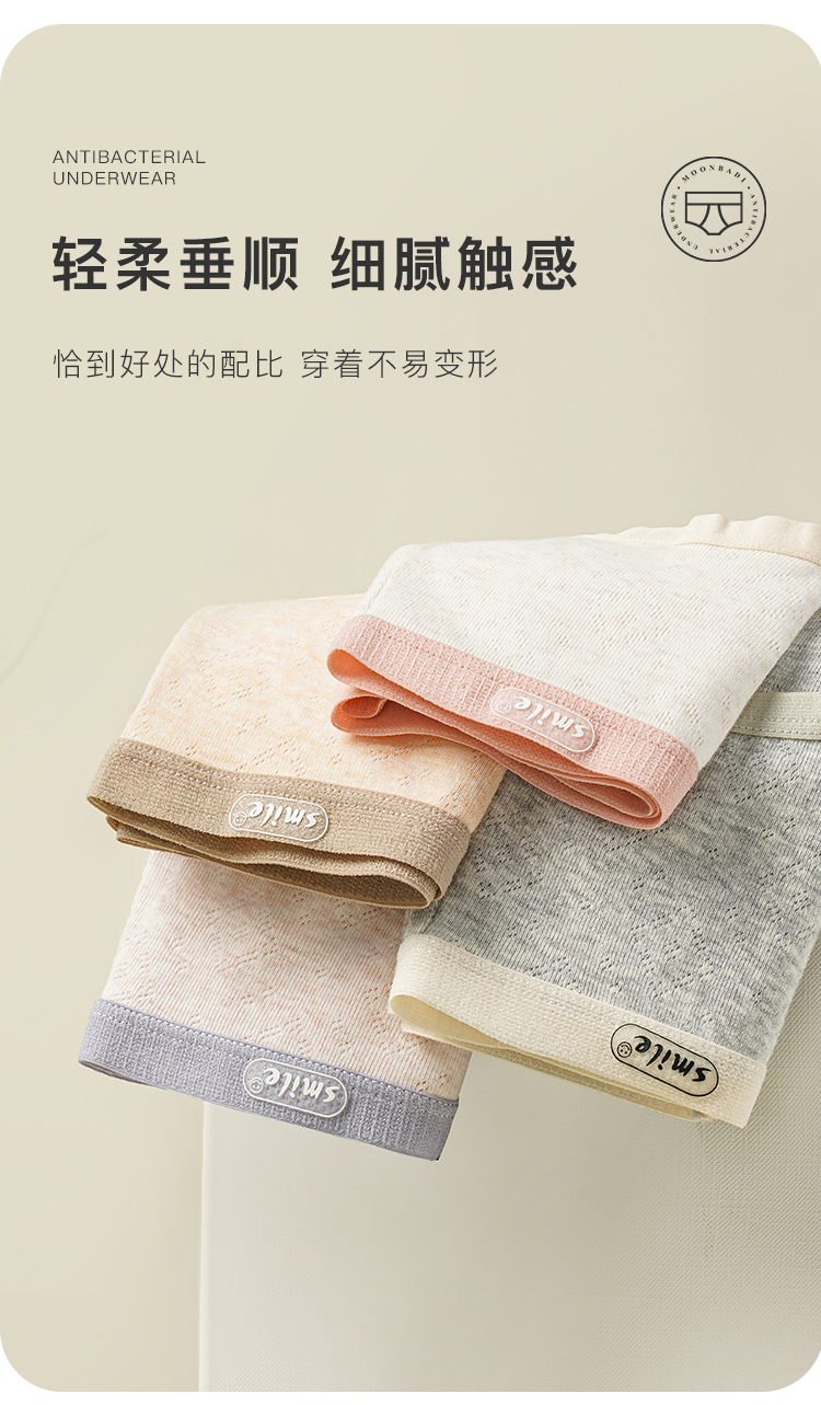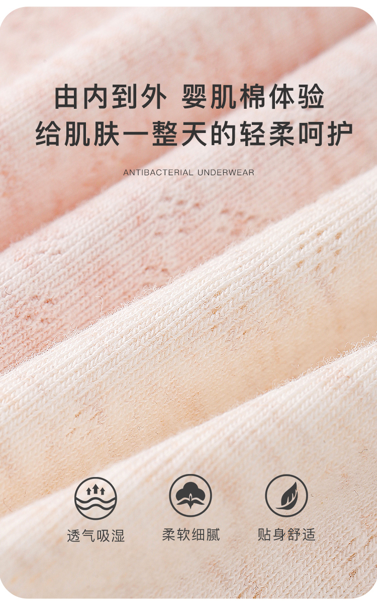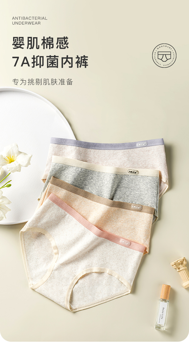 7A级纯棉抑菌内裤女亲肤抑菌全棉底裆清爽三角内裤微笑听雨内裤4条装