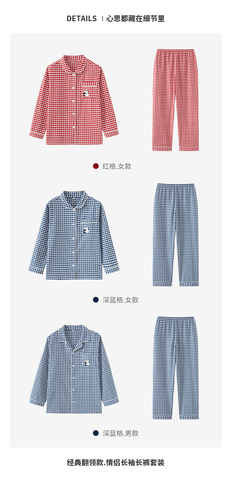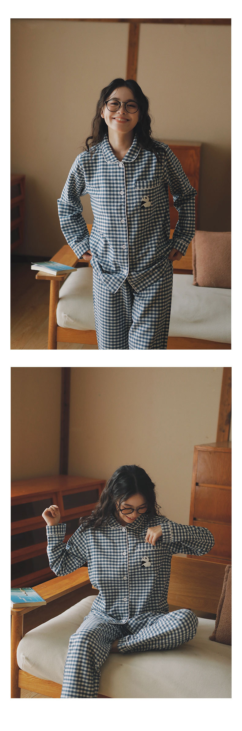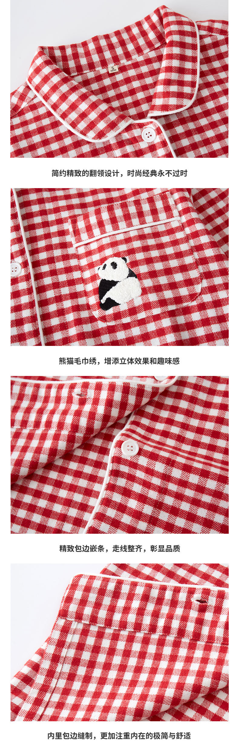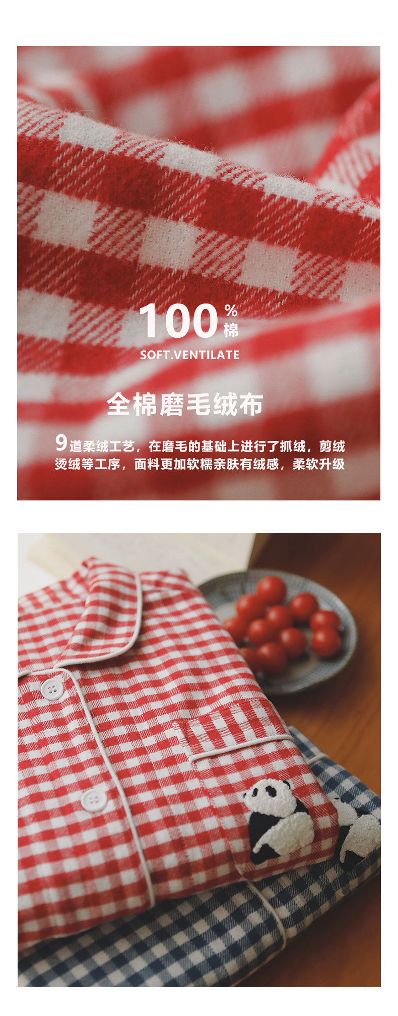 【全棉磨毛】 2025新款熊猫刺绣秋冬情侣睡衣女春套装纯棉磨毛绒布卡通家居服