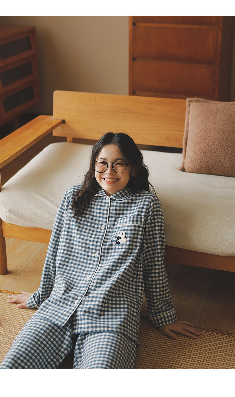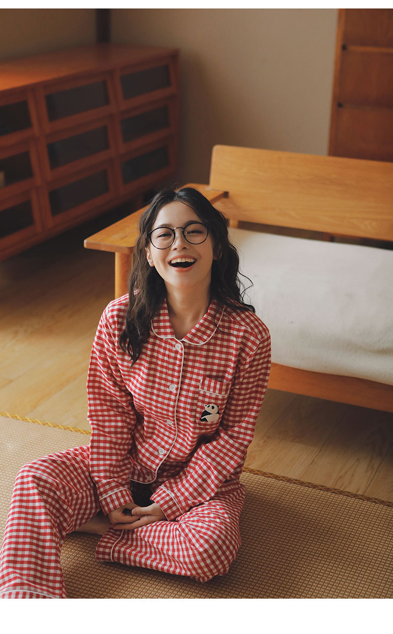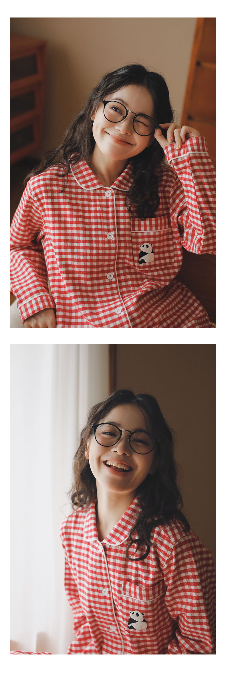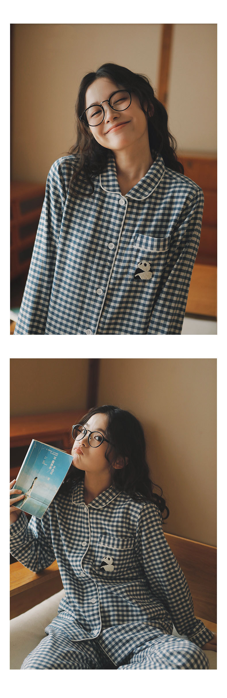 【全棉磨毛】 2025新款熊猫刺绣秋冬情侣睡衣女春套装纯棉磨毛绒布卡通家居服