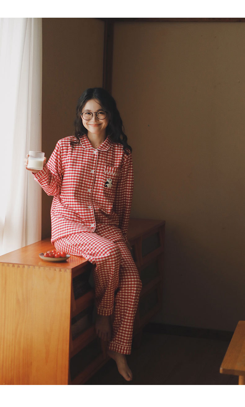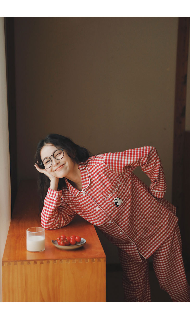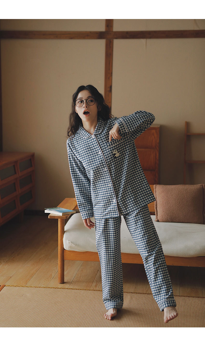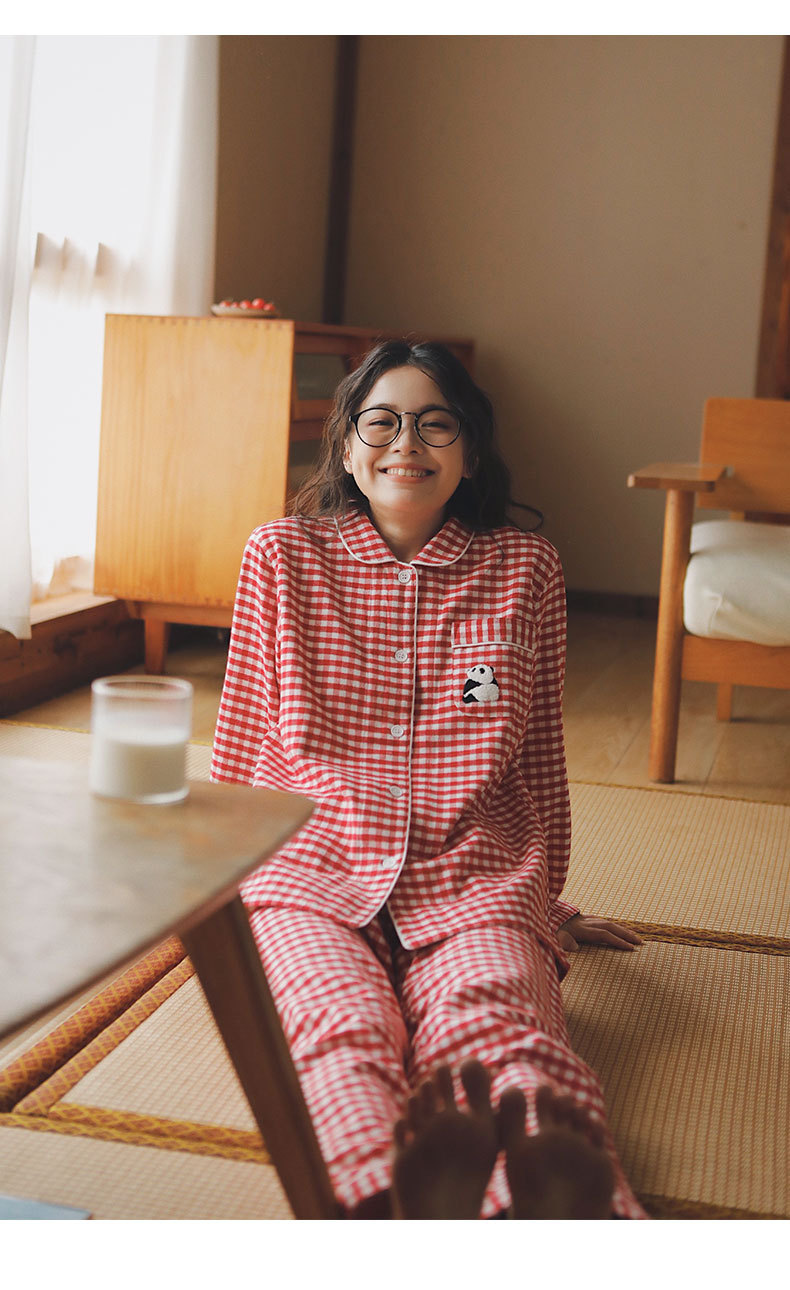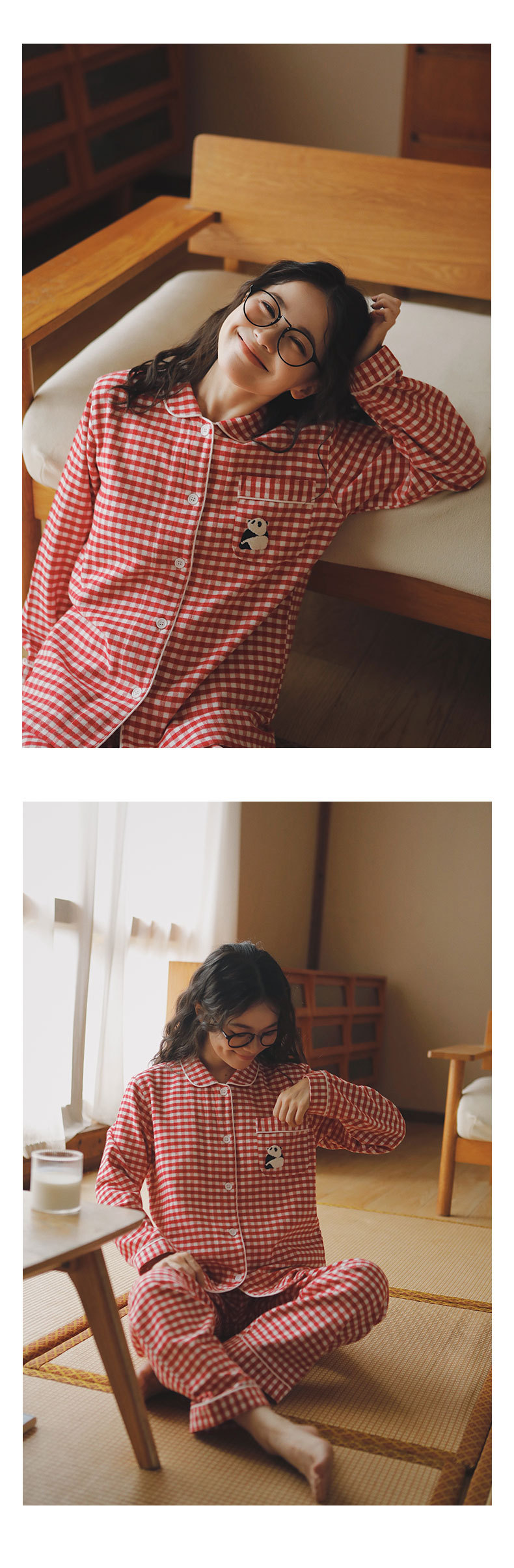 【全棉磨毛】 2025新款熊猫刺绣秋冬情侣睡衣女春套装纯棉磨毛绒布卡通家居服