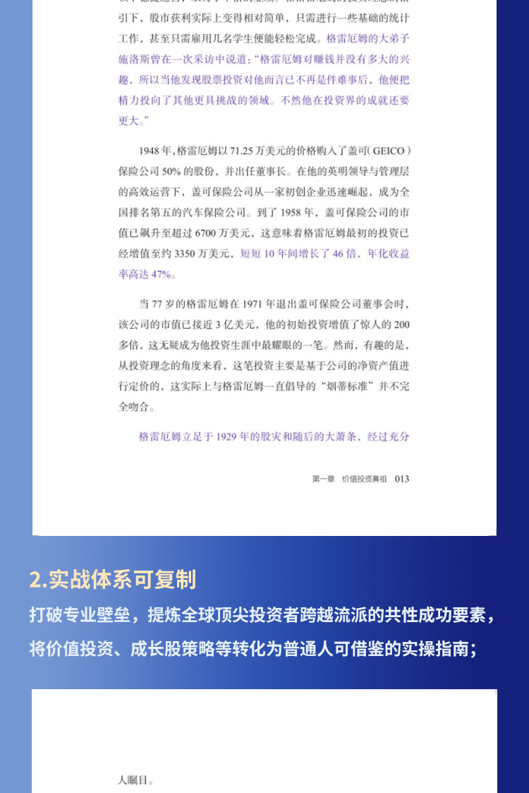 | 《投资大师列传1》是一部聚焦金融市场传奇人物的匠心之作,深度挖掘投资界顶尖人物的实战心法与财富密码。书中的投资大师们以超越时代的洞察力,在资本市场留下辉煌战绩,他们的投资哲学与策略,早已成为全球投资者奉为圭臬的制胜法则。作者以精练生动的笔触,还原大师们纵横市场的关键战役,结合当时的时政经济背景,深度解析投资决策背后的逻辑与智慧。读者将置身风云变幻的金融现场,感受大师们在市场浪潮中精准捕捉机遇、化解危机的卓越胆识,体悟资本市场的残酷与魅力。本书打破专业壁垒,从实战视角出发,提炼大师们成功的核心要素与共性策略。无论是研判市场趋势的独到眼光,还是构建投资体系的科学方法,都为投资者提供可借鉴的实战指南。在当下中国经济转型、金融市场格局重塑的关键时期,参透投资大师们的成功秘诀,是投资者提升专业素养、应对市场挑战的必修课。正如牛顿所言;站在巨人的肩膀上看得更远,本书堪称打开投资智慧宝库的钥匙。无论你是初入市场的新手,还是寻求突破的资深投资者,都能从大师们的传奇故事与投资精髓中,汲取灵感、优化策略,在财富增值的道路上稳步前行。 |