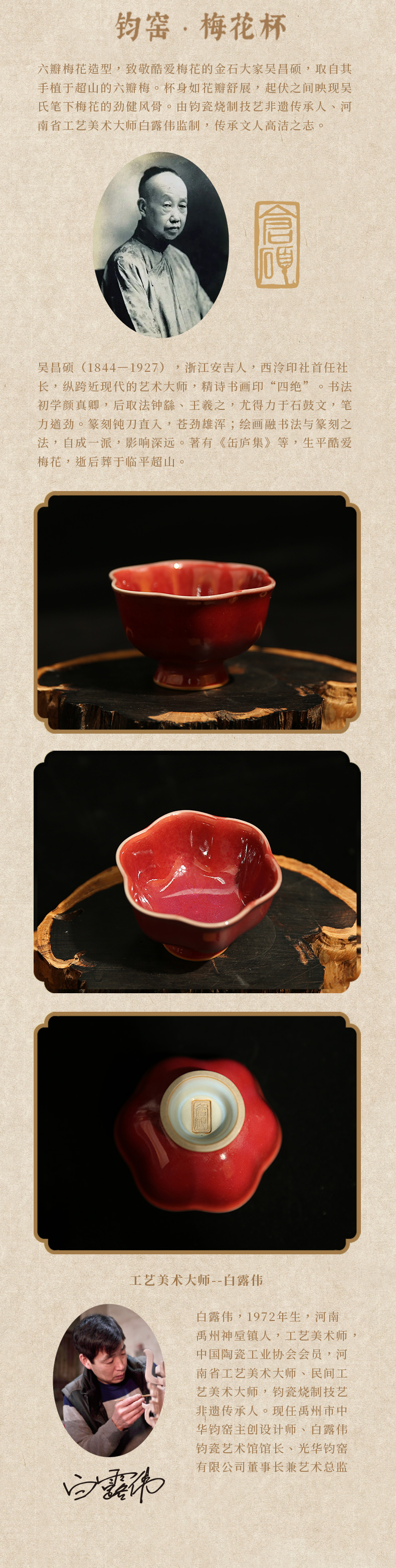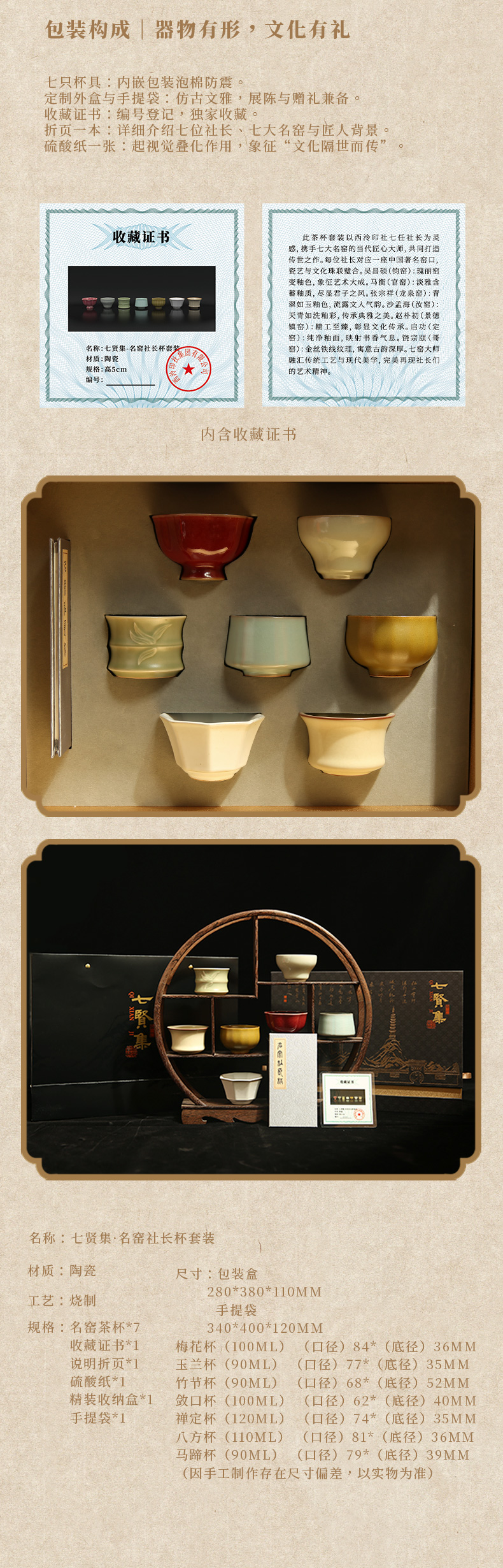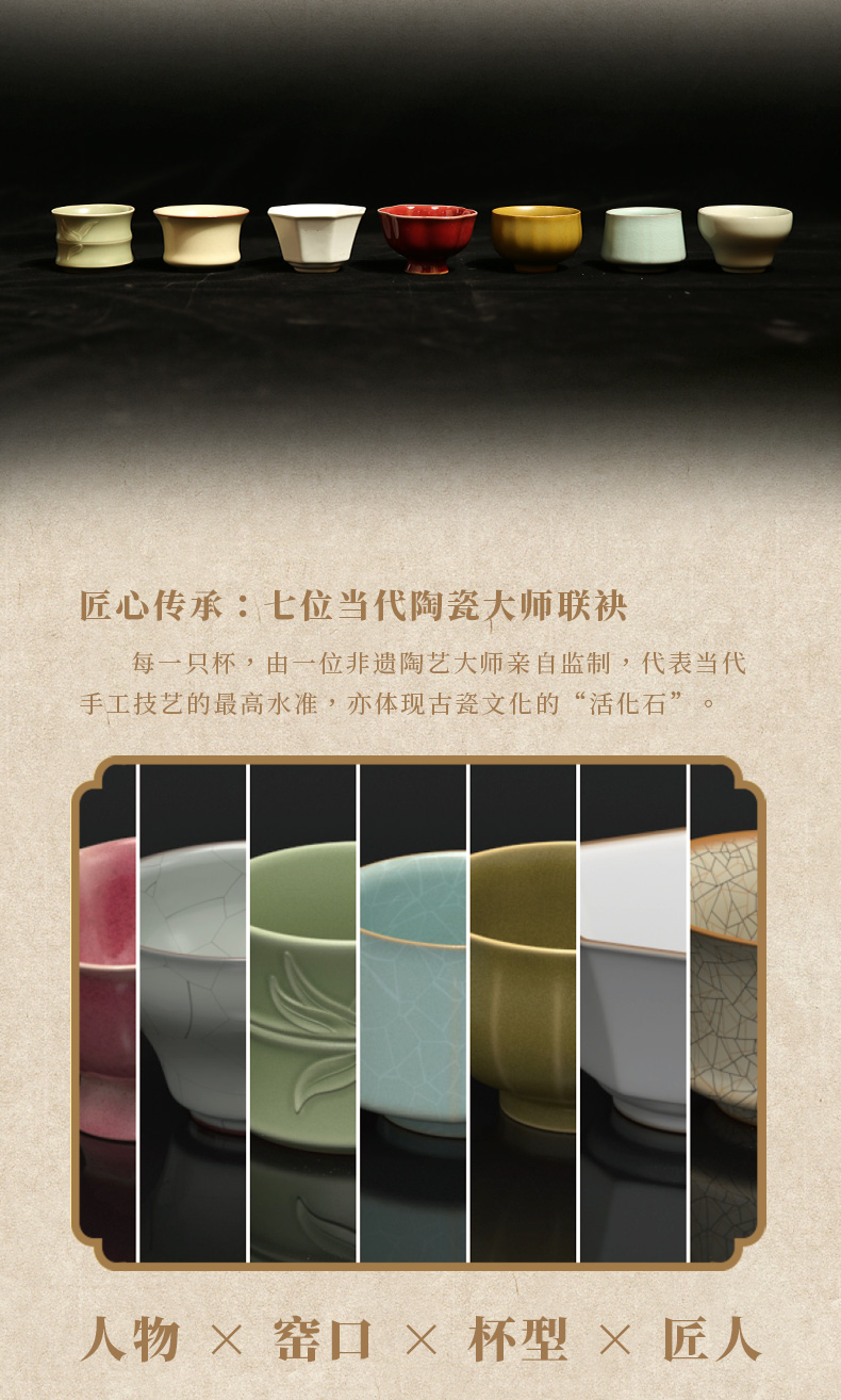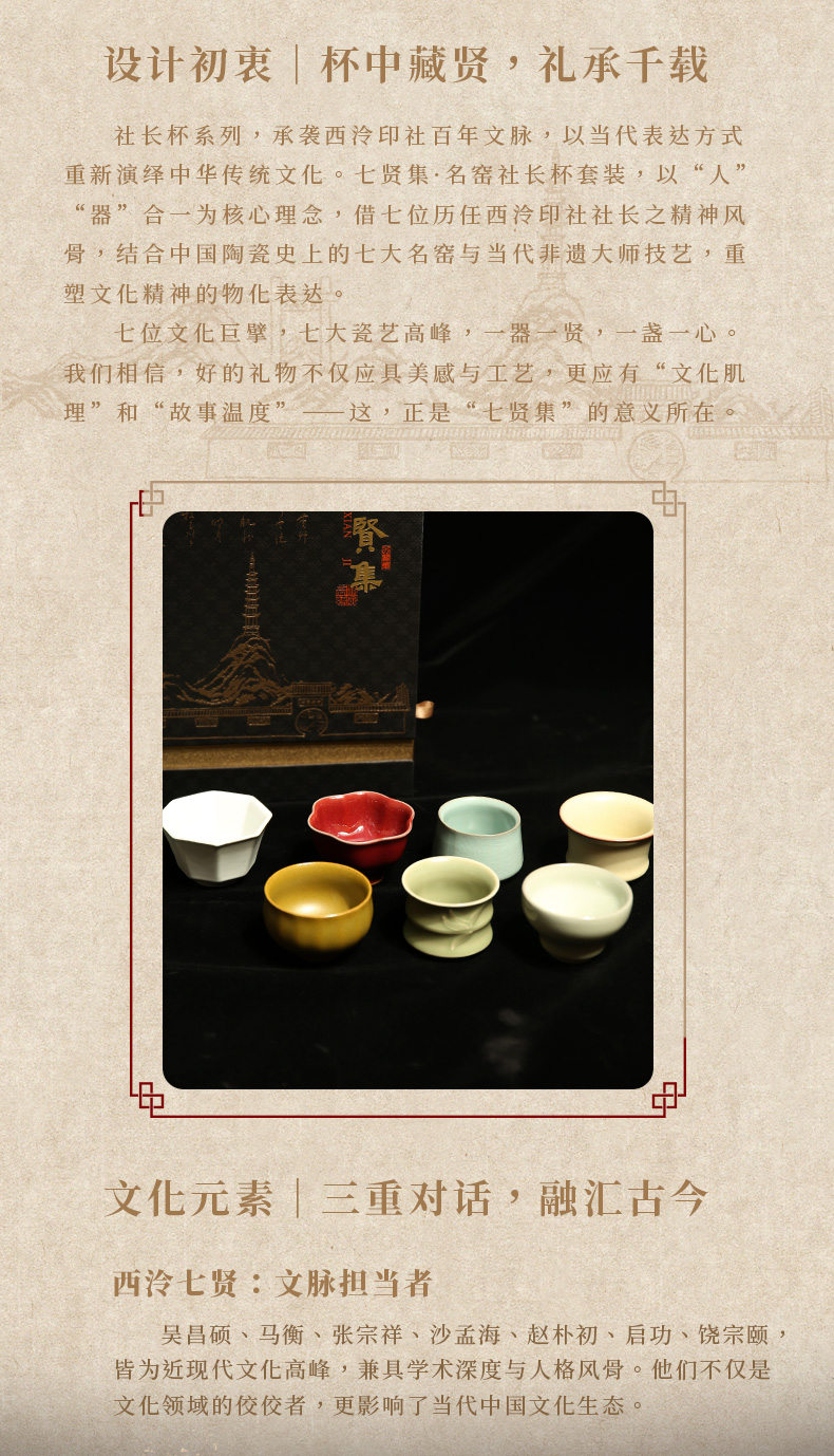 西泠印社 七贤集名窑社长茶杯套装