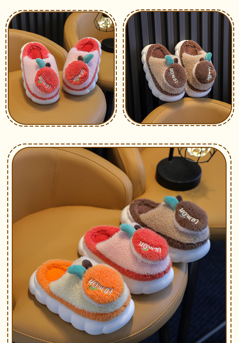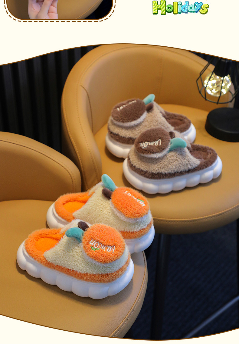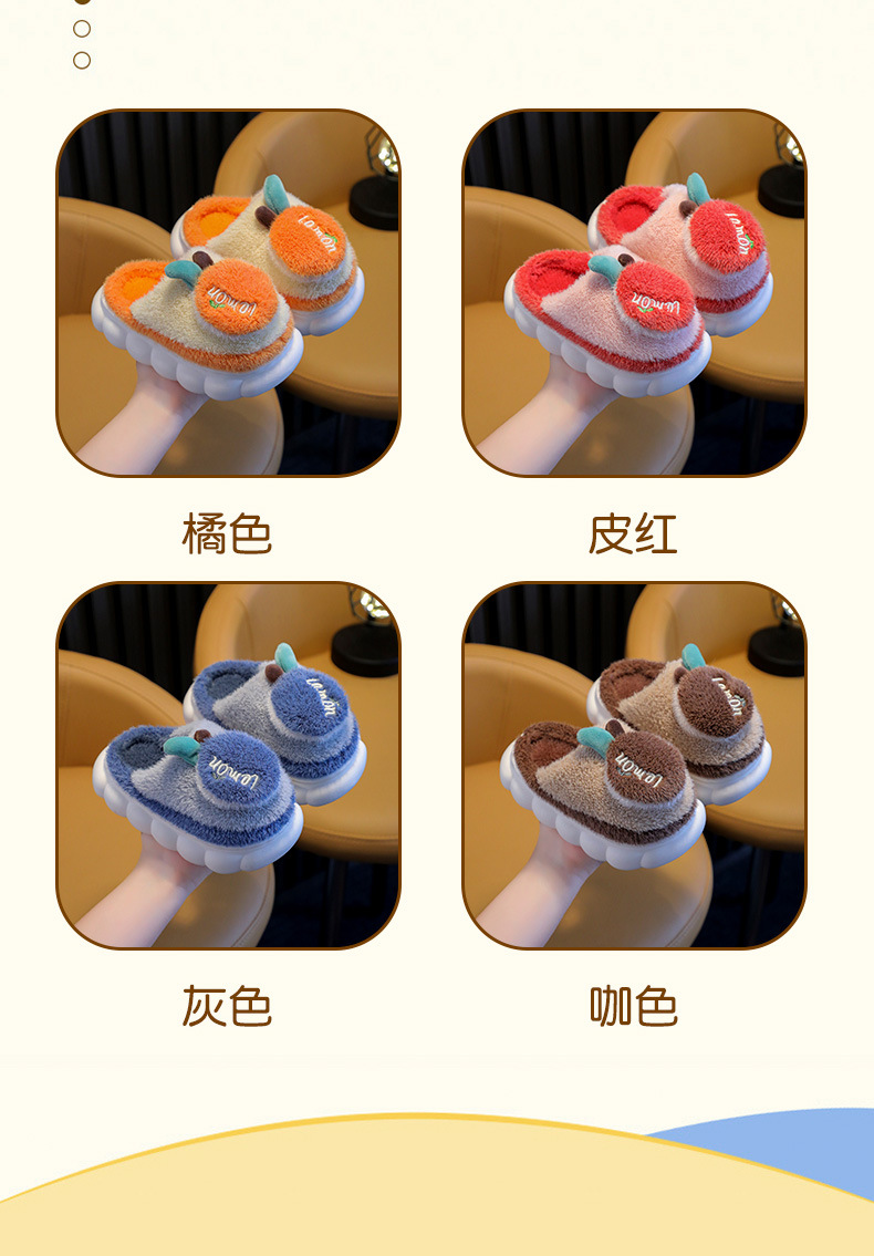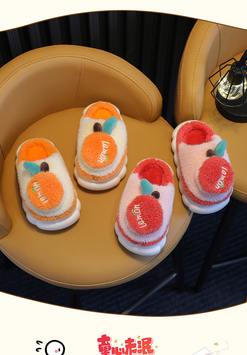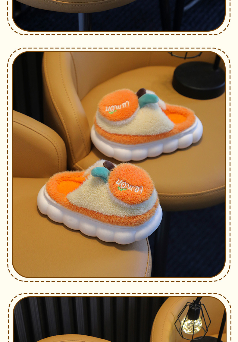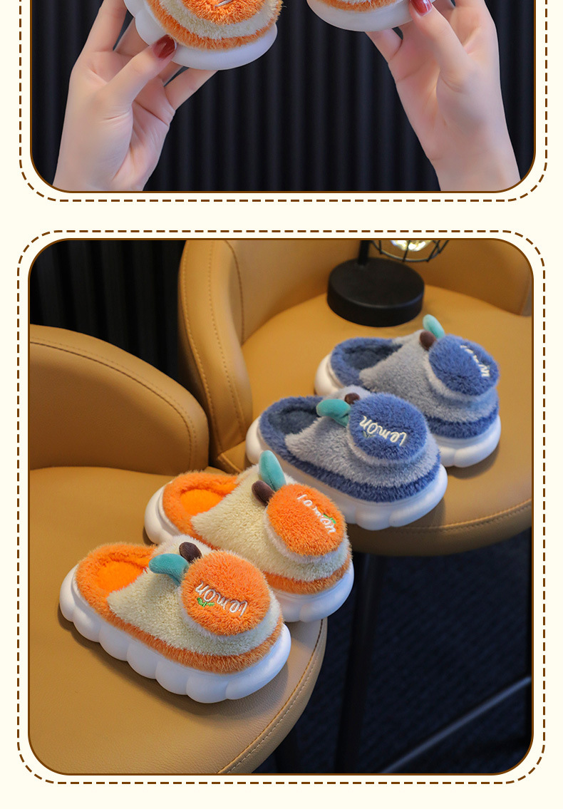 【软萌可爱风毛绒保暖棉拖鞋】儿童秋冬季男童女童橙子可爱防滑居家室内宝宝棉鞋