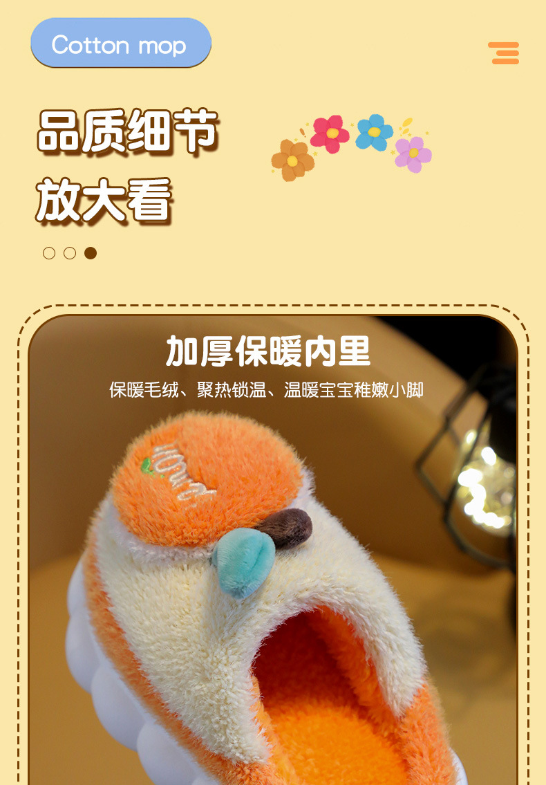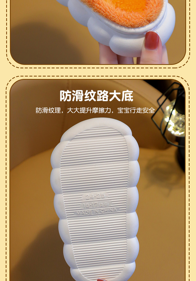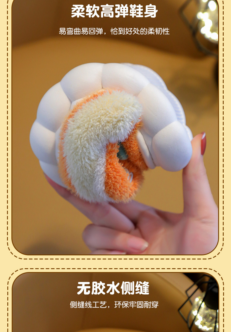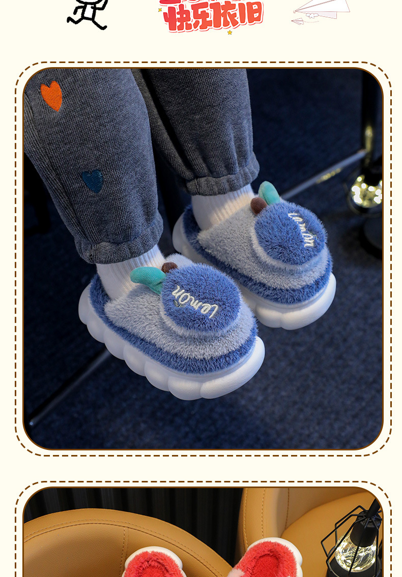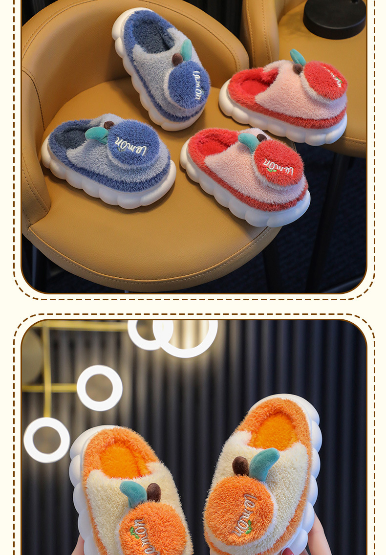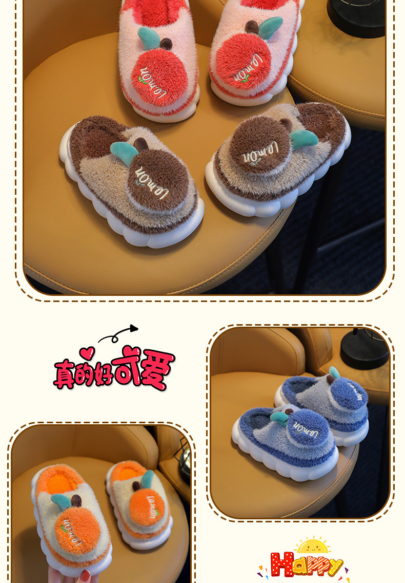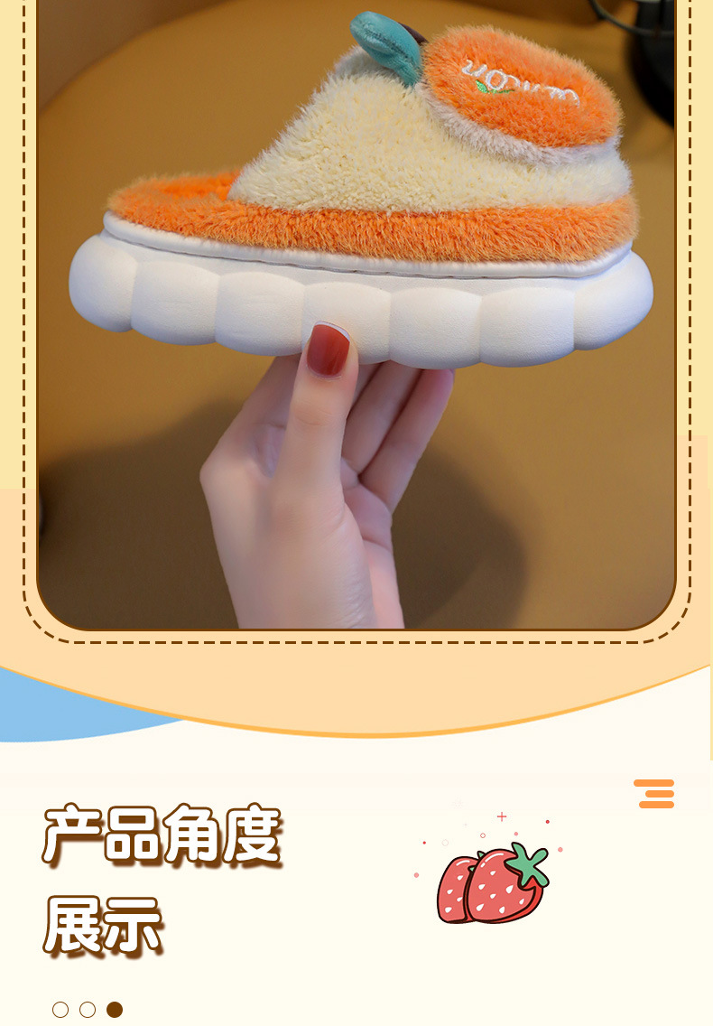 【软萌可爱风毛绒保暖棉拖鞋】儿童秋冬季男童女童橙子可爱防滑居家室内宝宝棉鞋