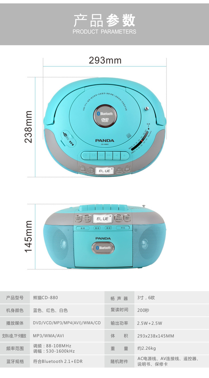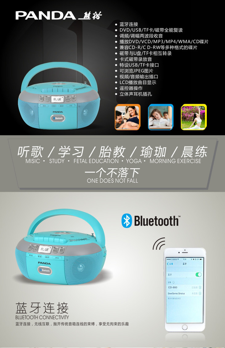 熊猫 CD-850 复读磁带录音CD机DVD光盘收音U盘SD卡播放机顺丰包邮遥控胎教学习英语孩子儿童影碟机收录机插卡