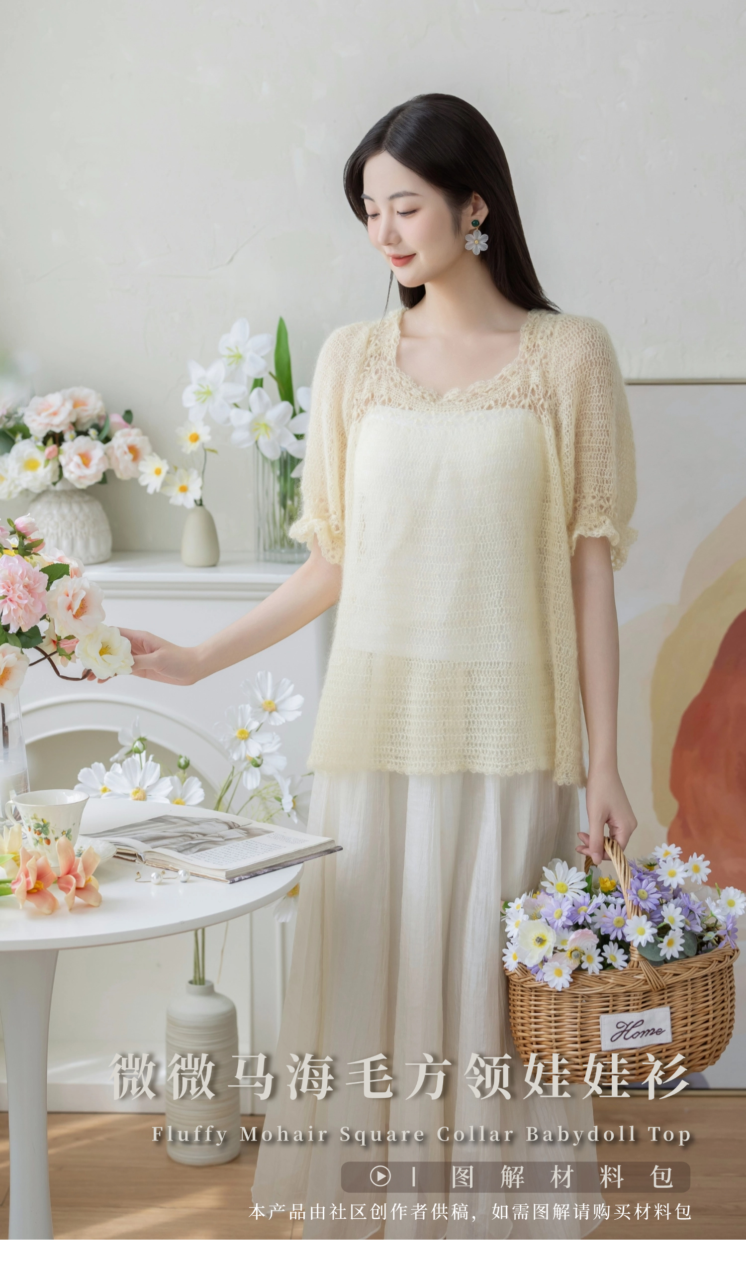苏苏姐家微微马海毛方领娃娃衫手工DIY钩针毛线团马海毛材料包