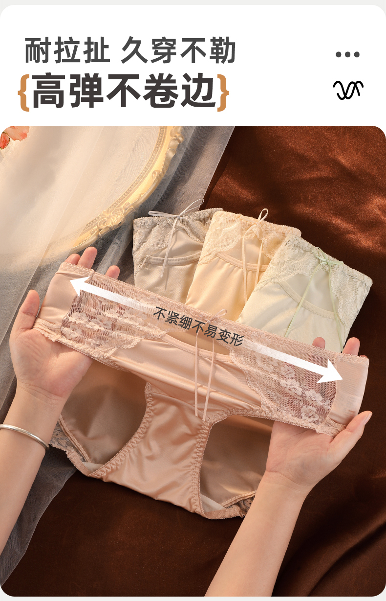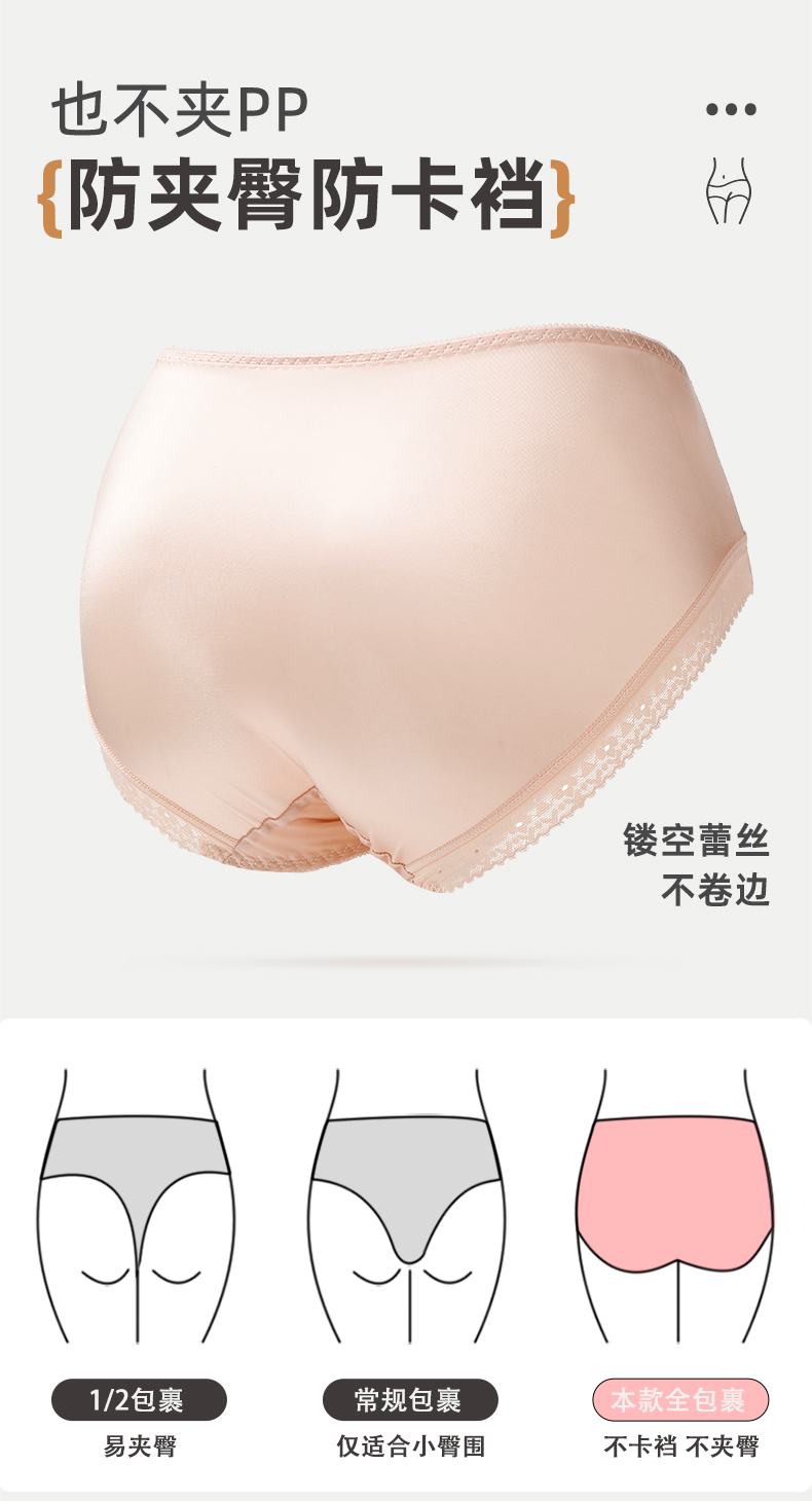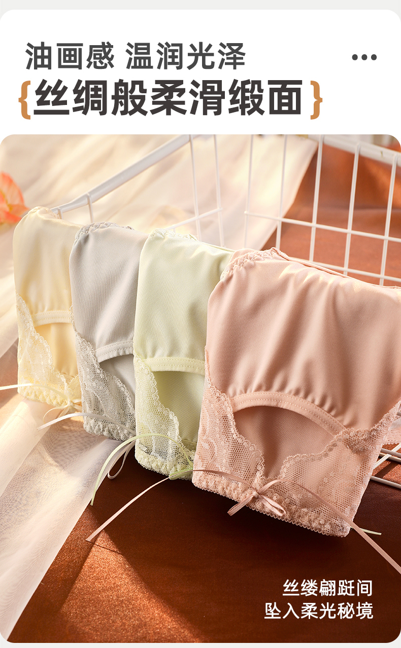 雅黛丽内裤女性感蕾丝三角裤缎面纯棉裆高弹大包臀防卡裆短裤2025