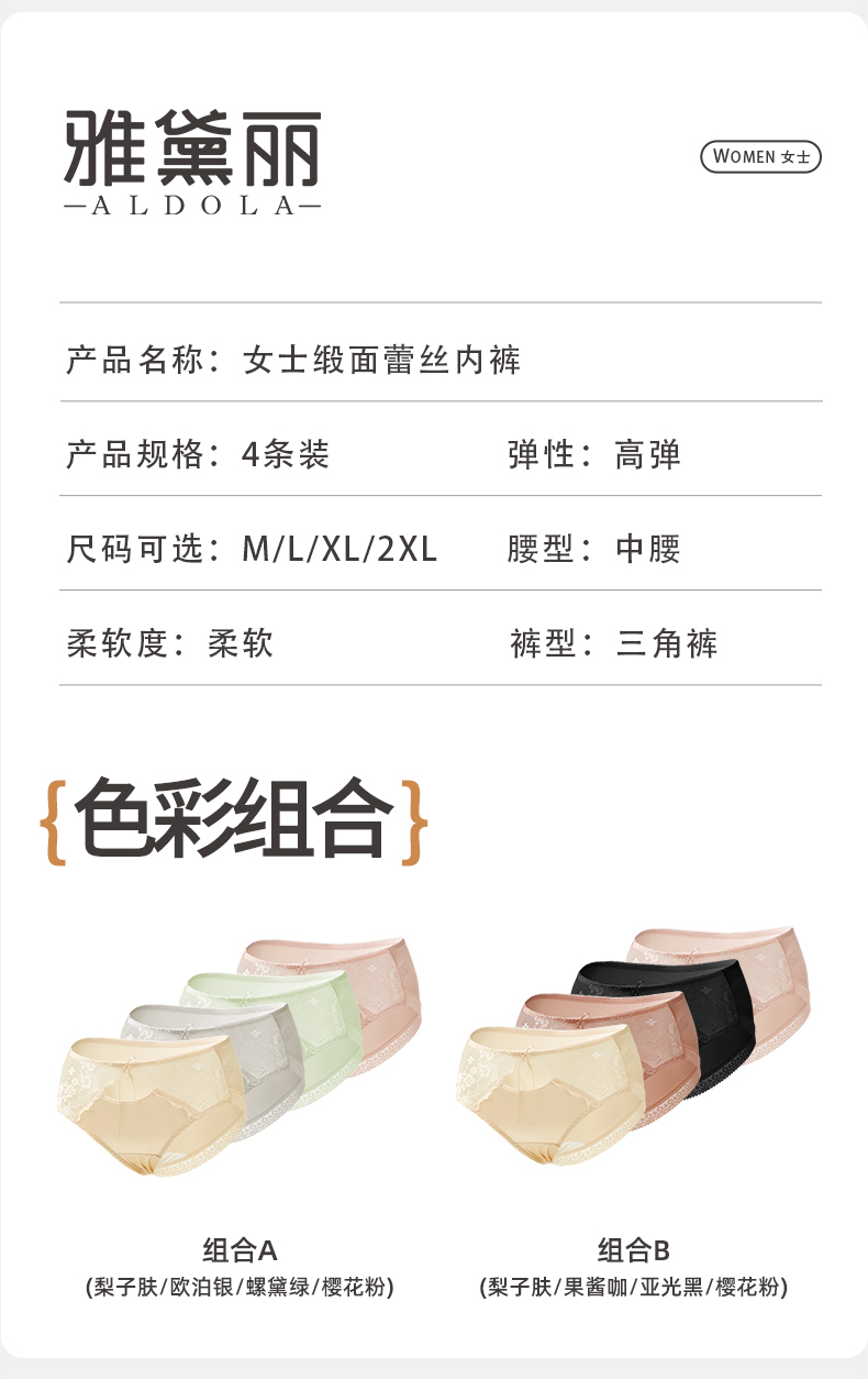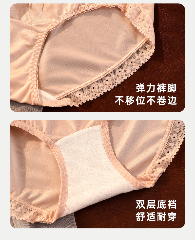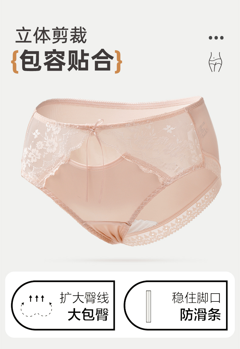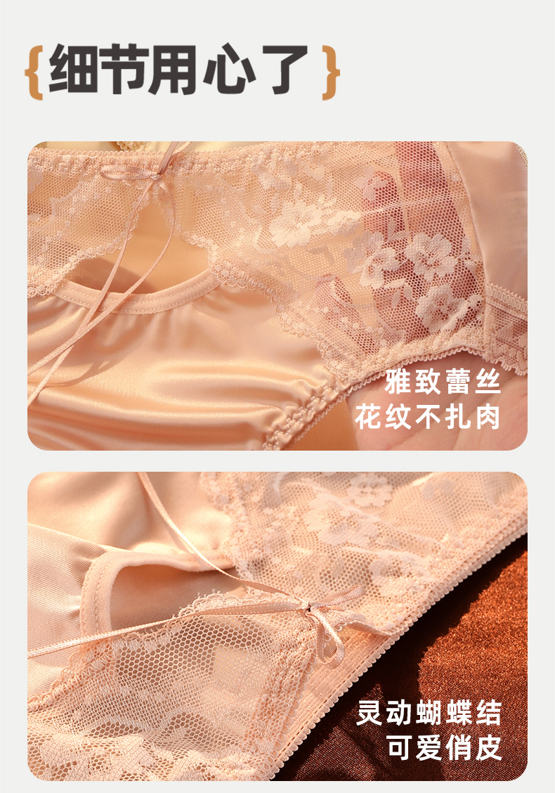 雅黛丽内裤女性感蕾丝三角裤缎面纯棉裆高弹大包臀防卡裆短裤2025