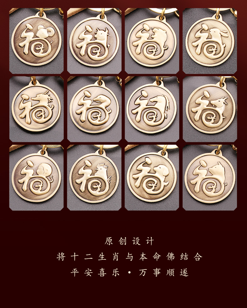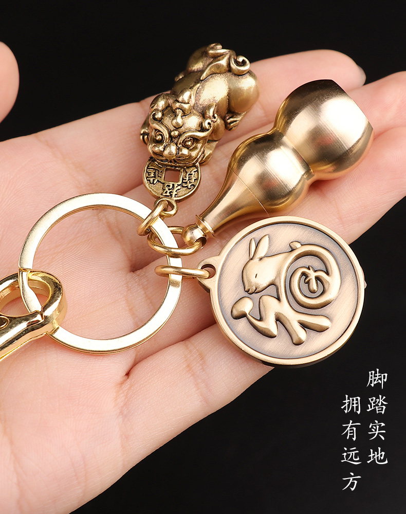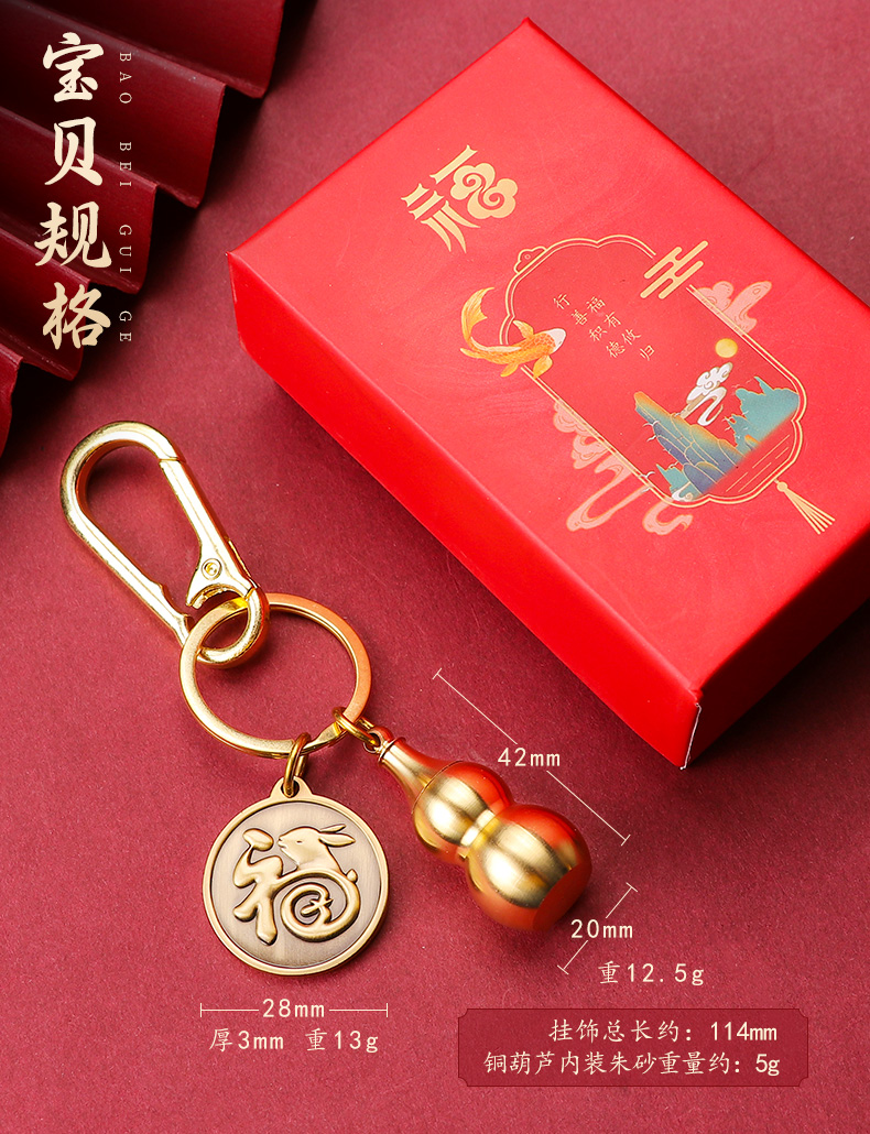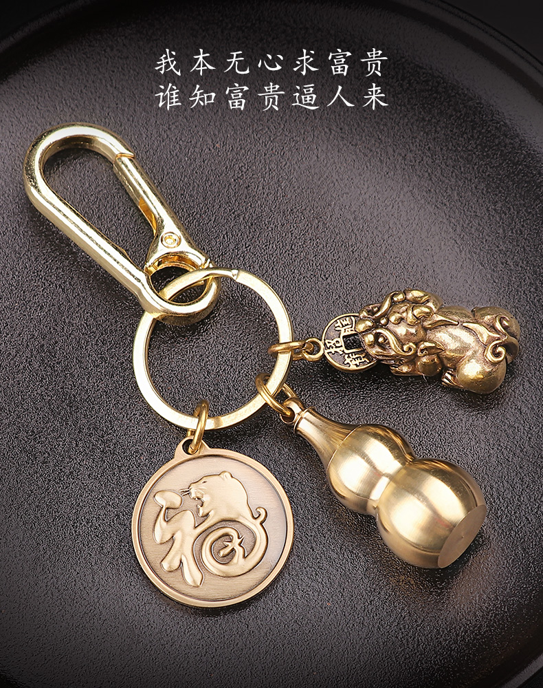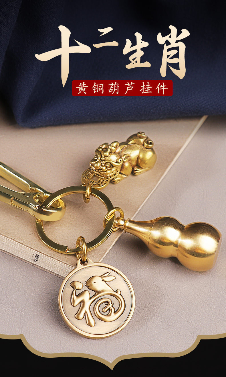 十二生肖铜葫芦装朱砂貔貅钥匙扣