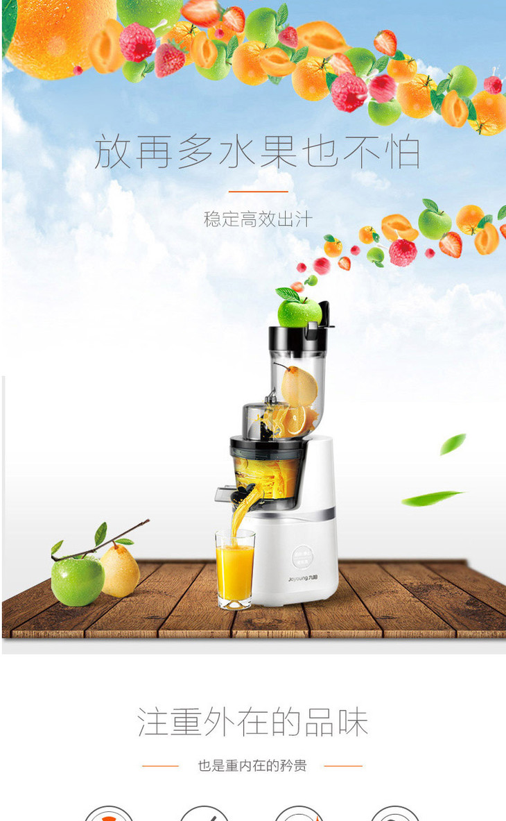 大口径,慢速揉取,低速研磨有效降低氧化,智能语音导航,立式螺旋挤压,智能多功能,多汁不氧化,原汁醇香~
