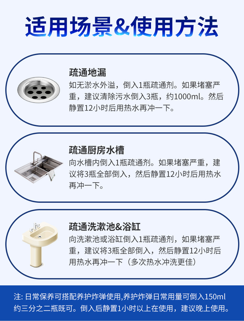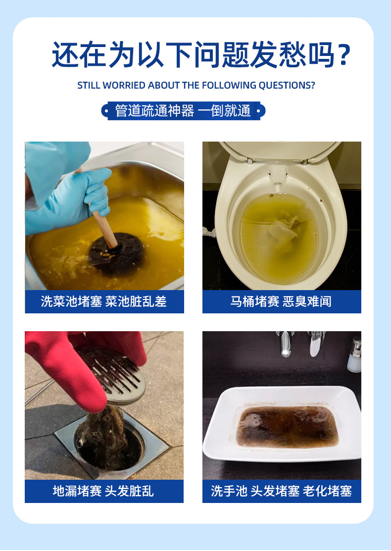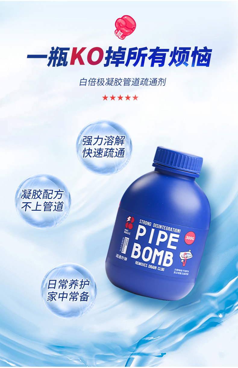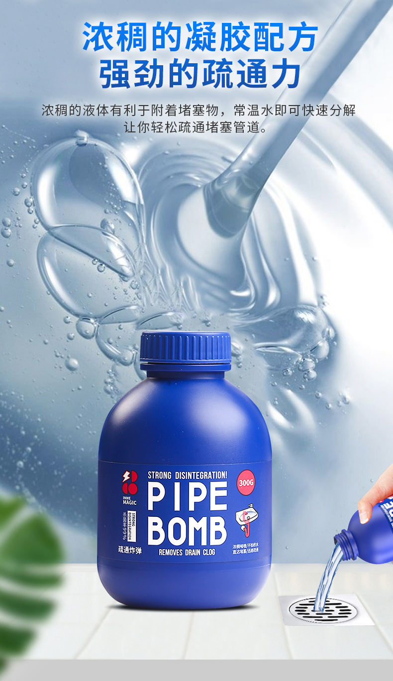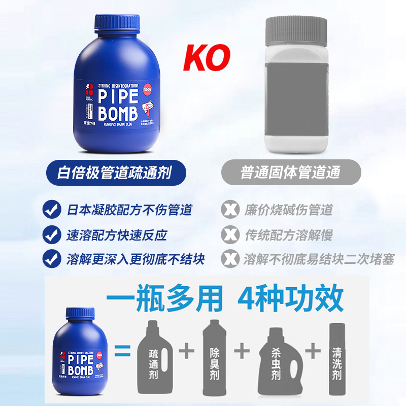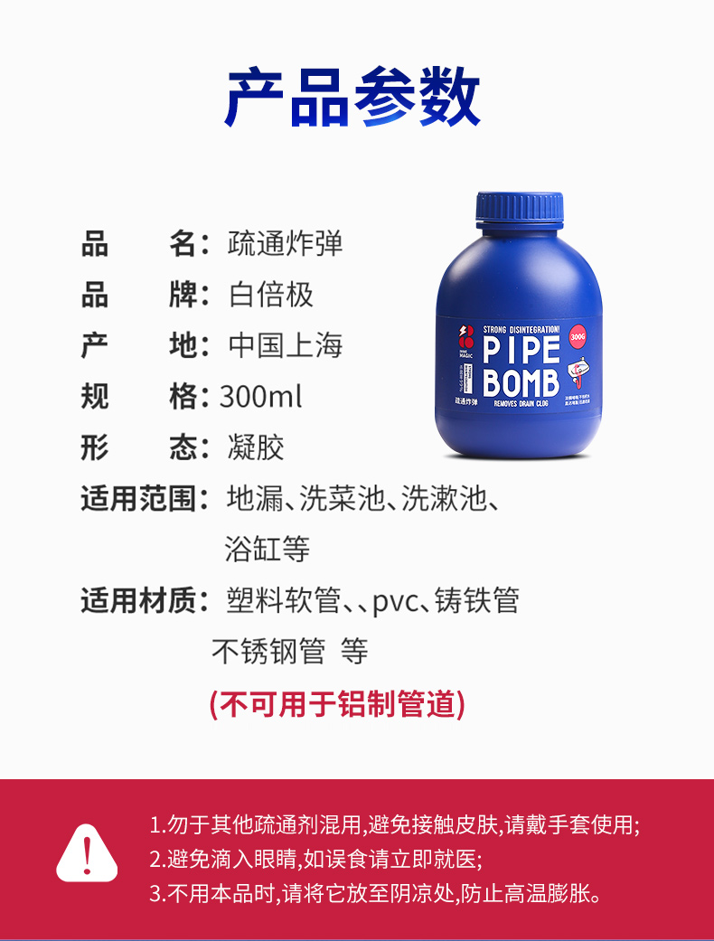 【一瓶多用 白倍极管道疏通剂】日本凝胶配方不伤管道快速反应深入溶解不结块 马桶地漏洗脸洗菜池无压力疏通除臭去味养护管道无异味