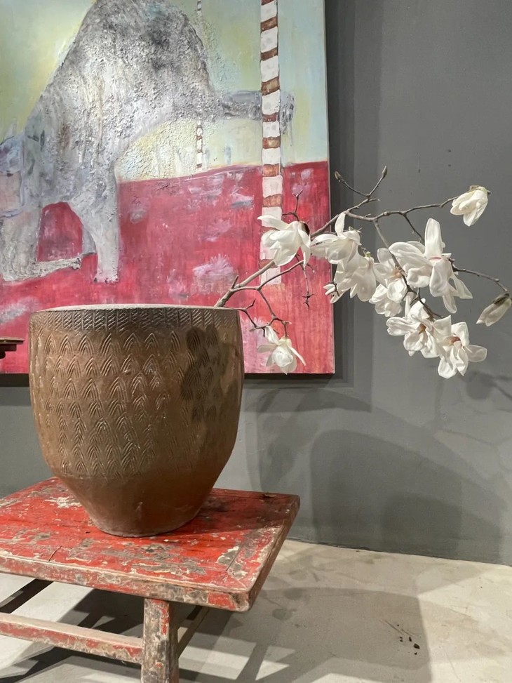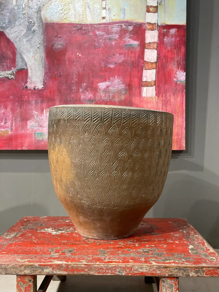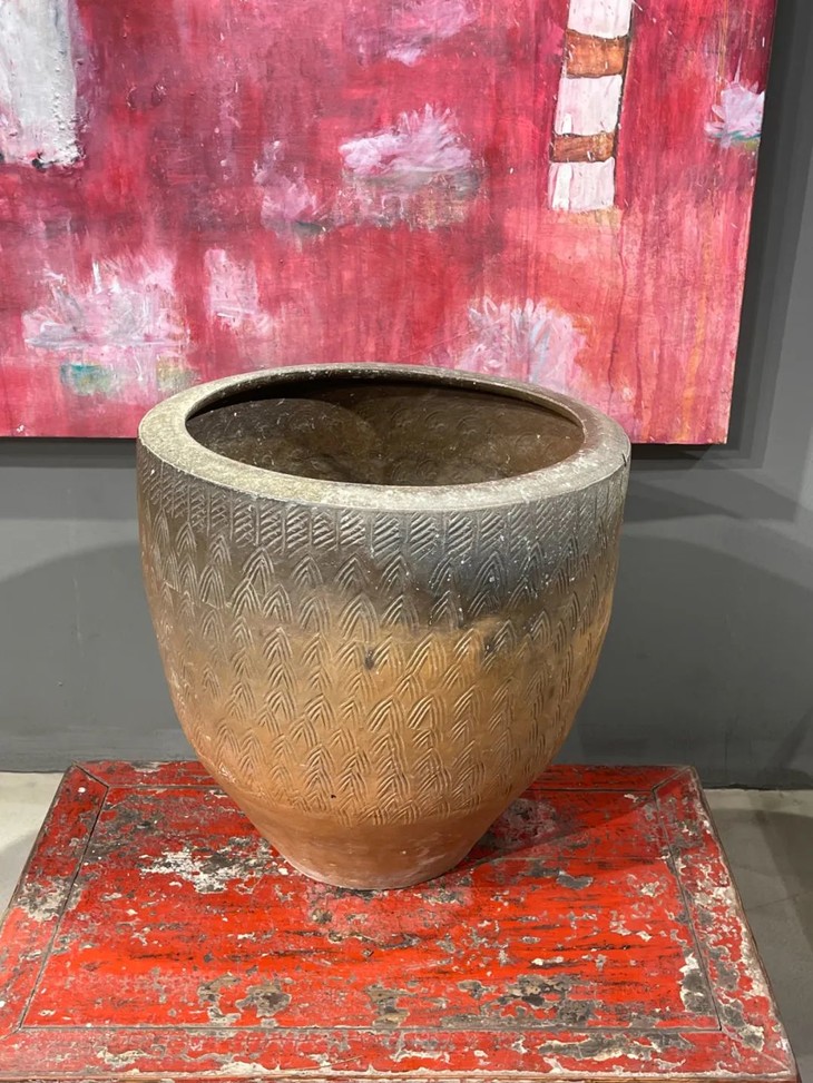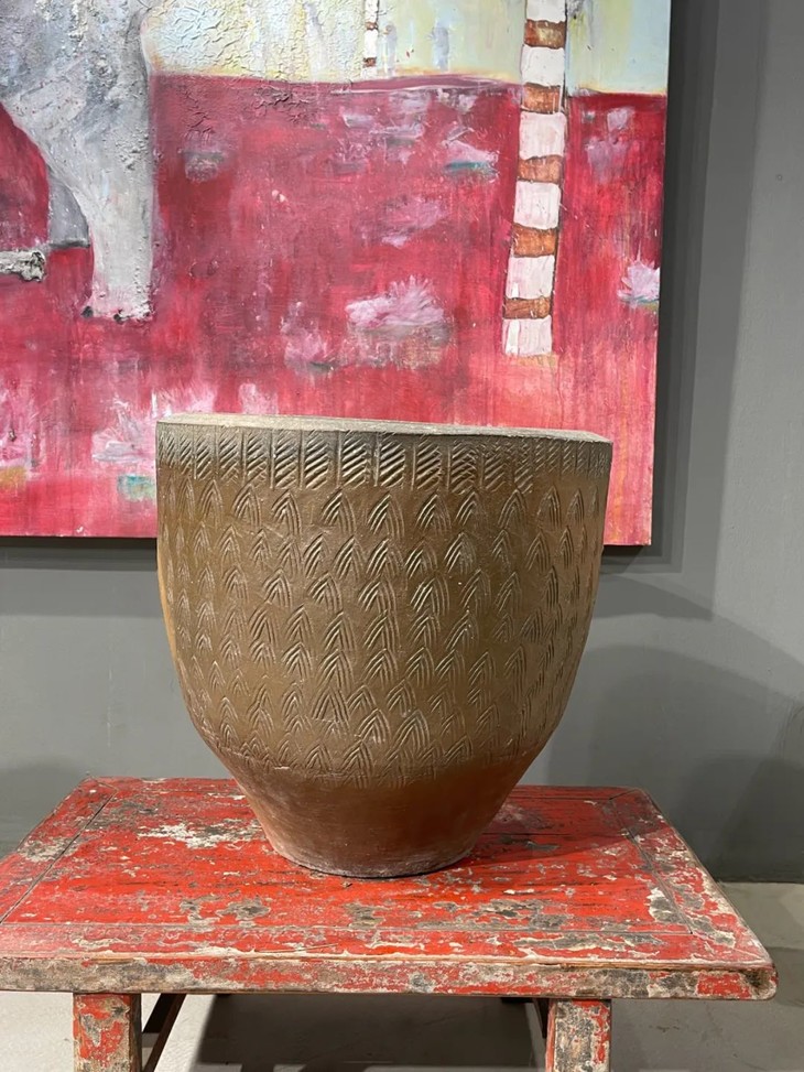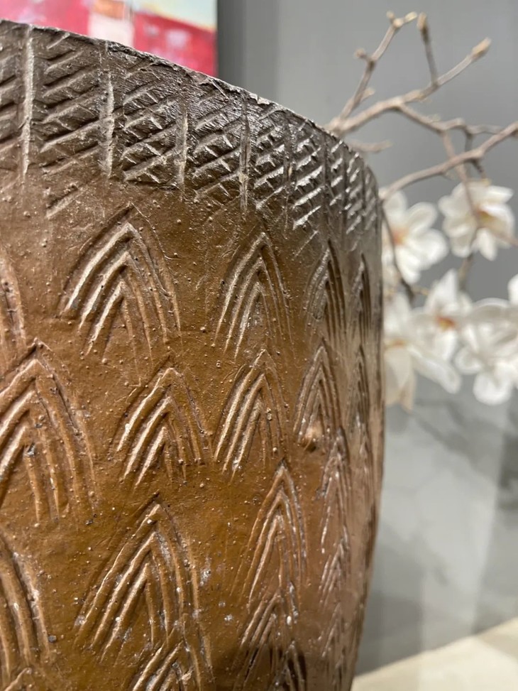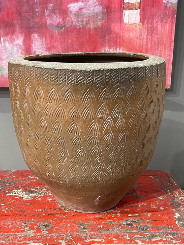 褐釉刻矛头纹罄型大缸