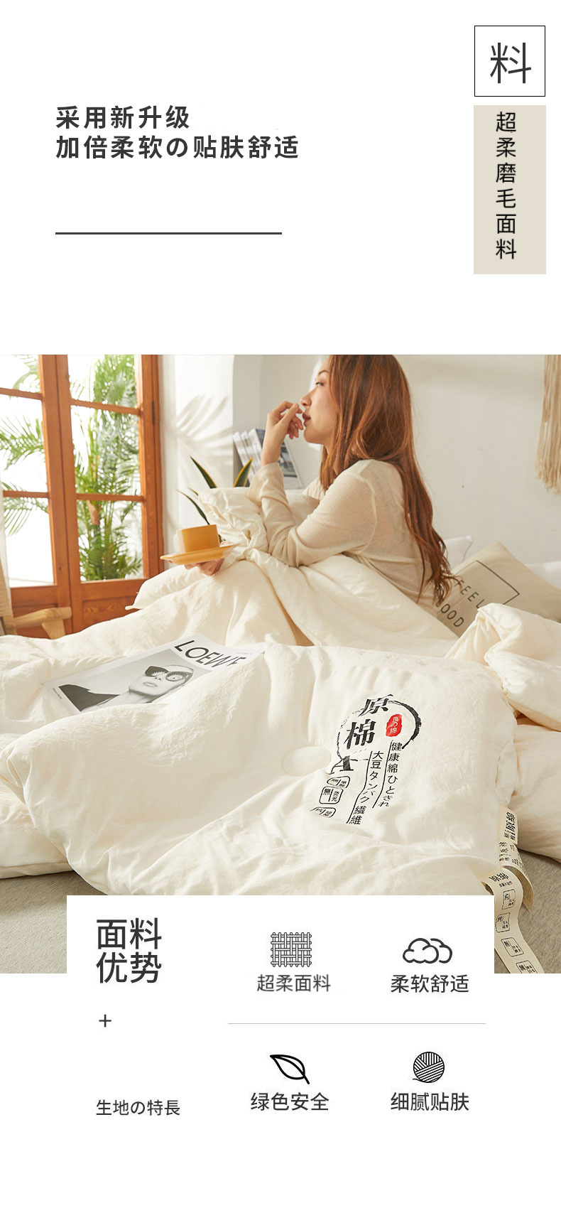 A类原棉大豆纤维被子厚款被芯