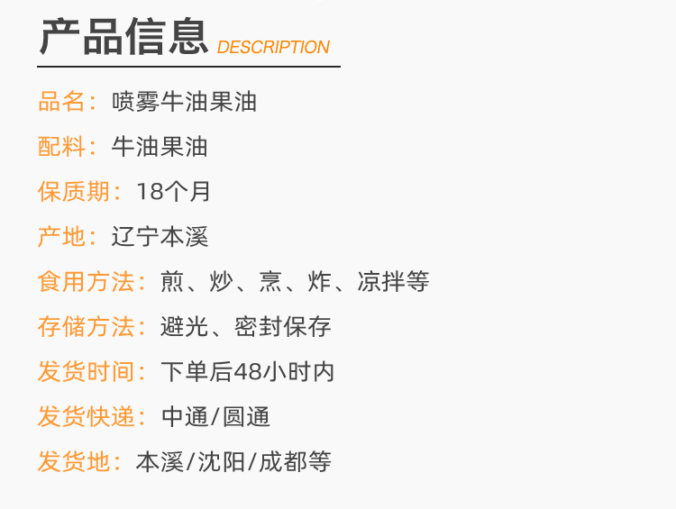 晟麦 牛油果油喷雾装 食用植物油 220ml/瓶