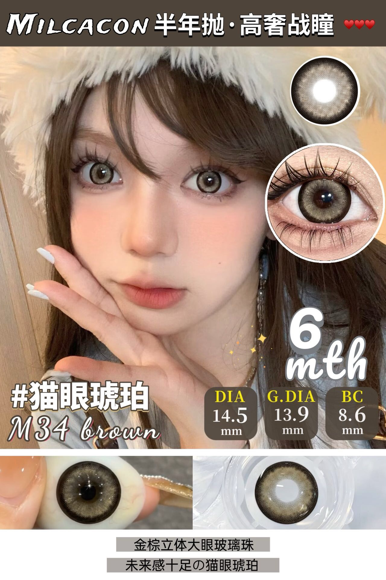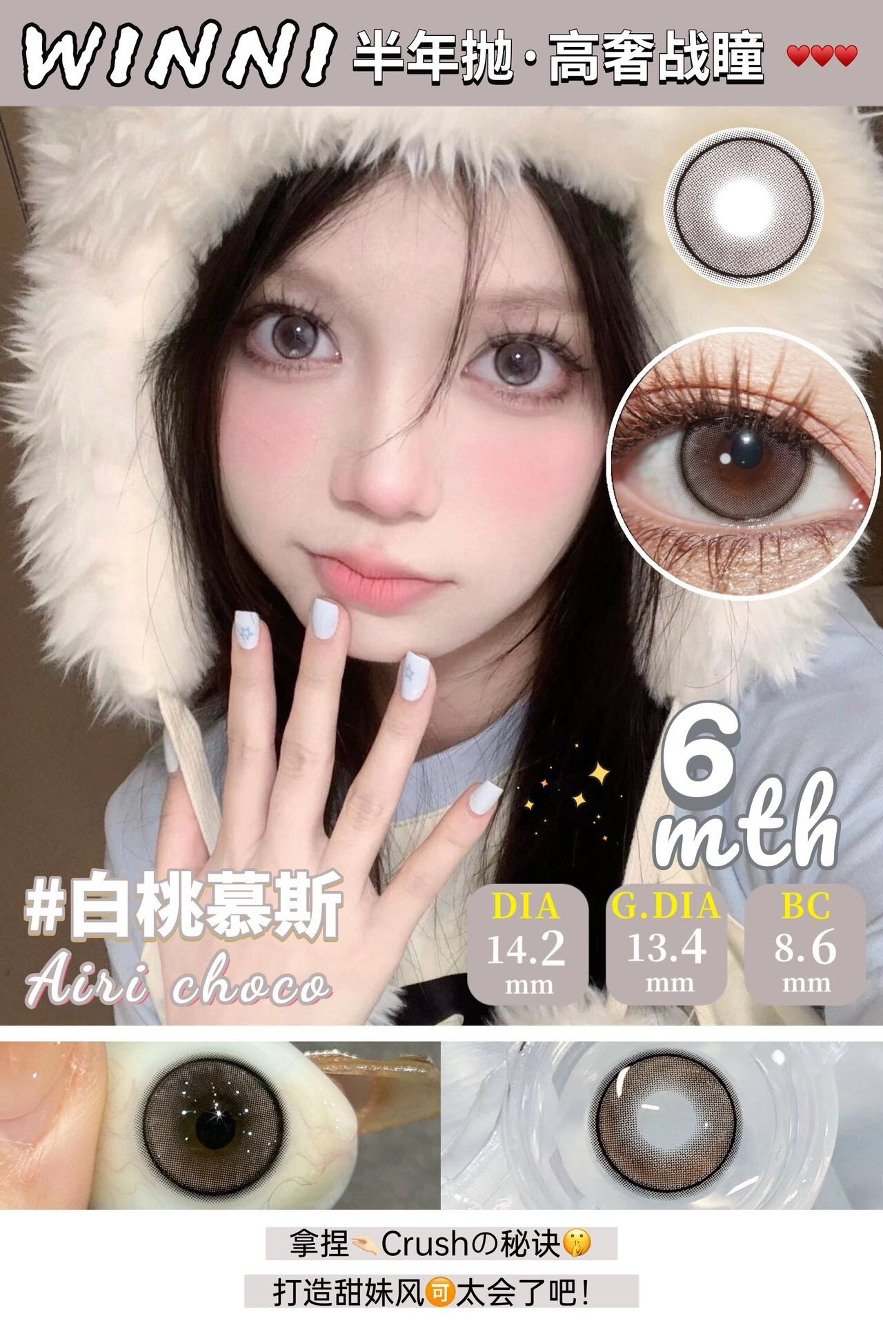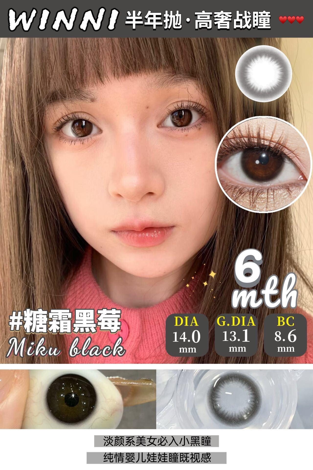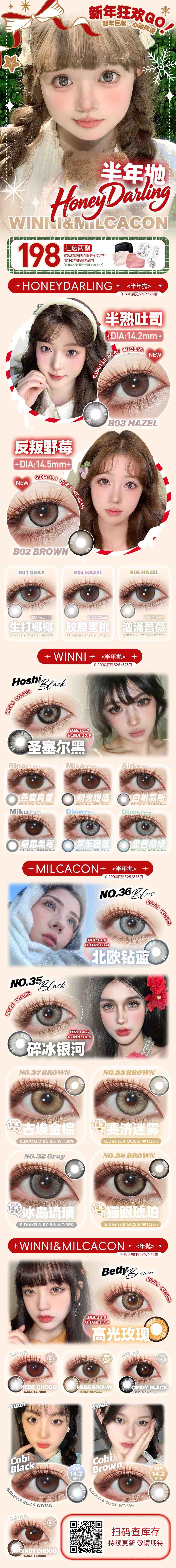 Winni+MilcaCon半年抛·全系列 新品 粉雾甜酒/白桃慕斯/圣塞尔黑/梦乐园蓝/里普湖绿/碎冰银河/北欧钻蓝/古埃金棕/冰岛琉璃/猫眼琥珀