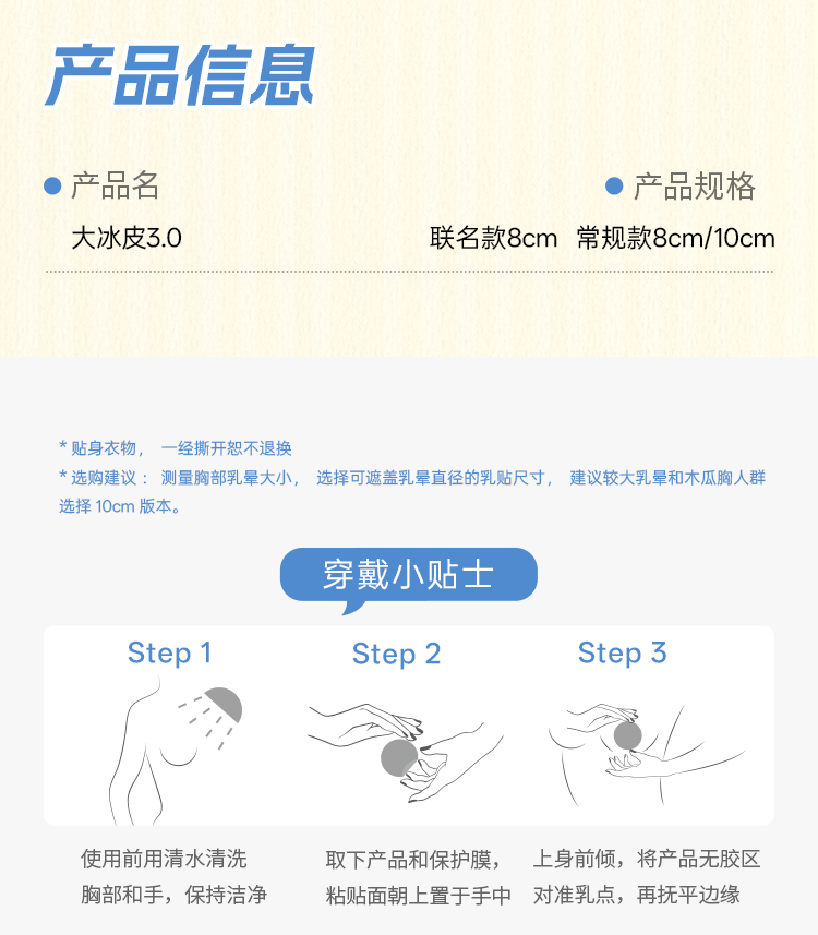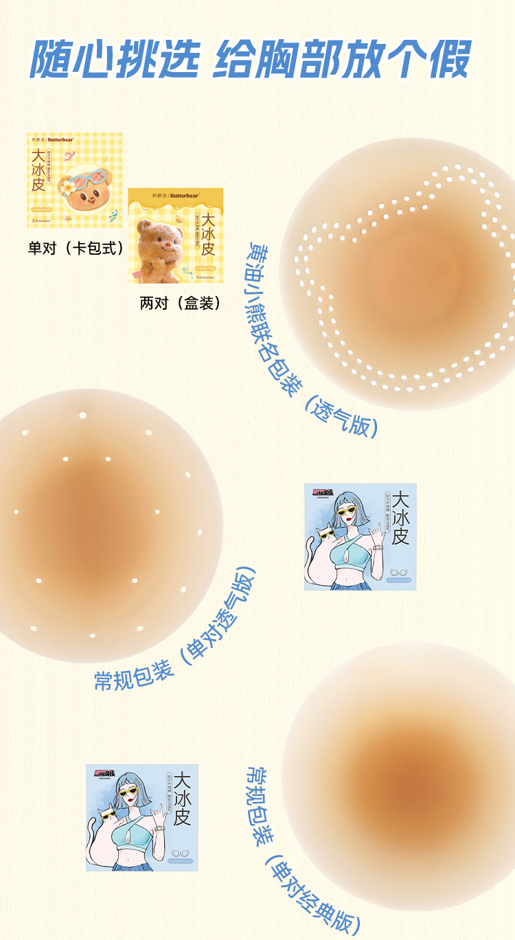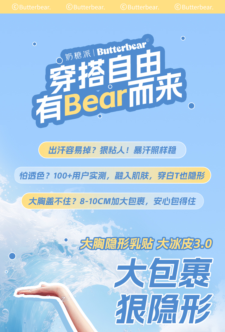 【黄油小熊联名】奶糖派大冰皮3.0胸贴防凸大胸防水薄透气隐形乳贴