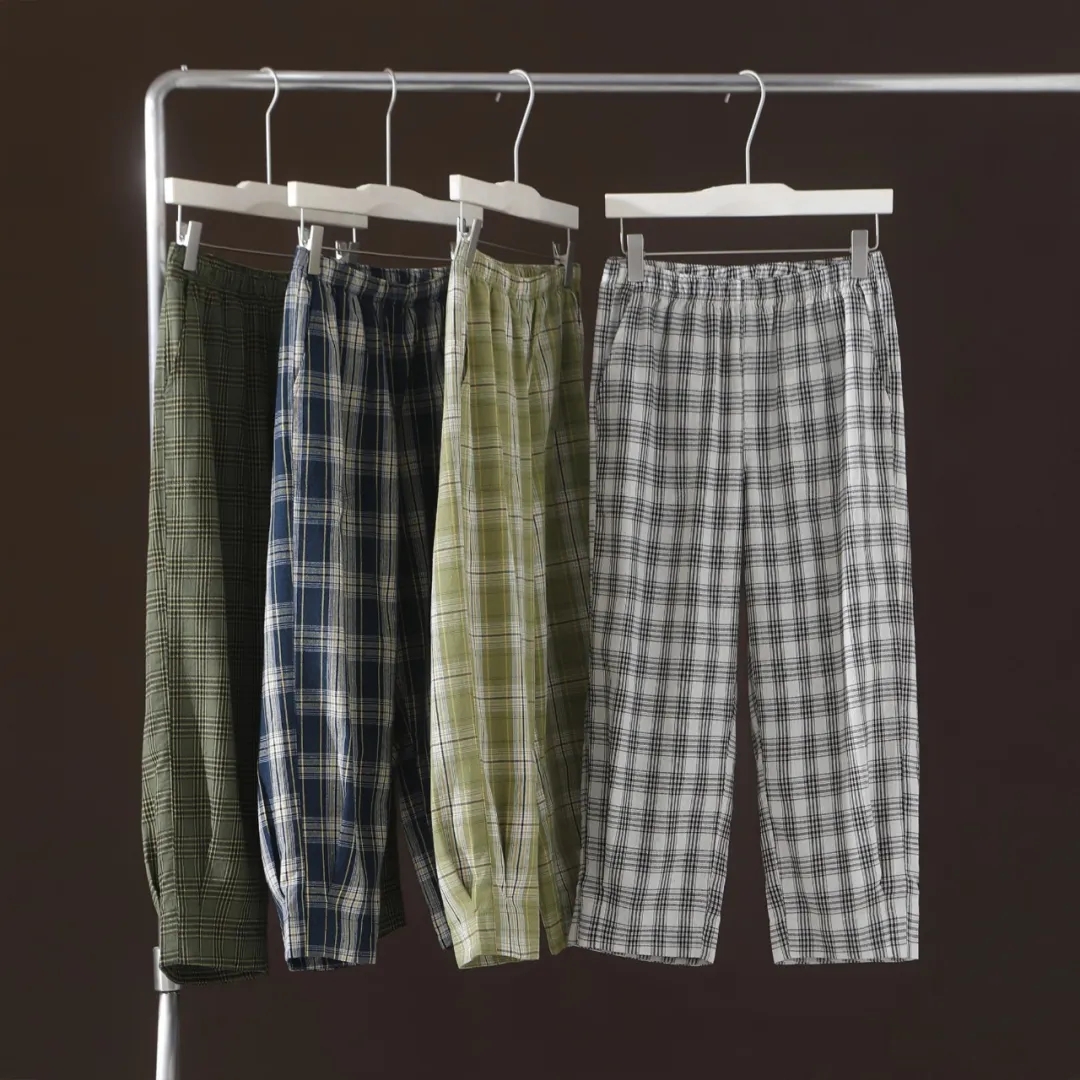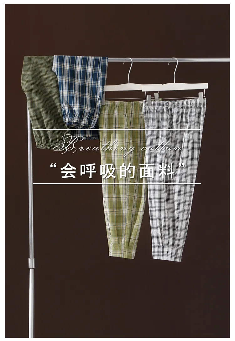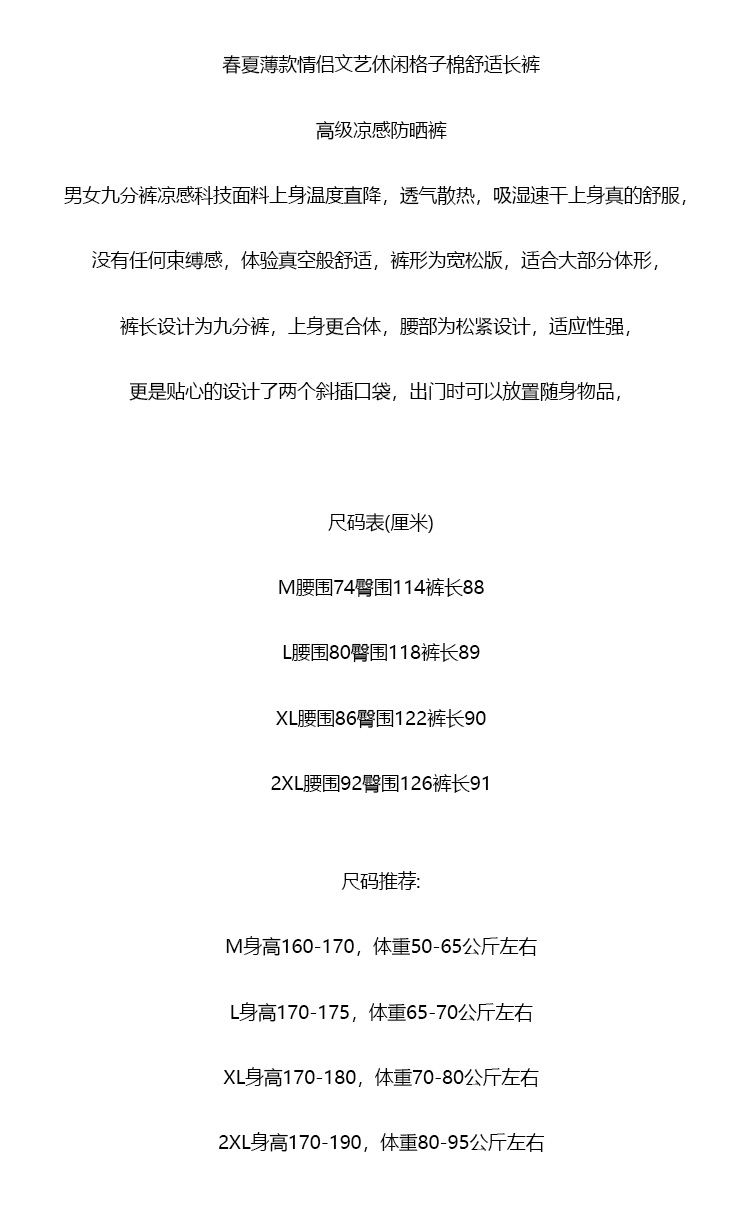 【yz-2515】春夏情侣薄款休闲格纹凉感防晒长裤!!