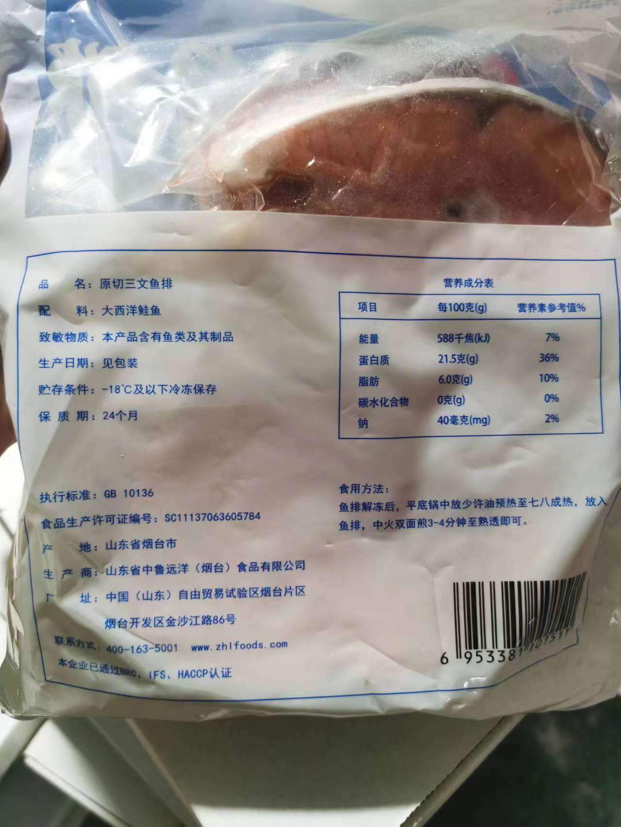 2、为符合行标要求,配料表含盐,但实际并没有加盐,是原切鳕鱼。