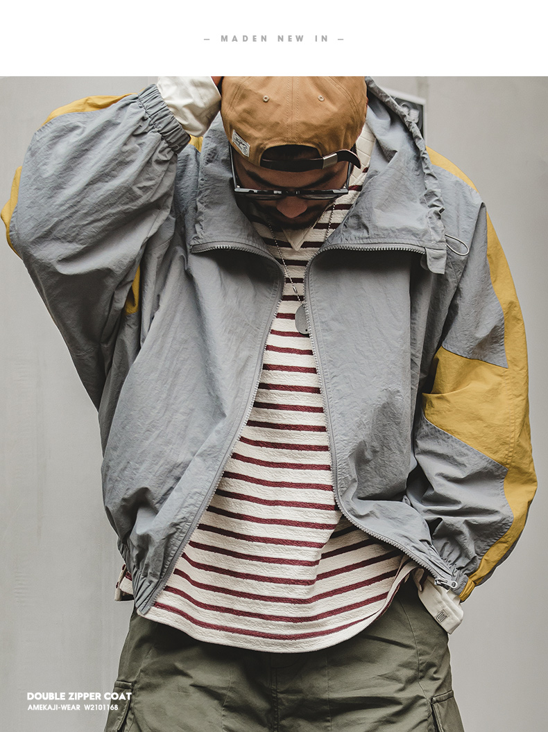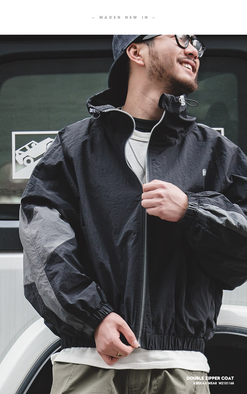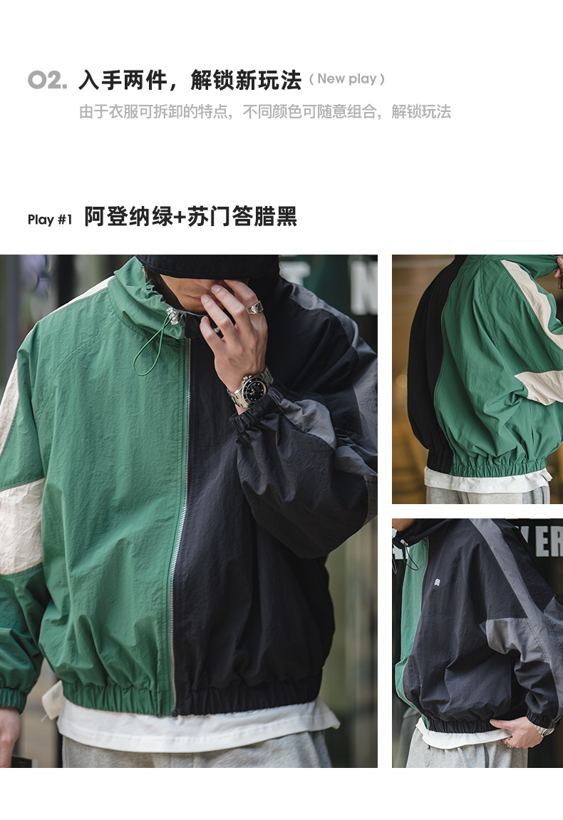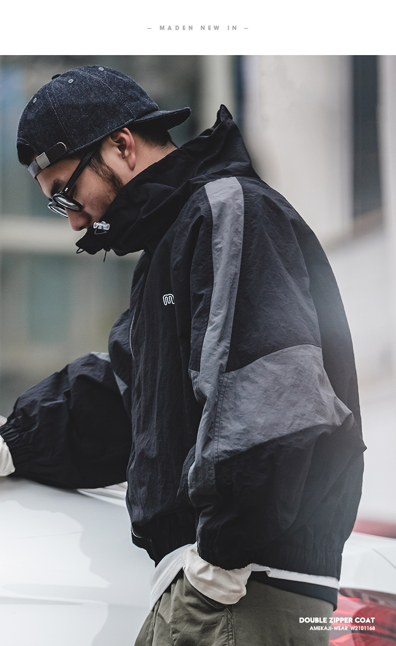 马登工装美式复古宽松可拆卸双拉链夹克春季短款拼色字母外套男潮