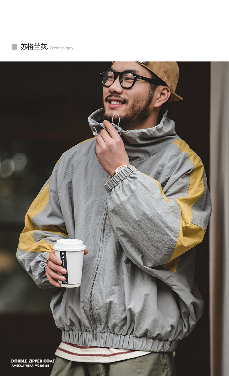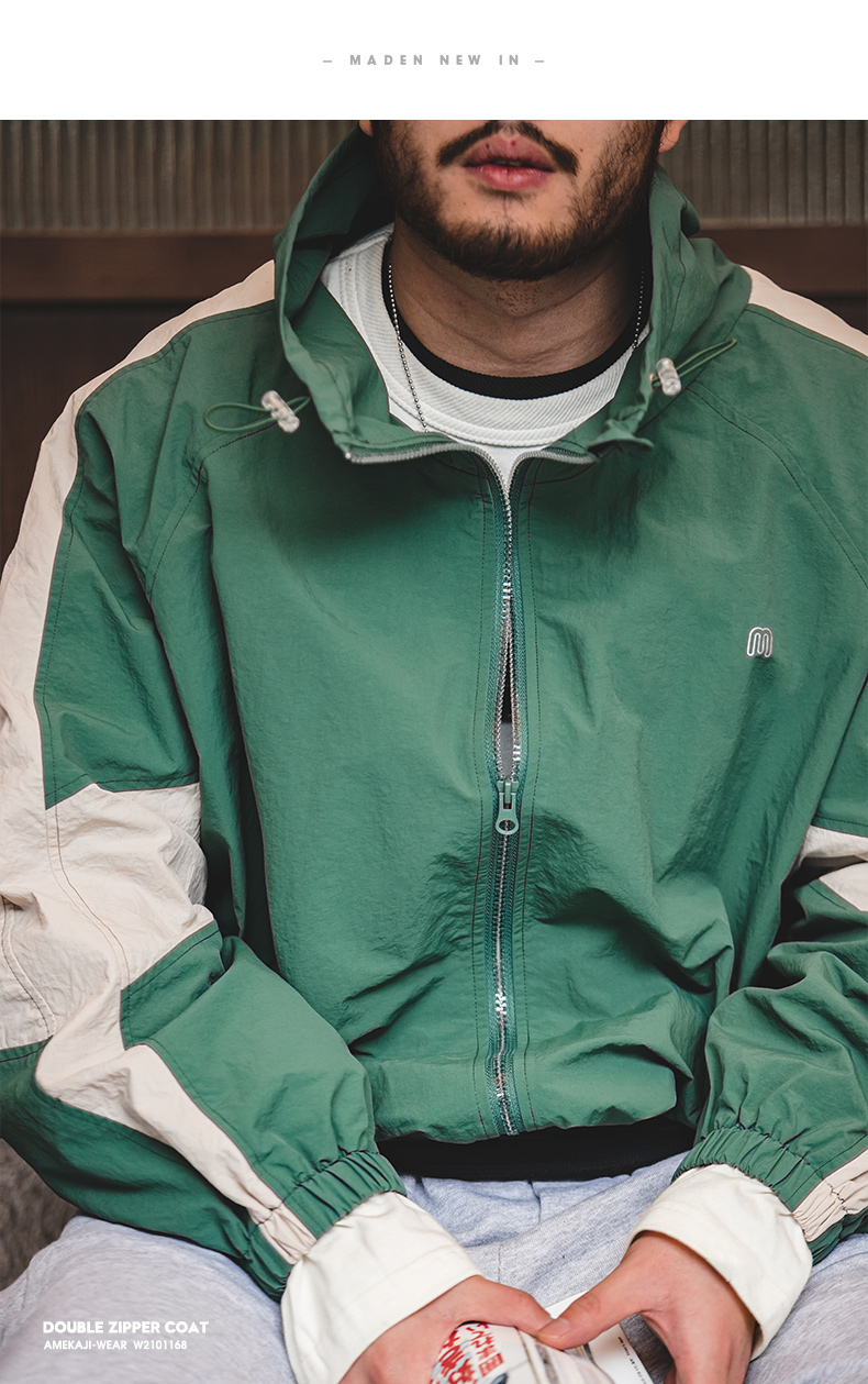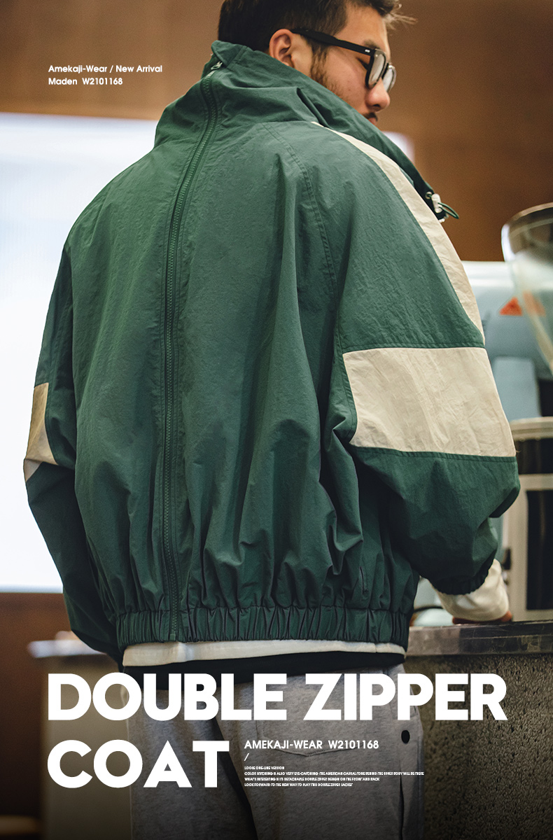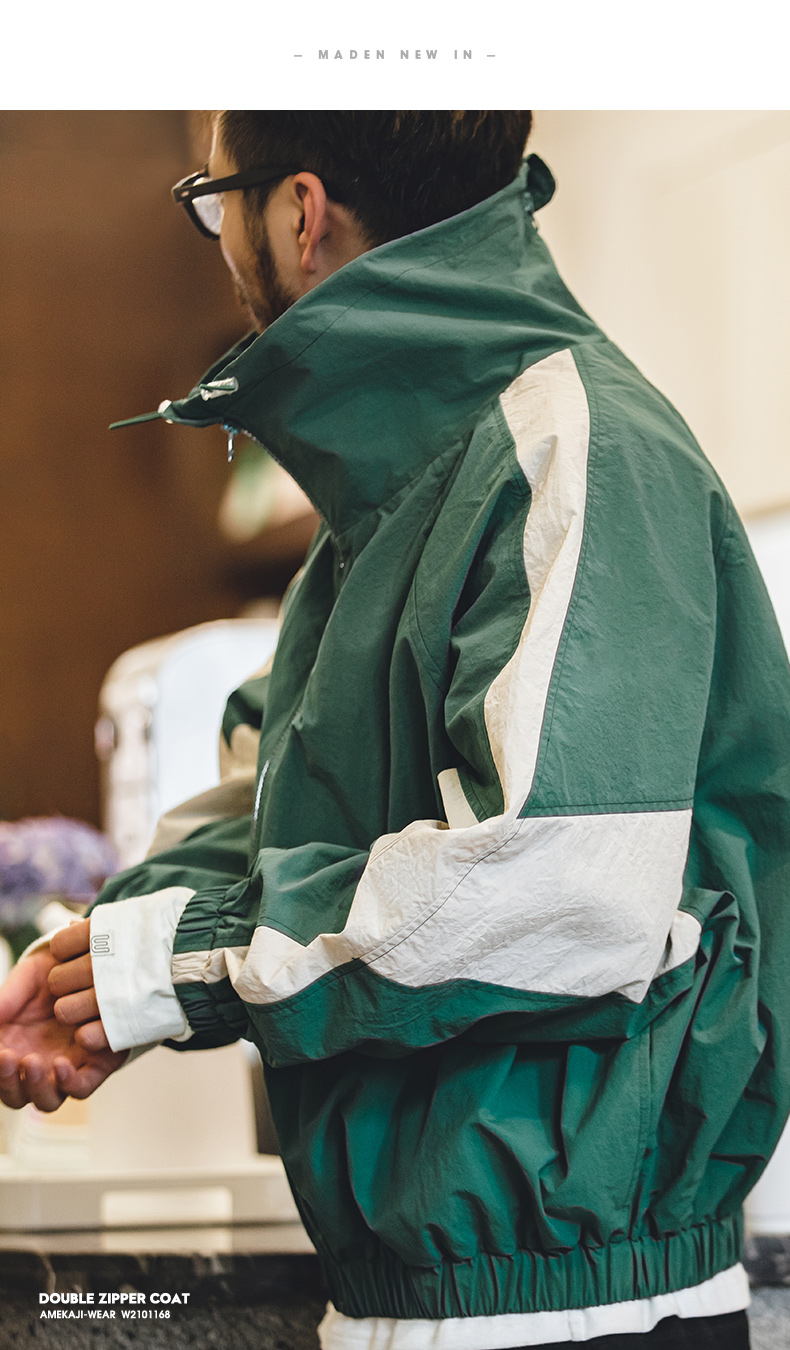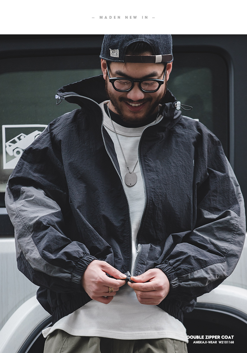 马登工装美式复古宽松可拆卸双拉链夹克春季短款拼色字母外套男潮