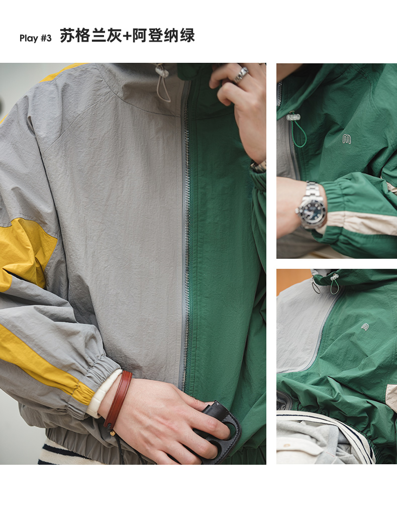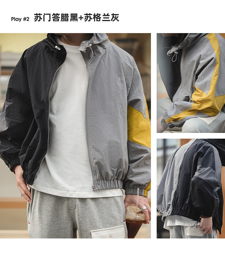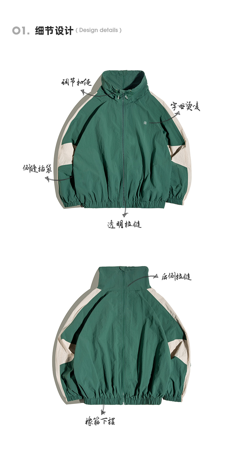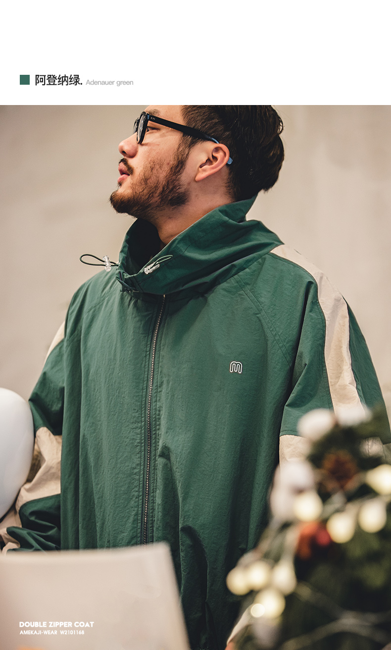马登工装美式复古宽松可拆卸双拉链夹克春季短款拼色字母外套男潮