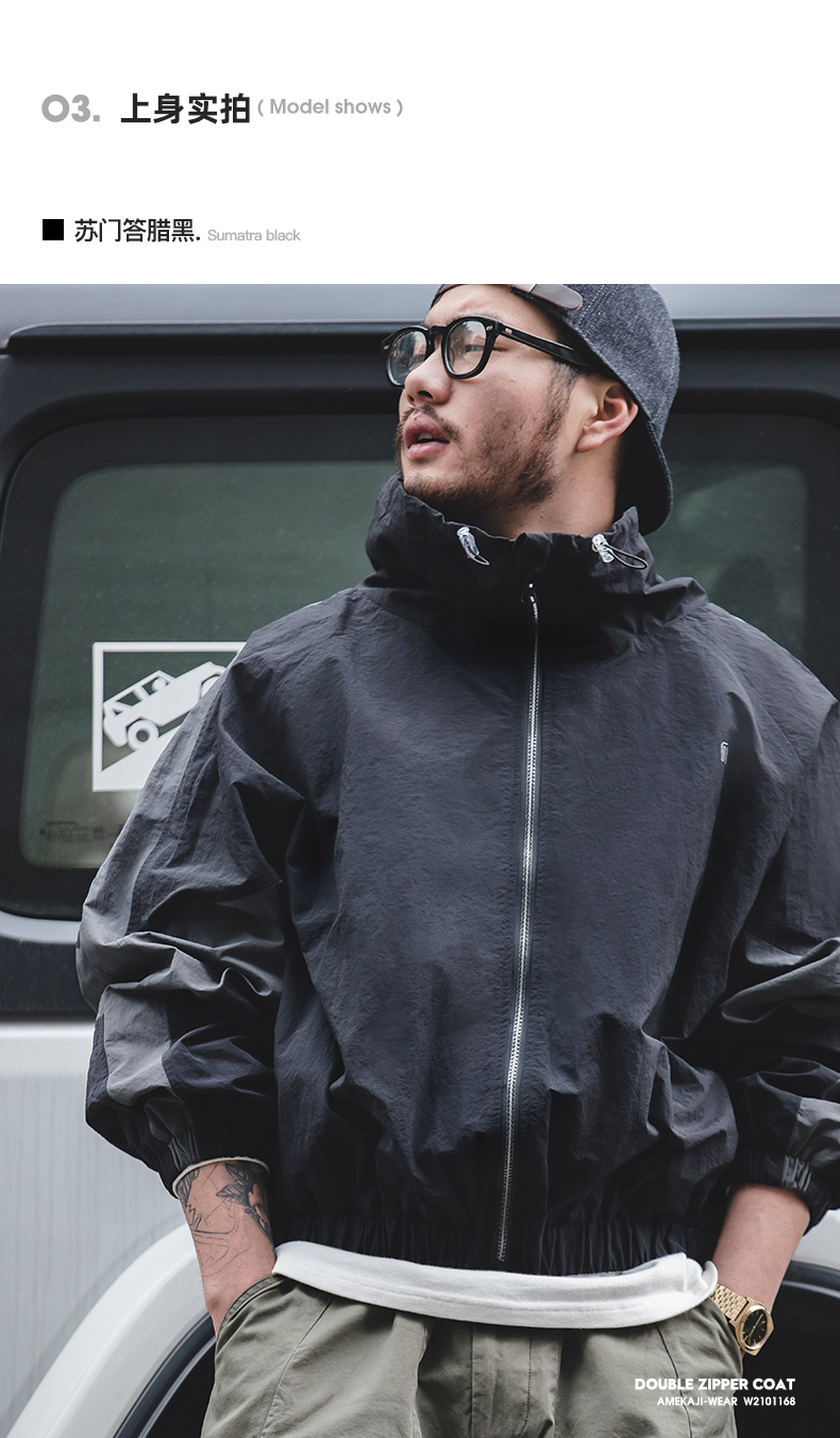 工装优选 日系复古做旧锁帽卫衣阿美咔叽纯色休闲百搭长袖男