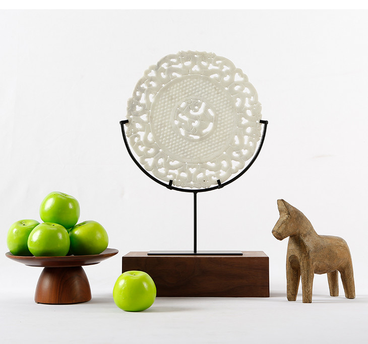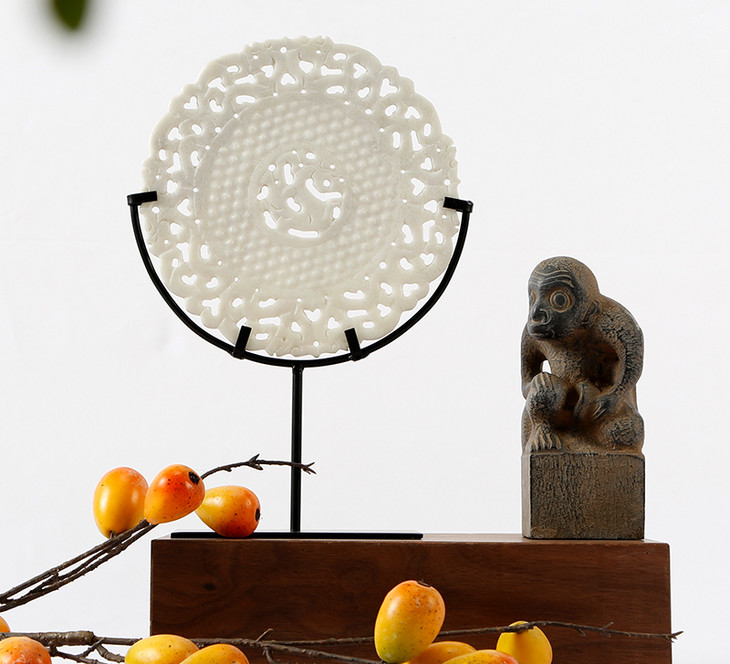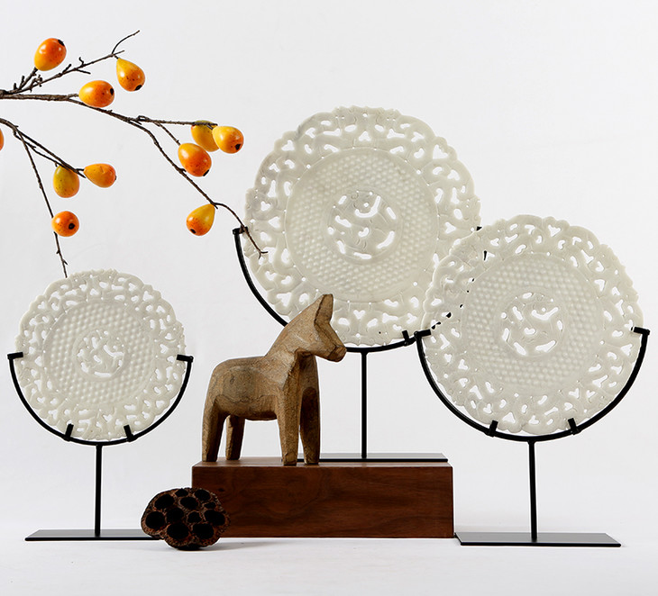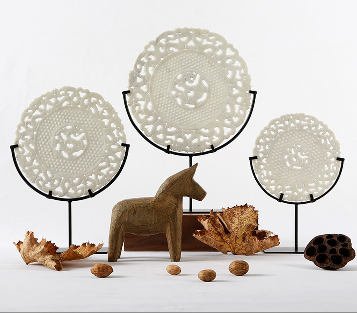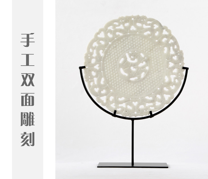 镂空雕刻玉片 饰品摆件 装饰品 石雕 雕刻玉璧