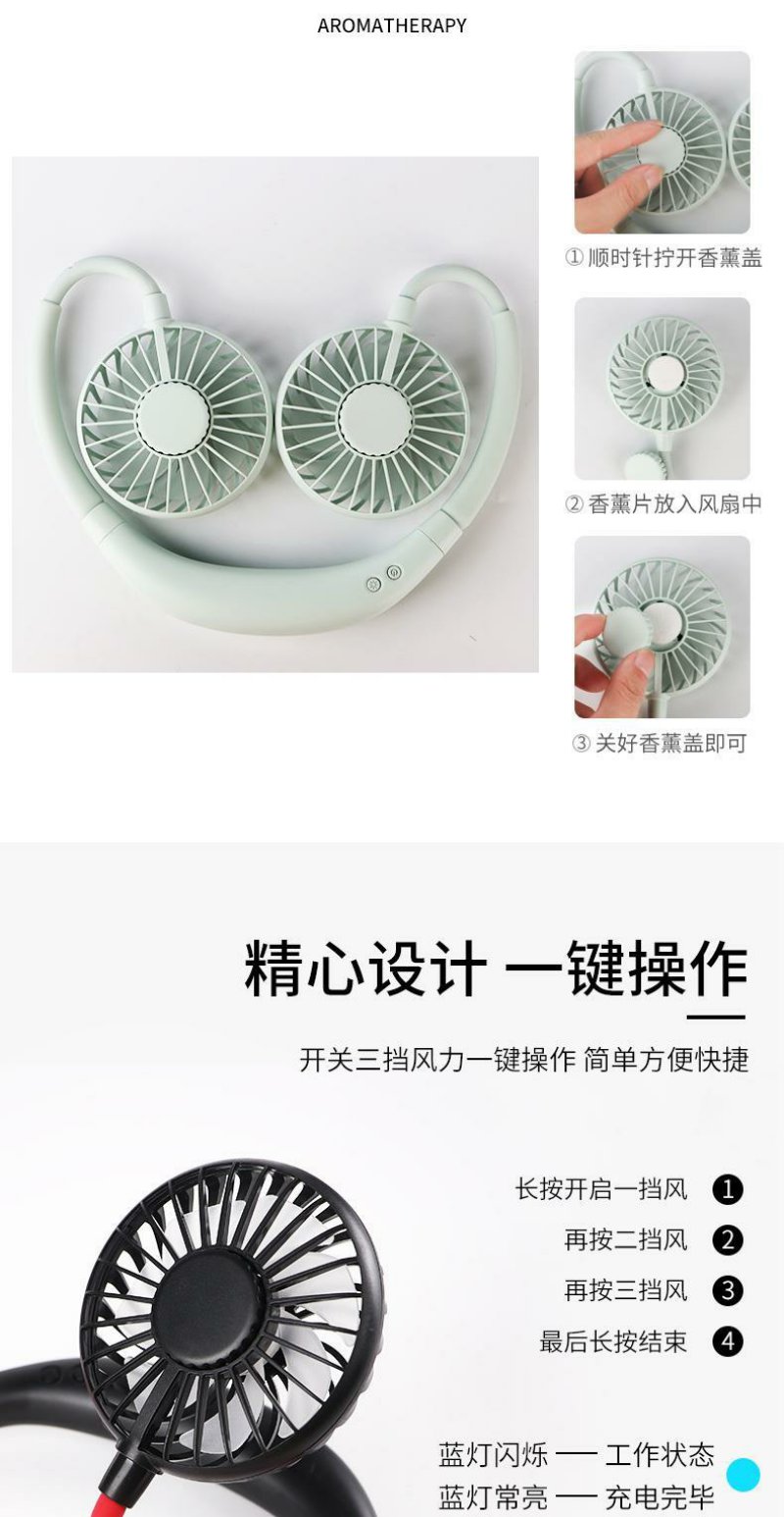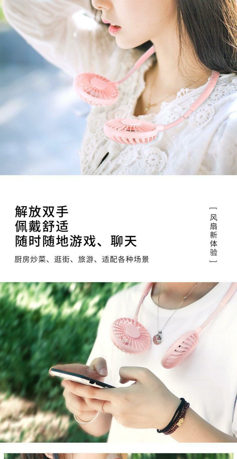 懒人挂脖风扇静音usb小风扇可充电学生出行降温神器