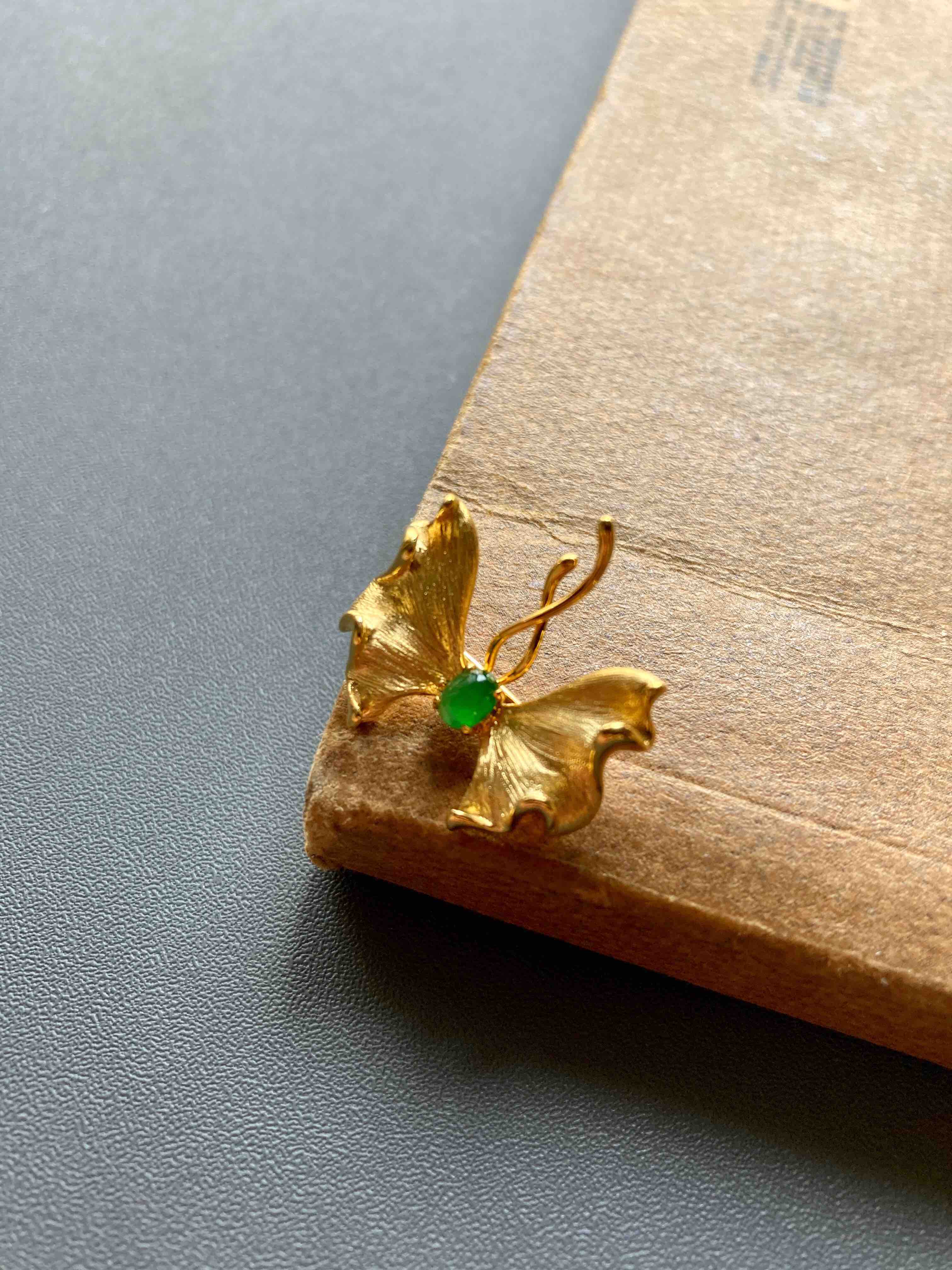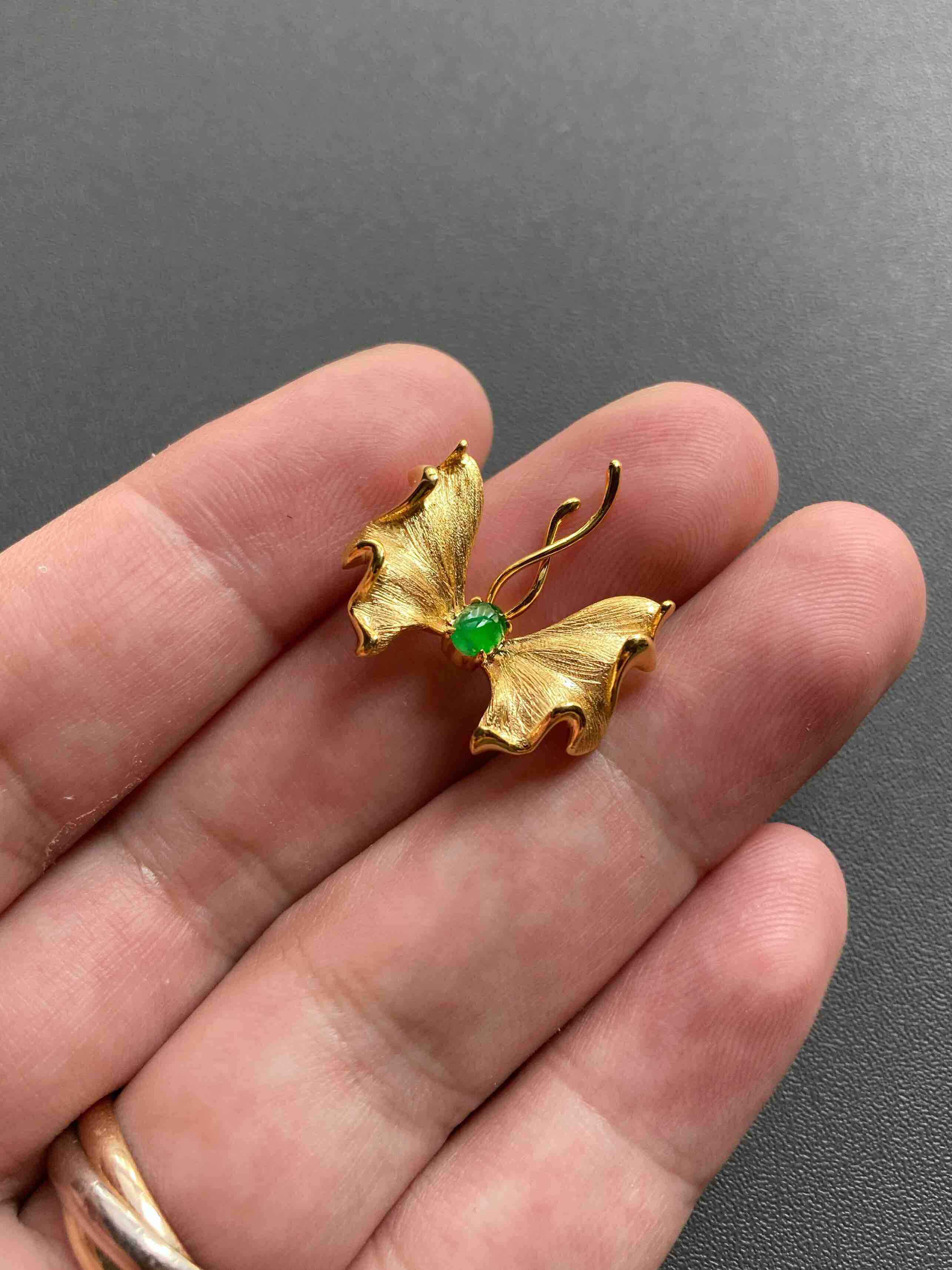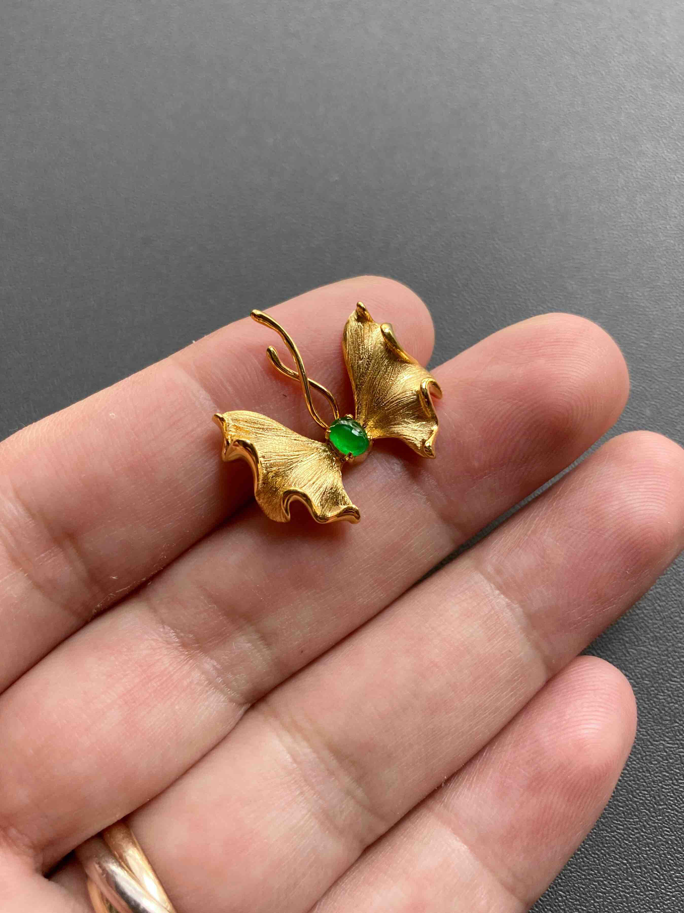 高冰种阳绿翡翠蛋面设计师款蝴蝶胸针18k黄金镶嵌,竟是如此的好看,蝴蝶胸针,耀眼的高冰种阳绿翡翠蛋面,荧光四射,艳丽无比,雕塑感十足的18k黄金镶嵌,蛋面4.4mm,镶嵌后21.6×21.4×8.2mm,细节无不透出高级珠宝的既视感,翡翠禄来原创设计,工料俱佳,只要小四价位,算下来阳绿蛋面基本上半卖半送,不收你就亏了