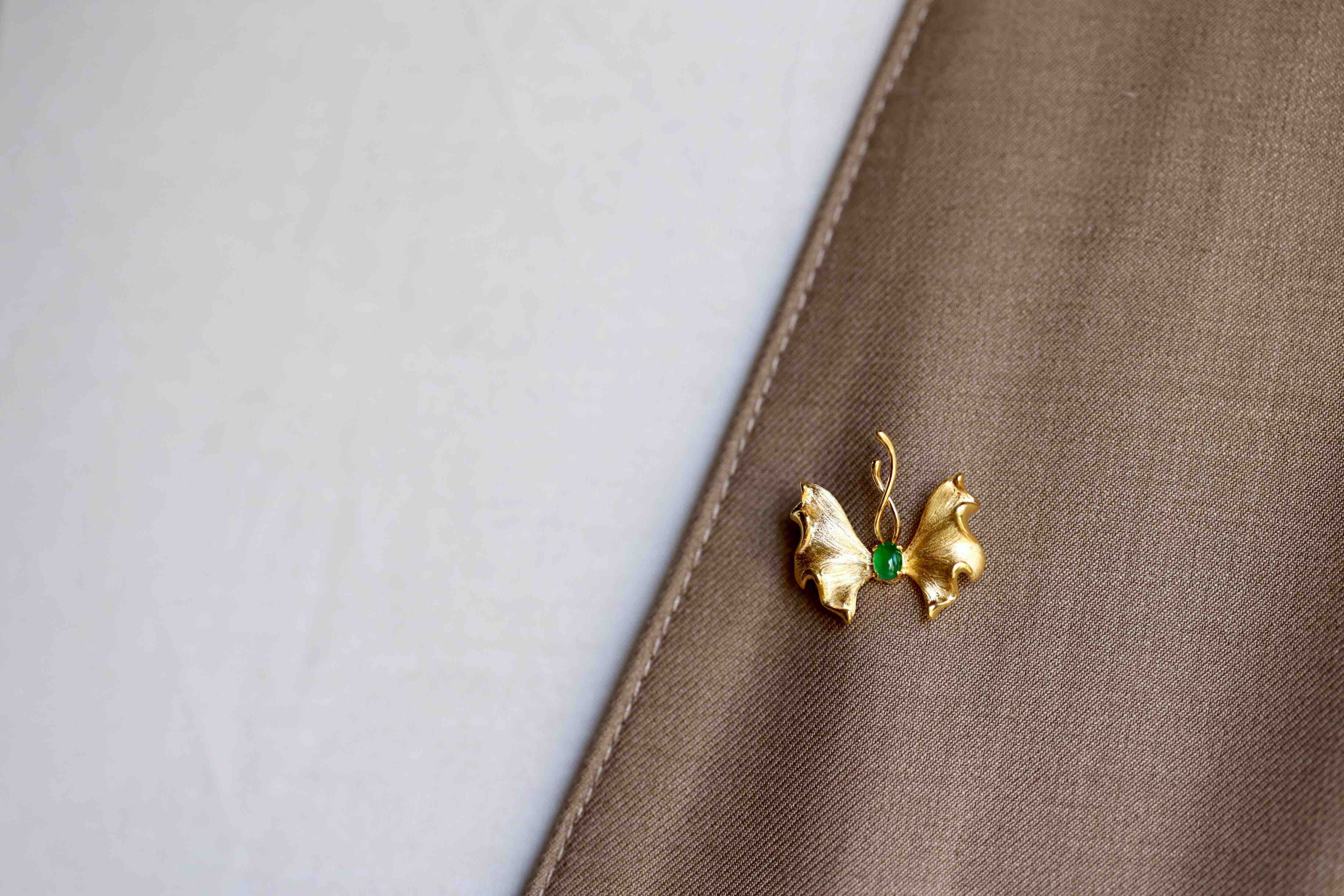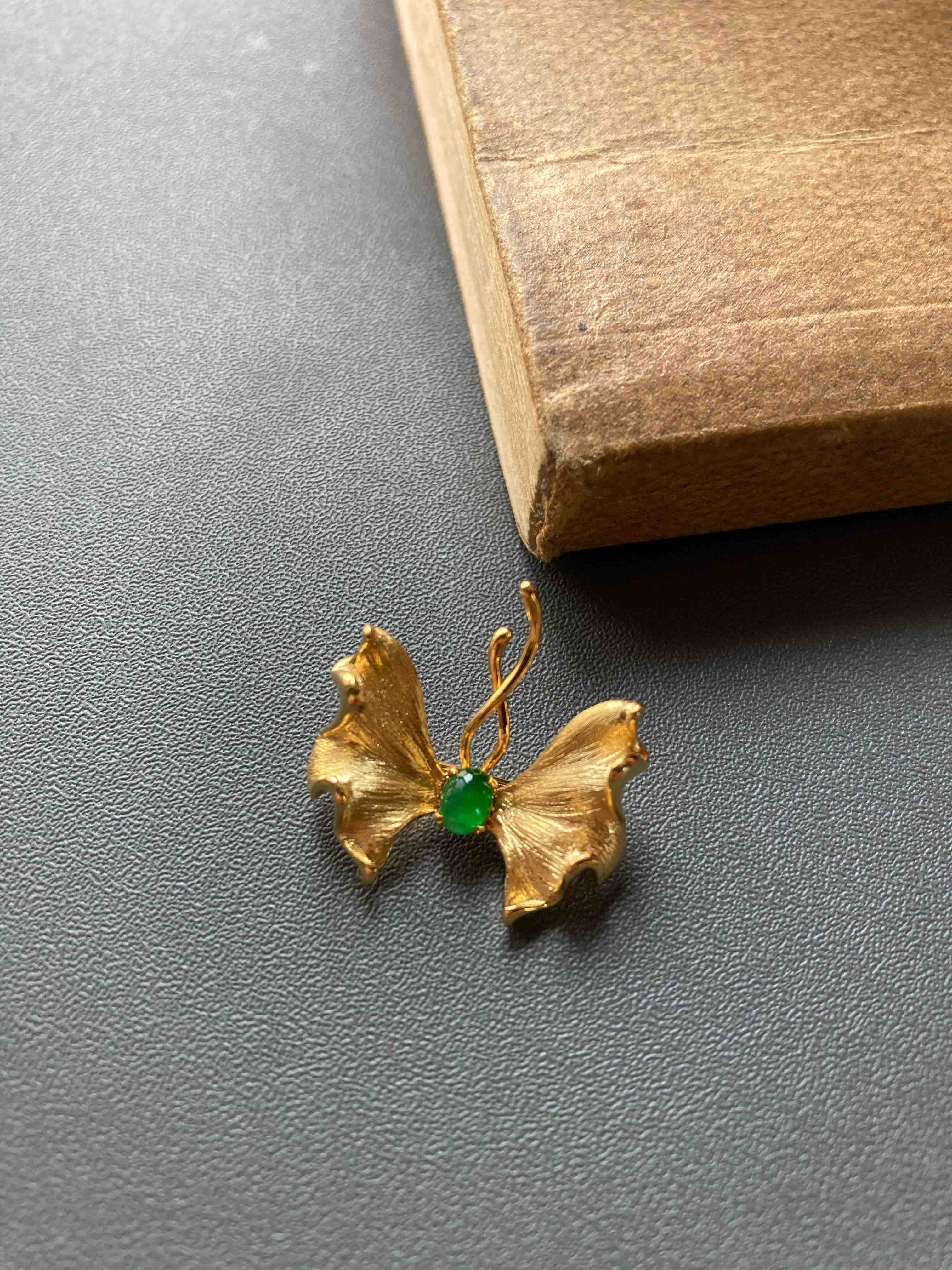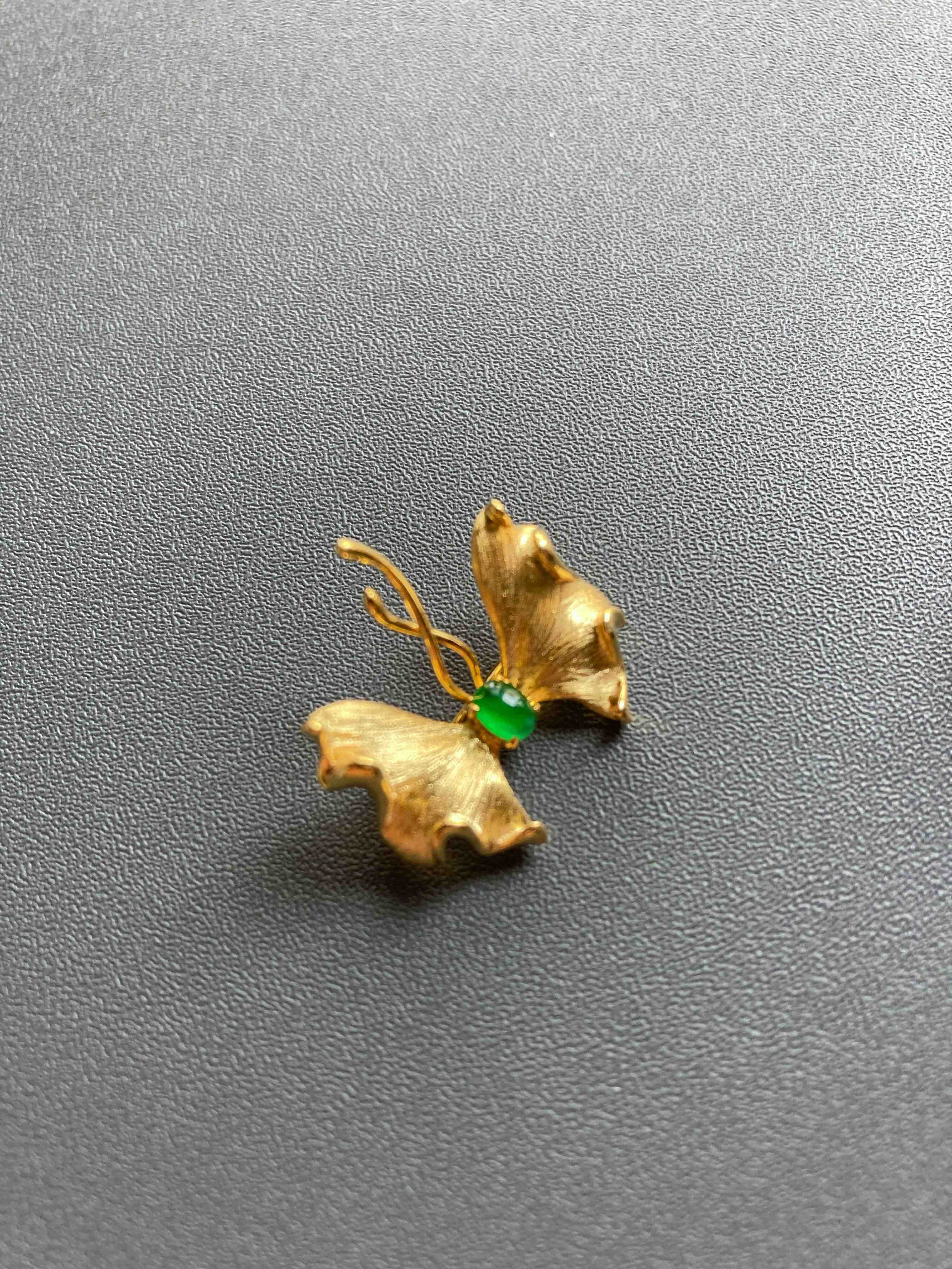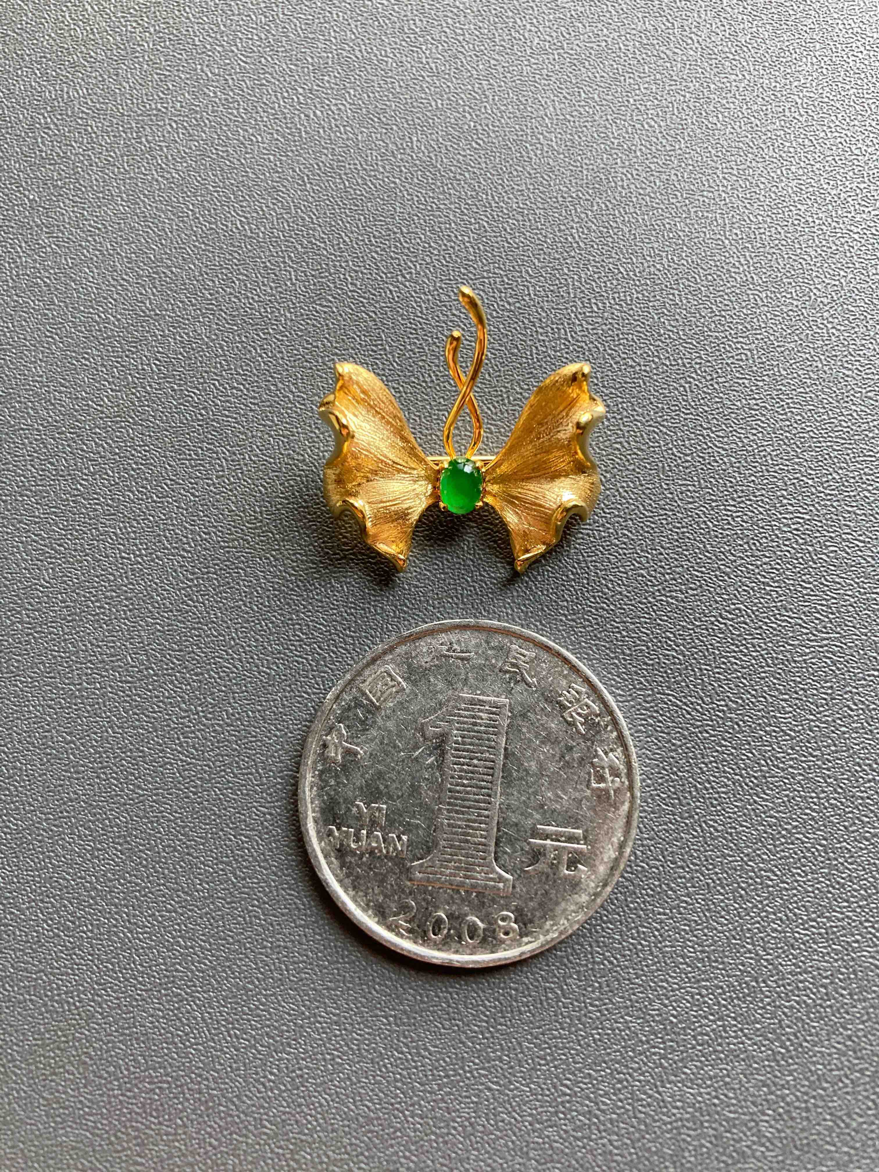 高冰种阳绿翡翠蛋面设计师款蝴蝶胸针18k黄金镶嵌,竟是如此的好看,蝴蝶胸针,耀眼的高冰种阳绿翡翠蛋面,荧光四射,艳丽无比,雕塑感十足的18k黄金镶嵌,蛋面4.4mm,镶嵌后21.6×21.4×8.2mm,细节无不透出高级珠宝的既视感,翡翠禄来原创设计,工料俱佳,只要小四价位,算下来阳绿蛋面基本上半卖半送,不收你就亏了
