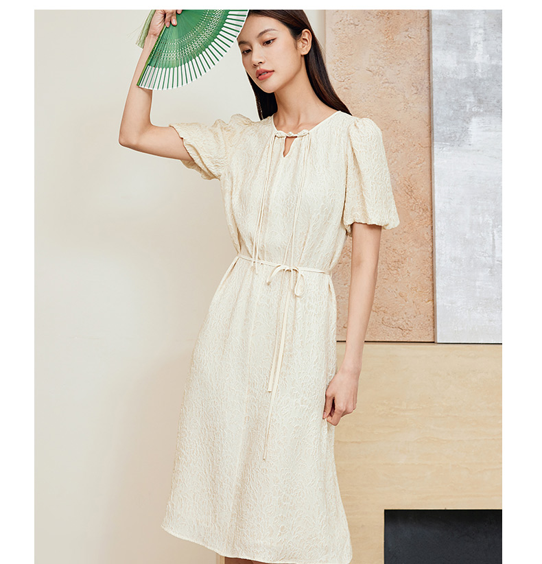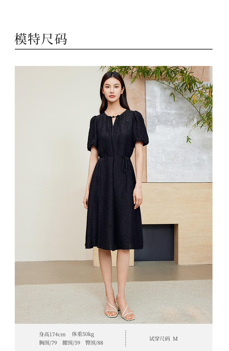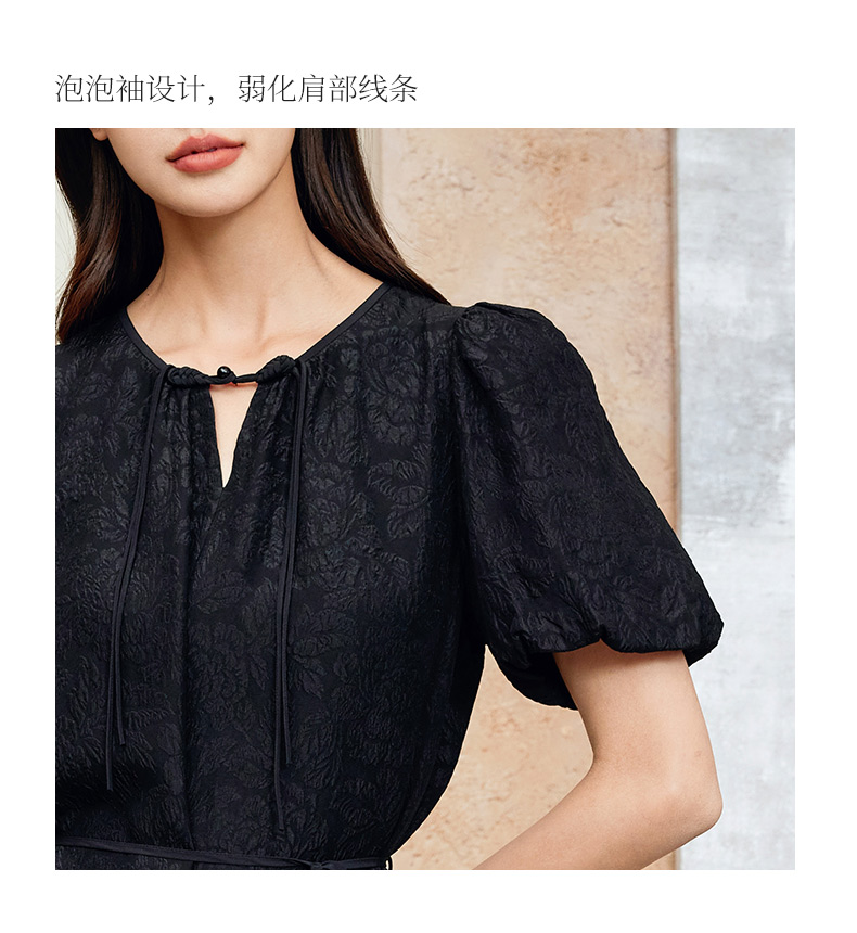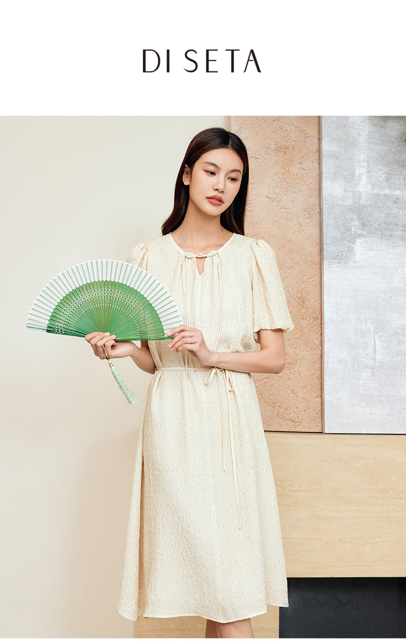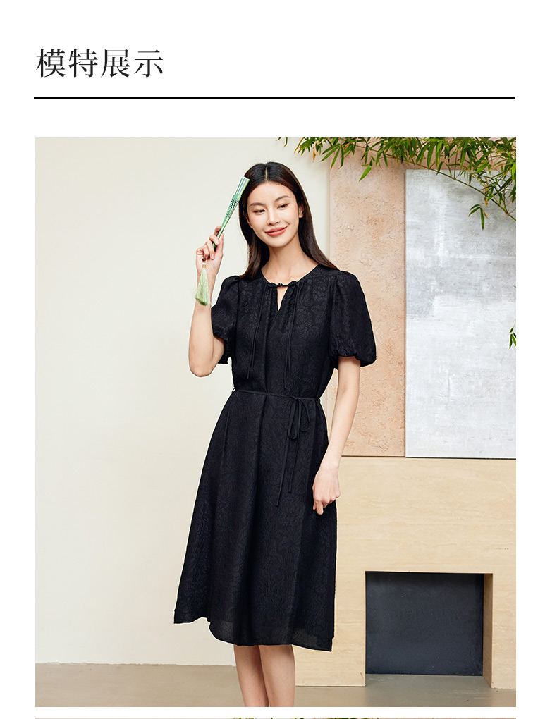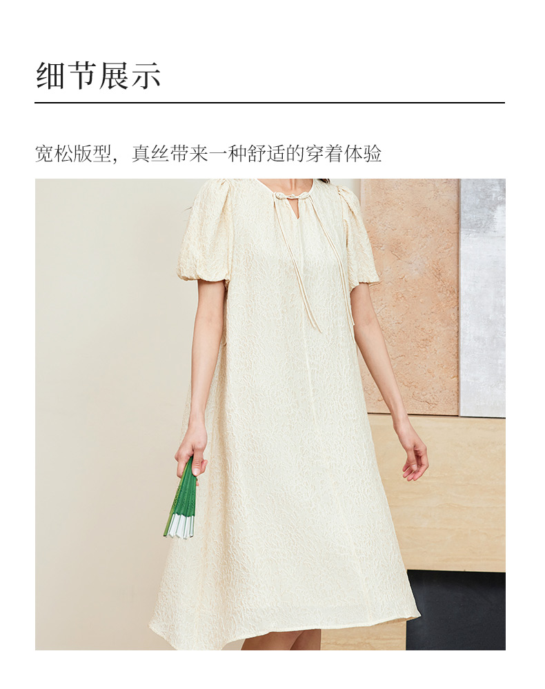 玳莎提花真丝连衣裙2024夏季新款新中式冠乐绉桑蚕丝中长款裙子 EB35107