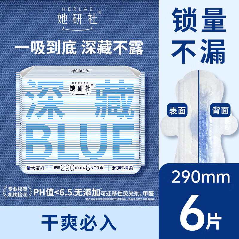 她研社深蓝BLUE棉柔夜用卫生巾290【21003469】
